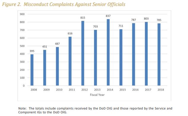 “It is important to recognize that the vast majority of DOD senior officials and personnel perform their challenging jobs with dedication and integrity,” the report states. “Despite some well-known instances of misconduct, only a very small fraction of senior officials commit misconduct.”