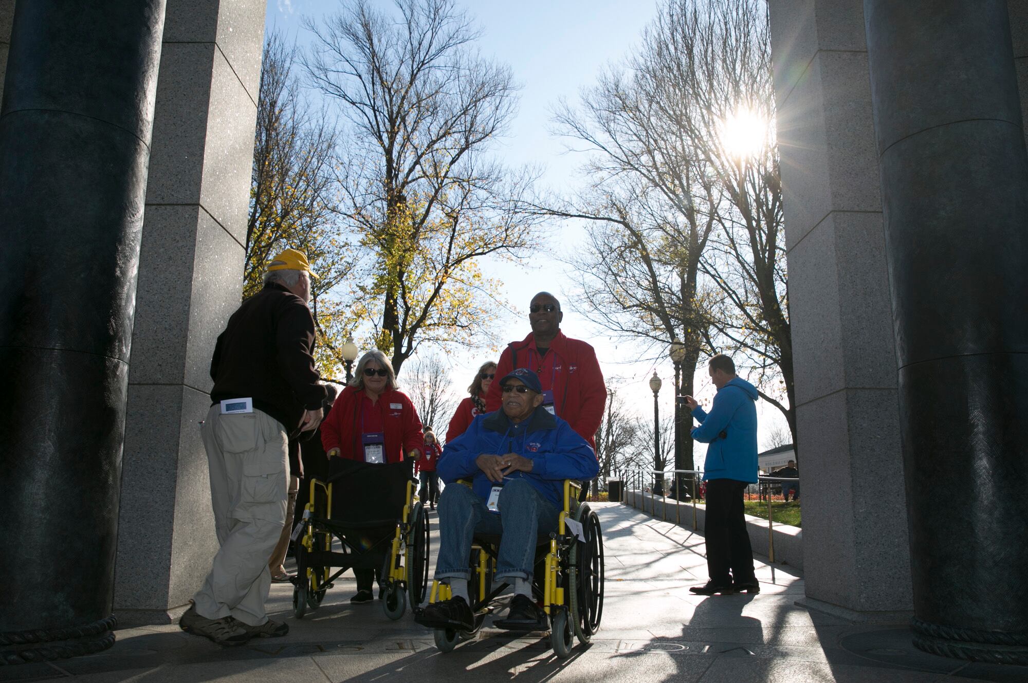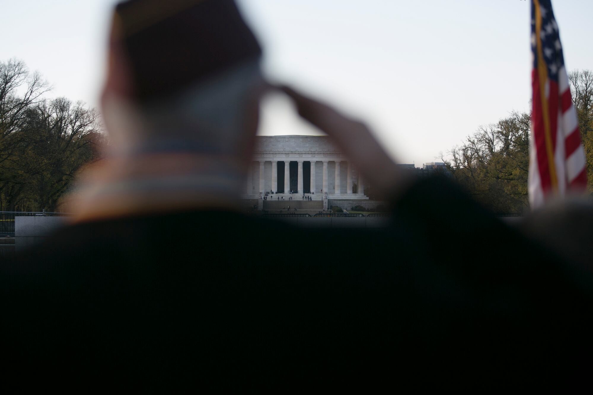 Frank Levingston of Lake Charles, La. and retired Command Sgt. Maj. Edward Davis laid wreaths at the Pearl Harbor remembrance day ceremony at the World War II Memorial in Washington, DC, Dec. 6, 2015. Levingstone is believed to be the oldest living World War 2 veteran and Davis is a survivor of the Pearl Harbor attack. (Daniel Woolfolk/Staff)A color guard from all services prepares to take part in Pearl Harbor remembrance day at the World War II Memorial in Washington, DC, Dec. 6, 2015(Daniel Woolfolk/Staff)A sailor rings a bell to remember the Pearl Harbor attacks during the Pearl Harbor remembrance day at the World War II Memorial in Washington, DC, Dec. 6, 2015(Daniel Woolfolk/Staff)A veteran salutes during the playing of the national anthem at the Pearl Harbor remembrance day at the World War II Memorial in Washington, DC, Dec. 6, 2015(Daniel Woolfolk/Staff)Curtis Smith, center, of Dallas, Texas, who served in World War two as Seaman 1st Class takes part in Pearl Harbor remembrance day at the World War II Memorial in Washington, DC, Dec. 6, 2015. He is accompanied by Darryl Harper. (Daniel Woolfolk/Staff)Washington Redskins president Bruce Allen took part in Pearl Harbor remembrance day at the World War II Memorial in Washington, DC, Dec. 6, 2015(Daniel Woolfolk/Staff)Veterans take part in Pearl Harbor remembrance day at the World War II Memorial in Washington, DC, Dec. 6, 2015(Daniel Woolfolk/Staff)A soldier lays a wreath with Frank Levingston of Lake Charles, La. (left) and Rear Adm. Craig Faller (center) during the Pearl Harbor remembrance day at the World War II Memorial in Washington, DC, Dec. 6, 2015. Levingston is 110-years old and is believed to be the oldest World War 2 veteran in the United States. (Daniel Woolfolk/Staff)Veterans take part in Pearl Harbor remembrance day at the World War II Memorial in Washington, DC, Dec. 6, 2015(Daniel Woolfolk/Staff)A bugler plays Taps during thePearl Harbor remembrance day ceremony at the World War II Memorial in Washington, DC, Dec. 6, 2015(Daniel Woolfolk/Staff)Veterans take part in Pearl Harbor remembrance day at the World War II Memorial in Washington, DC, Dec. 6, 2015(Daniel Woolfolk/Staff)