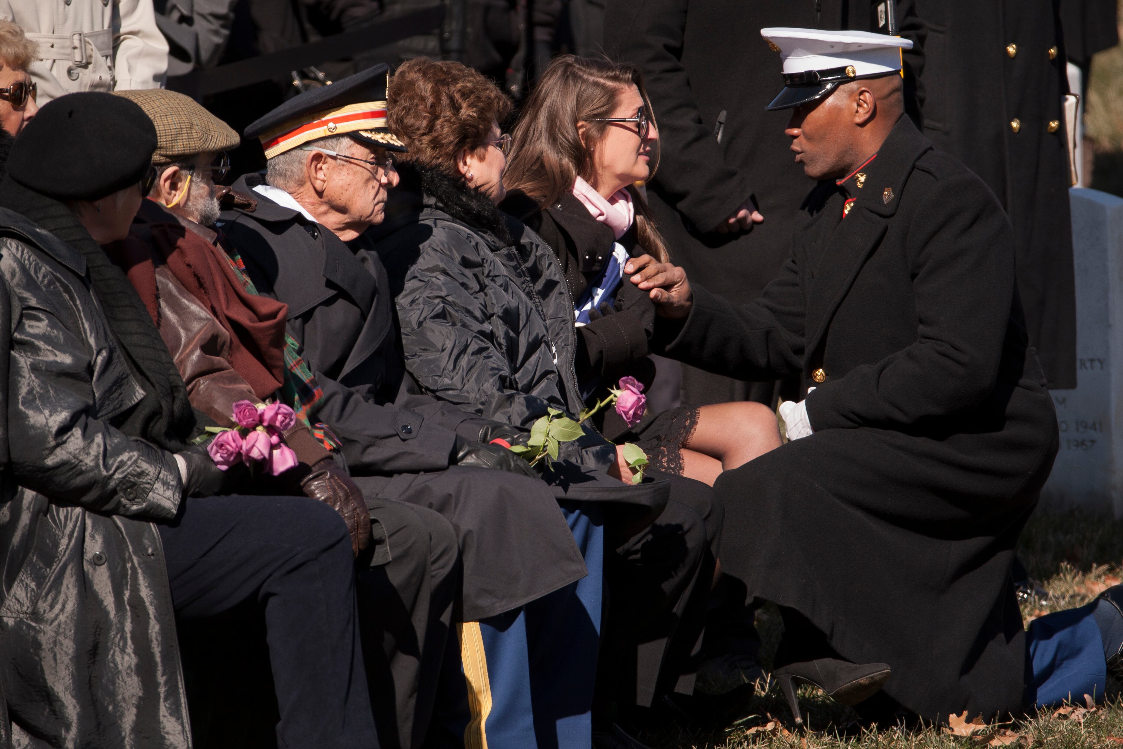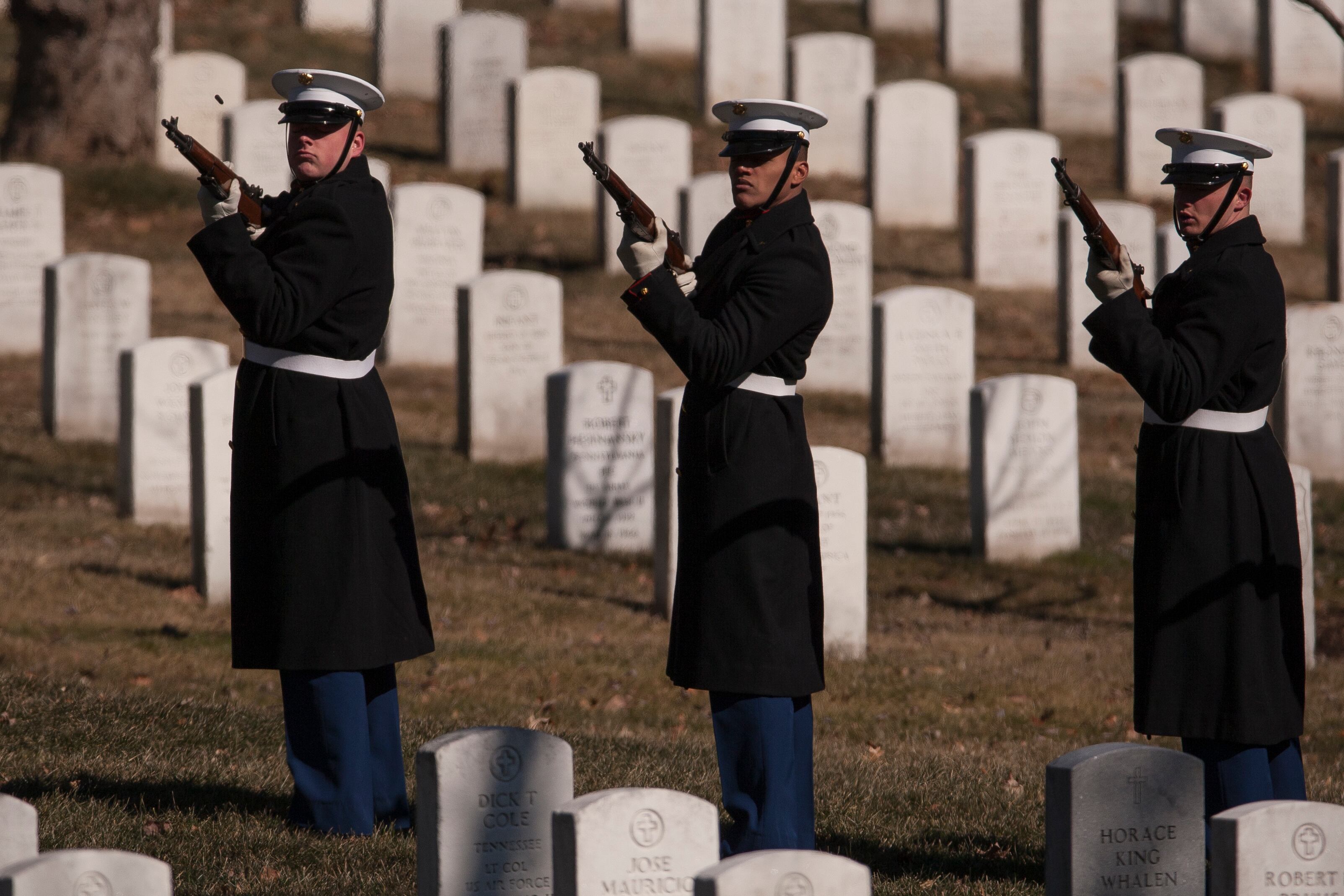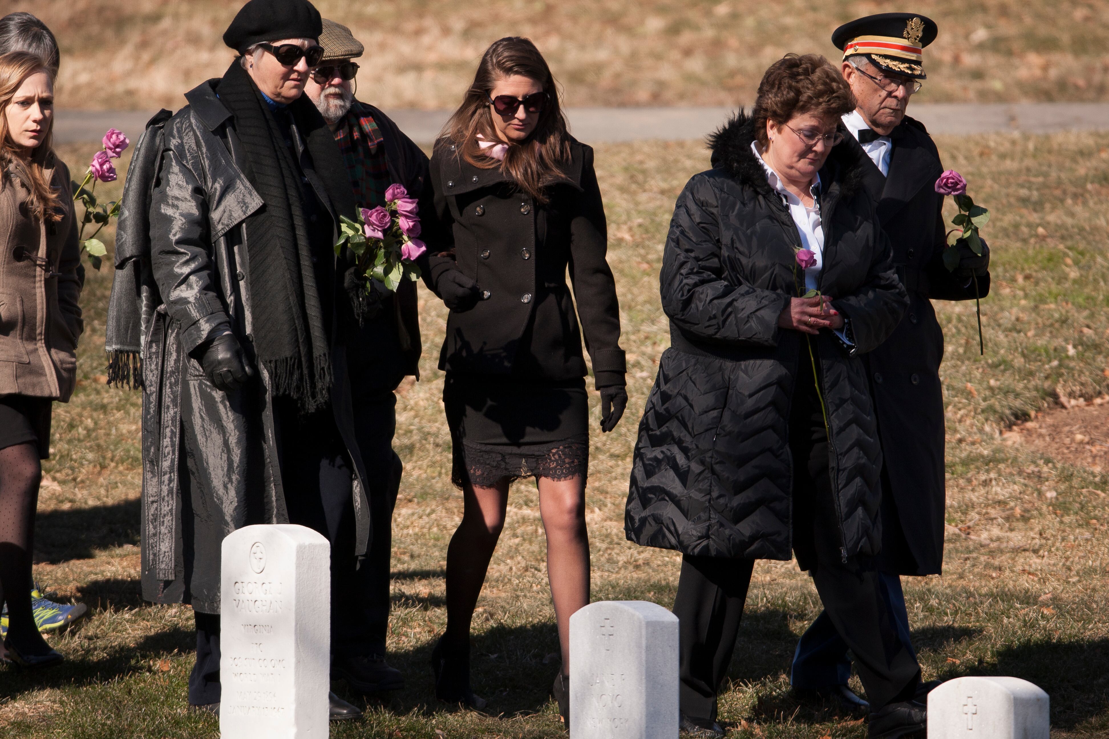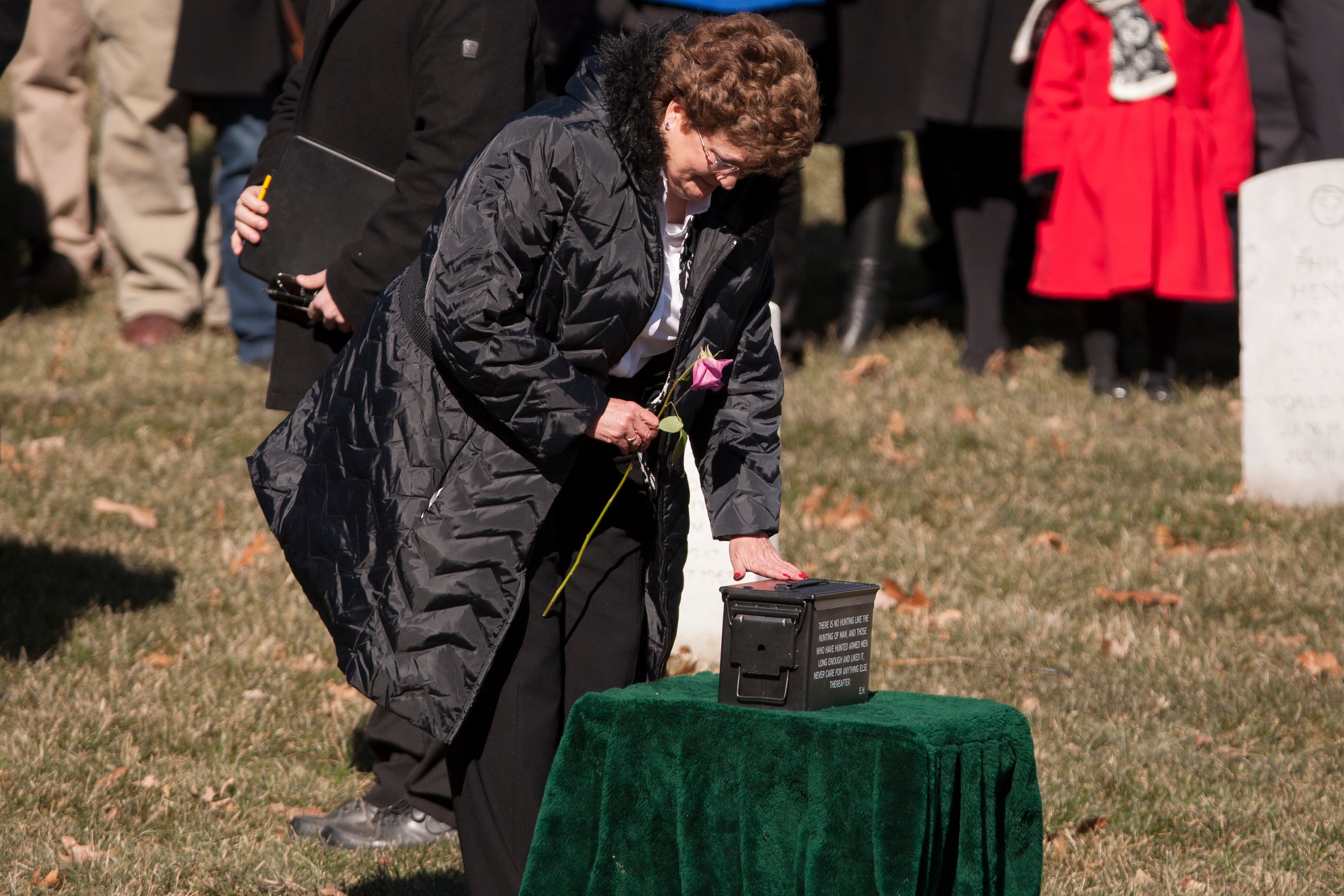 Gunnery Sgt. Robert Singer, a bugler with the U.S. Marine band waits for the burial service for retired Marine Cpl. Rob Richards to begin at Arlington National Cemetery in Arlington, Va., on Friday, February 13, 2015. (Mike Morones/Staff)Marines from Marine Barracks Washington carry the remains of retired Marine Cpl. Rob Richards at Arlington National Cemetery in Arlington, Va., on Friday, February 13, 2015. Richards, a former sniper with 1/6 and 3/2 died at his home in August, 2014. (Mike Morones/Staff)Raechel Richards is joined by friends and family for a burial service for her husband retired Marine Cpl. Rob Richards at Arlington National Cemetery on February 13, 2015. (Mike Morones/Staff)Marines from Marine Barracks Washington conduct a burial service for retired Marine Cpl. Rob Richards at Arlington National Cemetery in Arlington, Va., on Friday, February 13, 2015. Richards, a former sniper with 1/6 and 3/2 died at his home in August, 2014. (Mike Morones/Staff)Friends and family attend a burial service for retired Marine Cpl. Rob Richards at Arlington National Cemetery in Arlington, Va., on Friday, February 13, 2015. (Mike Morones/Staff)Marines from Marine Barracks Washington fire a volley at the burial service for retired Marine Cpl. Rob Richards at Arlington National Cemetery in Arlington, Va., on Friday, February 13, 2015. (Mike Morones/Staff)Raechel Richards, right, is joined by her mother-in-law Cate Richards and other family members at a burial service for her husband retired Marine Cpl. Rob Richards at Arlington National Cemetery in Arlington, Va., on Friday, February 13, 2015. (Mike Morones/Staff)Master Sgt. Leonard J. Spain presents a flag to Raechel Richards during the burial service for her husband retired Marine Cpl. Rob Richards at Arlington National Cemetery in Arlington, Va., on Friday, February 13, 2015. (Mike Morones/Staff)Raechel Richards had the remains of her husband, retired Marine Cpl. Rob Richards, placed in a custom ammunition can. Richards, a former sniper in 1/6 and 3/2, was buried at Arlington National Cemetery in Arlington, Va., on Friday, February 13, 2015. (Mike Morones/Staff)Cate Richards touches the custom ammunition can containing the remains of her son, retired Marine Cpl. Rob Richards at Arlington National Cemetery in Arlington, Va., on Friday, February 13, 2015. Richards was a scout sniper in 1/6 and 3/2. (Mike Morones/Staff)Friends and family gather around the remains of retired Marine sniper Cpl. Rob Richards following a burial service at Arlington National Cemetery in Arlington, Va., on Friday, February 13, 2015. (Mike Morones/Staff)