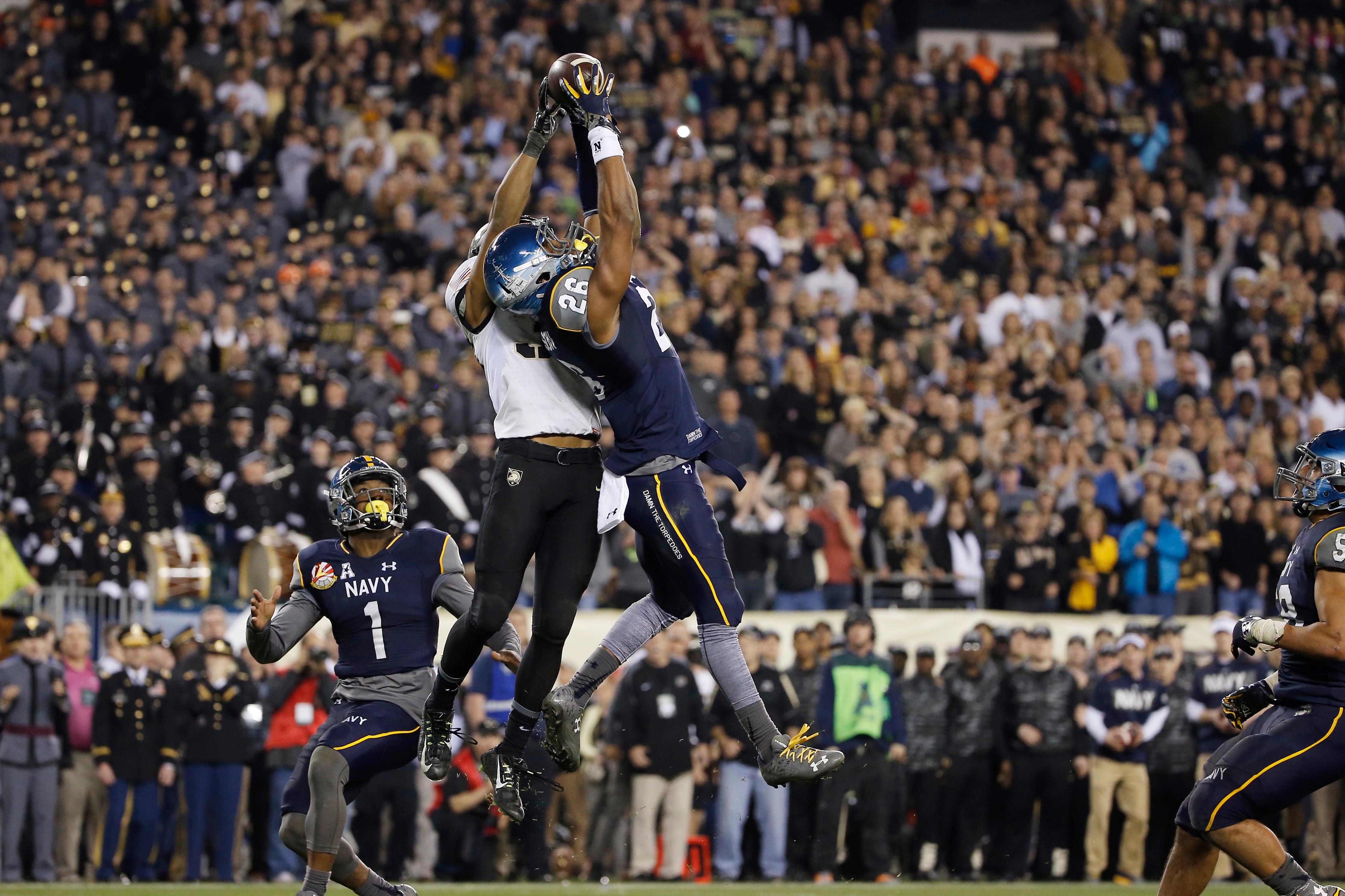 Navy's Daiquan Thomasson (26) intercepts a pass intended for Army's Tyler Campbell (33) during the second half of an NCAA college football game Saturday, Dec. 12, 2015, in Philadelphia. Navy won 21-17. (AP Photo/Matt Slocum)Share:In Other NewsAnother federal shutdown threat looms as Congress heads back to DCDemocratic leaders want answers on a path towards compromise on a host of federal budget fights before the end of next month. Trump claims big jump in VA trust scores, but data shows modest gainsPatient satisfaction rates have improved steadily at VA in recent years, but Trump insists his changes have reformed the entire department. VA cancels plans for employee satisfaction survey this yearVA has conducted a poll of federal employees every year since 2006, but won't distrubute one this year amid multiple reforms to the workforce. VA needs more oversight of health care options to prevent waste: StudyDepartment leaders last month uncovered more than $100 million in duplicate government payments for medical services. VA severs ties with most federal unions, terminating worker contractsAbout 80% of VA's roughly 450,000 employees are union members, but the department will no longer honor its contracts with the bargaining units. Load More