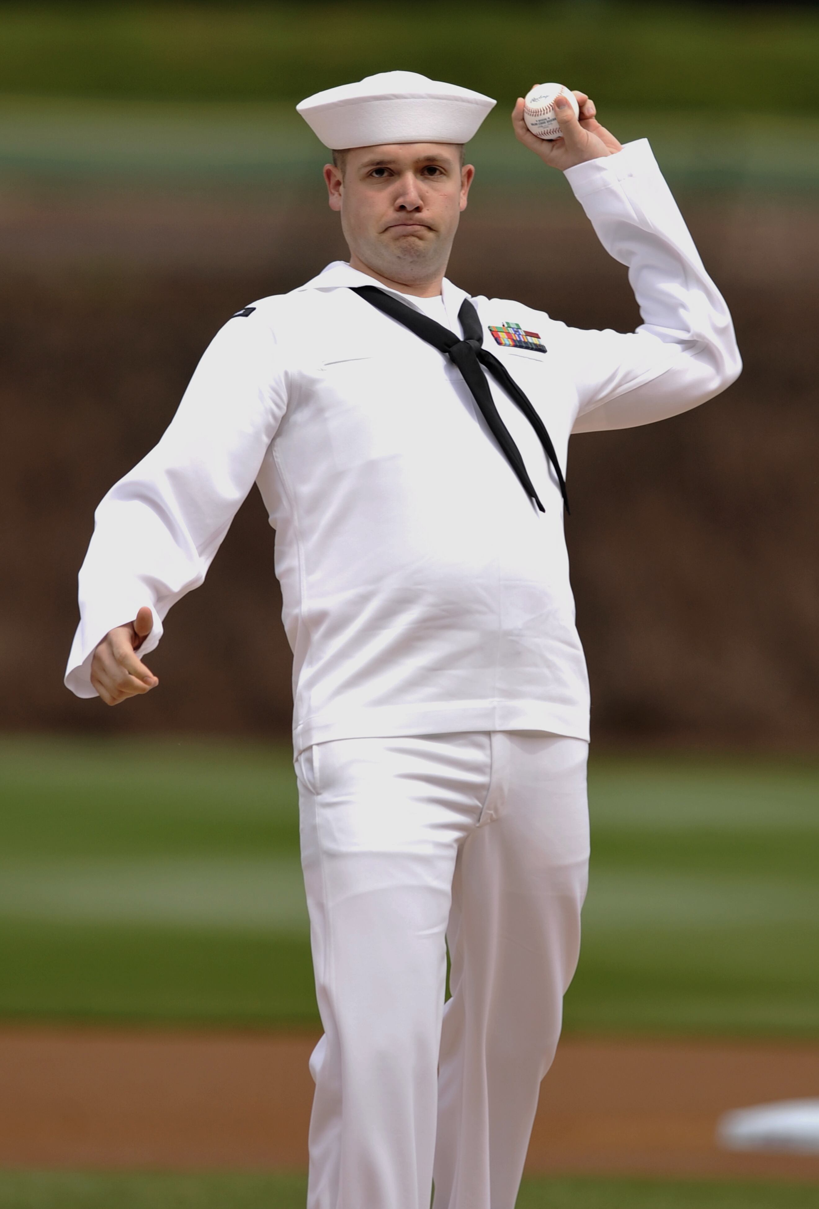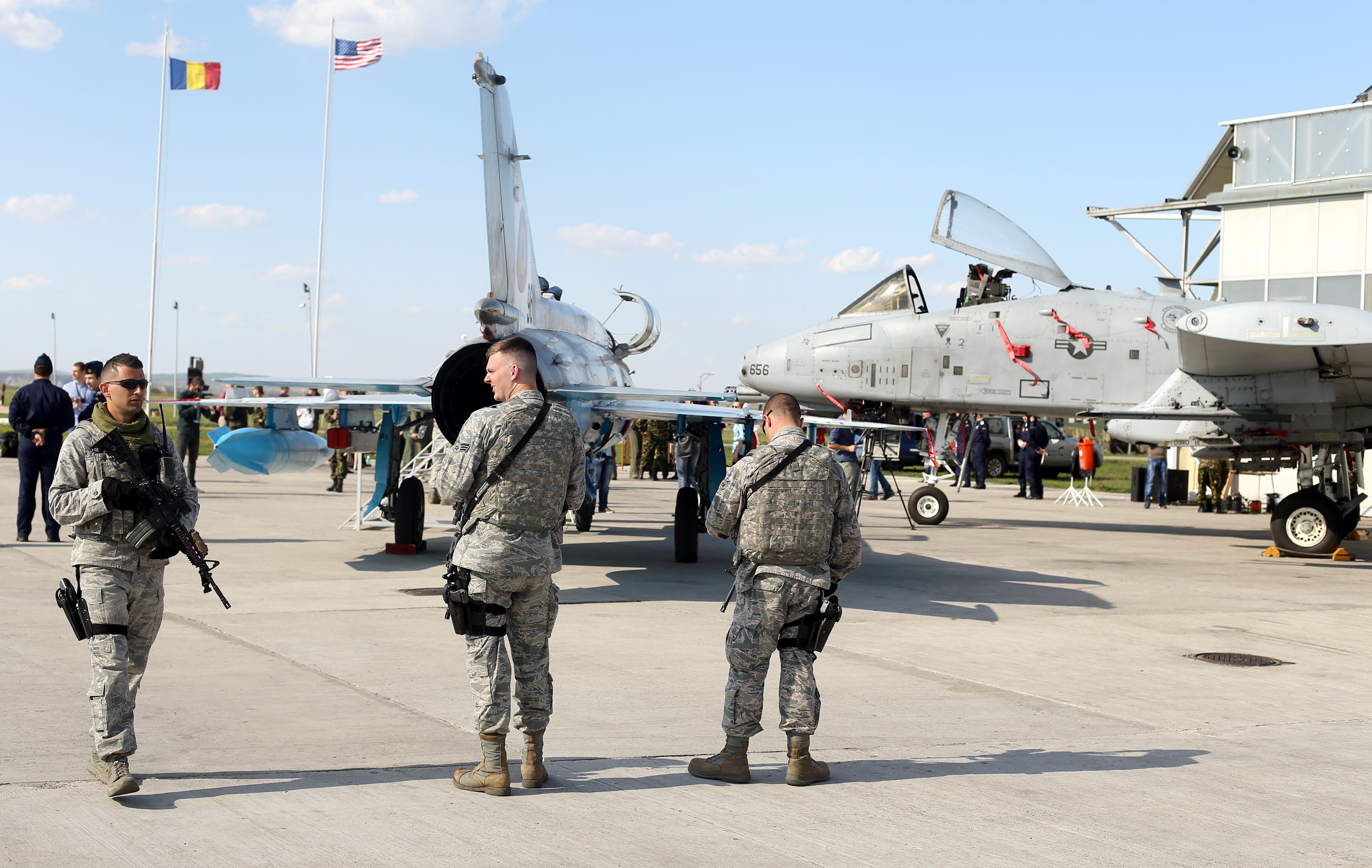 US servicemen secure an airfield where US Air Force A-10 airplanes and Romanian MIG 21 Lancers are stationed at an airbase in Campia Turzii, in Romania's central region of Transylvania, Thursday, April 16, 2015, during a joint exercise. Romanian an US air teams conduct a joint military exercise dubbed Dacian Thunder 2015.(AP Photo/Mircea Rosca)U.S. Navy petty officer Kyle Kulas throws out the ceremonial first pitch before an MLB baseball game between the Chicago Cubs and the San Diego Padres Sunday, April 19, 2015, in Chicago. (AP Photo/Paul Beaty)