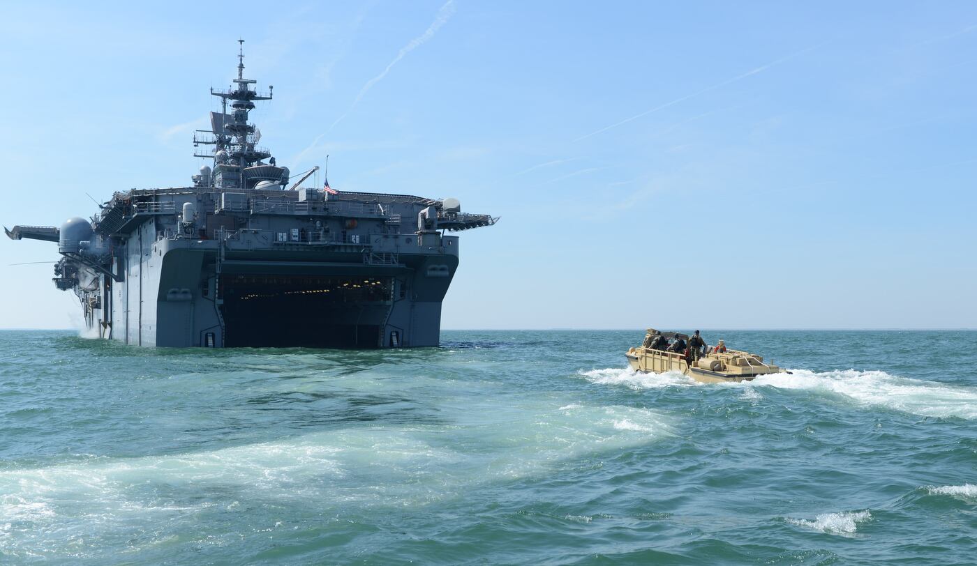 ATLANTIC OCEAN (March 22, 2016) - Sailors from Beach Master Unit Two (BMU-2) maneuver a Lighter Amphibious Resupply Cargo 5 Ton (LARC-V), vehicle into the well deck of the amphibious assault ship USS Bataan (LHD 5). Bataan is currently underway conducting routine qualifications in preparation for her future deployment. (U.S. Navy photo by Mass Communication Specialist 3rd Class Raymond Minami/Released)