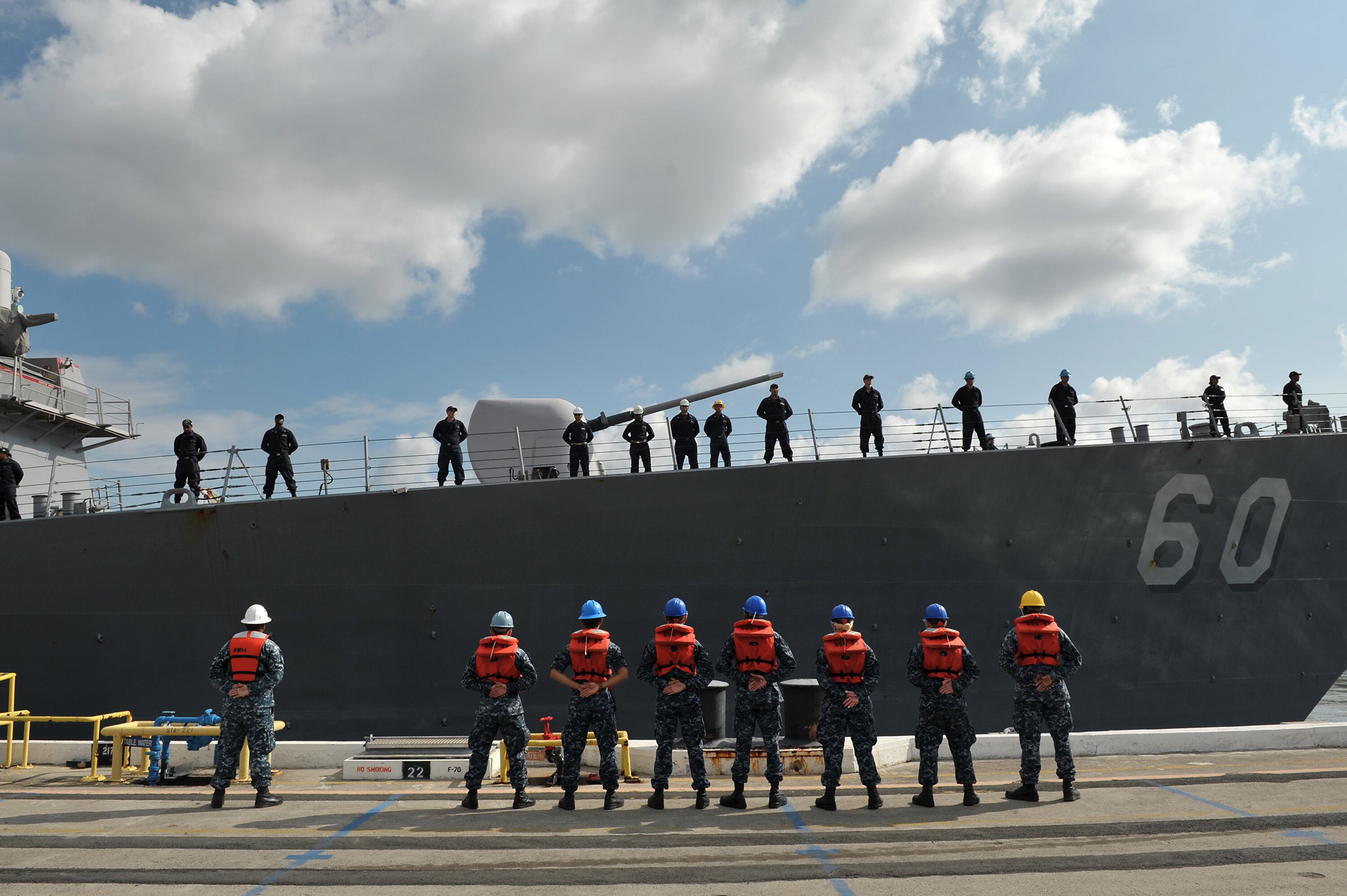 GREAT LAKES, Ill. (April 4, 2016) Engineman 2nd Class Shanice Floyd, a recruit division commander, ensures the proper fit of Seaman Recruit Megan Marte's white enlisted hat, or "Dixie cup," during uniform issue at Recruit Training Command. Marte was among the first female recruits to be issued the Dixie cup as part of the Navy's efforts for uniformity in service members' uniforms. (U.S. Navy photo by Sue Krawczyk/Released)A soldier with the Ukrainian Land Forces (right), loads an 82mm mortar Apr. 5, 2016, during a mortar live-fire exercise at the International Peacekeeping and Security Center near Yavoriv, Ukraine as part as Joint Multinational Training Group-Ukraine. Each JMTG-U rotation will consist of nine weeks of training where Ukrainian soldiers will learn defensive combat skills needed to increase Ukraine's capacity for self-defense. (U.S. Army photo by Staff Sgt. Adriana M. Diaz-Brown, 10th Press Camp Headquarters)U.S. Navy Sailors aboard the USS Paul Hamilton (DDG 60) stand at parade rest as the ship departs Joint Base Pearl Harbor-Hickam for a homeport swap with the USS William P. Lawrence (DDG 110) in San Diego, Calif., April 5, 2016. This move supported the rebalance to the Indo-Asia-Pacific, placing the Navy’s most advanced capabilities and greater capacity in that vital theater. (U.S. Navy photo by Mass Communication Specialist 2nd Class Johans Chavarro)Spc. Rodney Washington (right), originally from Chicago, and Pfc. Reynaldo Carlo (center), originally from Brooklyn, N.Y., both RQ-7B (Shadow) crew members with 2nd Cavalry Regiment, Engineer Squadron, stationed out of Vilseck, Germany, perform a pre-flight inspection on the Shadow during a test flight at Tapa Training Area, Estonia, April 5, 2016. The RQ-7B Shadow Tactical Unmanned Aircraft System provides reconnaissance, surveillance, target acquisition, and force protection and provides close to real-time video during day and night operations. The 2nd Cav. Reg. will be using the Shadow to aid the Estonian Army during future field training exercises when the U.S. Army plays the role of the opposing force. These activities are part of the U.S. Army Europe-led Operation Atlantic Resolve land force assurance training taking place across Estonia, Latvia, Lithuania and Poland to enhance multinational interoperability, strengthen relationships among allied militaries, contribute to regional stability and demonstrate U.S. commitment to NATO. (Photo by U.S. Army Staff Sgt. Steven M. Colvin/Released)160323-N-UM082-003
