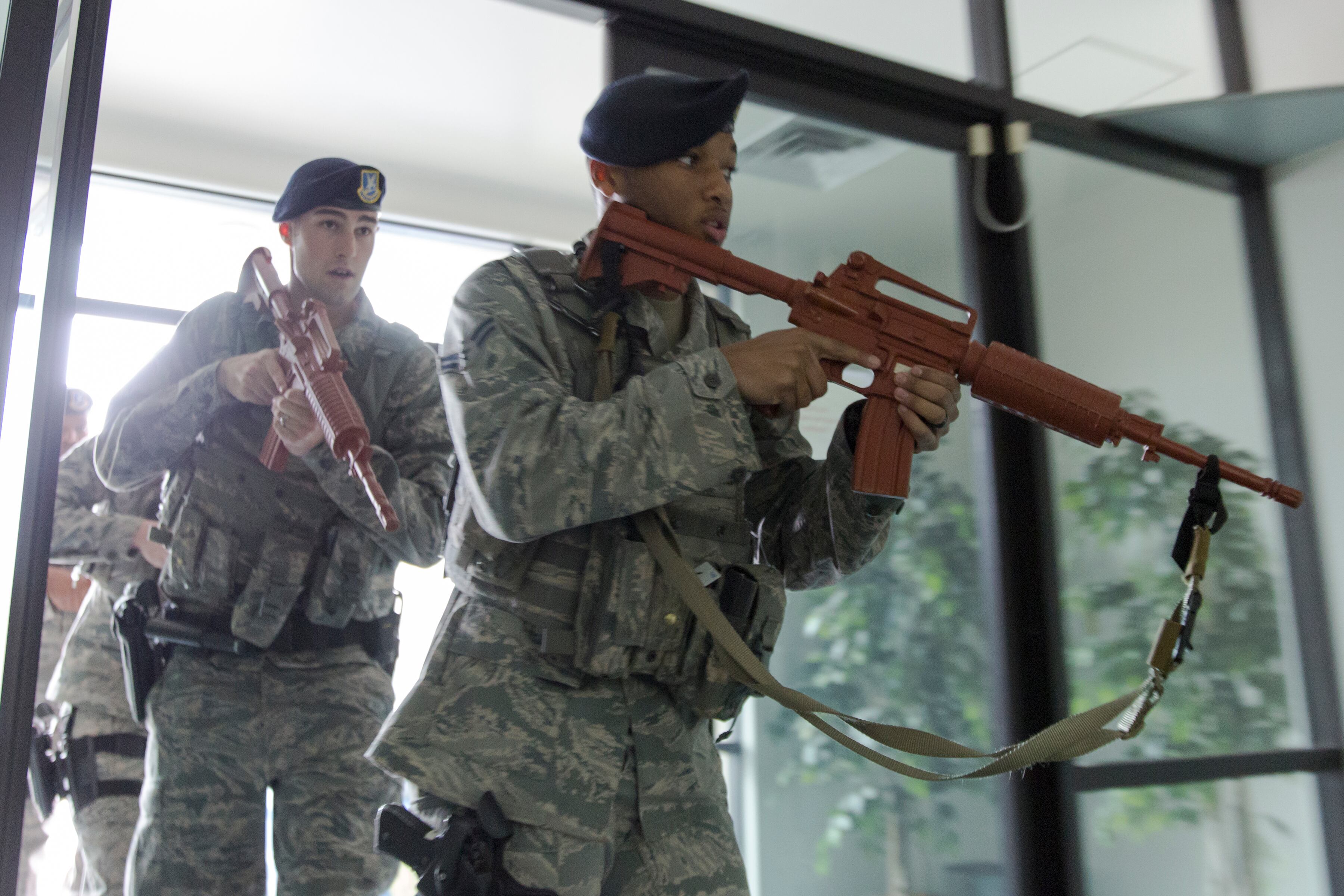 (Front to back) Airman 1st Class Jamal Wilson and Airman 1st Class Jared Paradis, both 374th Security Forces Squadron patrolmen, enter the Defense Finance and Accounting Service Japan facility during an active shooter training scenario at Yokota Air Base, Feb. 25. 2015. The scenario tested and validated DFAS’ force protection plans, occupant emergency plan, and evacuation and accountability procedures. (U.S. Air Force photo by Osakabe Yasuo/Released)150225-N-FR671-158 PACIFIC OCEAN (Feb. 25, 2015) – Chief Aviation Boatswain’s Mate (Handling) Nnamdi Emonogu, a Nigeria native, plays the djembe, one of West Africa’s best known instruments, during a black history month ceremony held aboard amphibious assault ship USS America (LHA 6). America is currently conducting maritime training operations off the coast of California. The ship is the first of its class and is optimized for Marine Corps aviation. (U.S. Navy photo by Mass Communication Specialist 2nd Class Jonathan A. Colon/ Released)3rd Infantry Division 4th Infantry Brigade combat team commander Colonel Thomas Gukeisen shows Maj. Gen. Daniel P. Hughes and a team from PEO C3T how his soldiers are using Joint Battle CommandÑPlatform (JBC-P), the ArmyÕs next generation friendly force tracking system, during Vanguard Focus at Ft. Stewart, Georgia on February 24,2015. (Photo by Alan Lessig/Staff)I