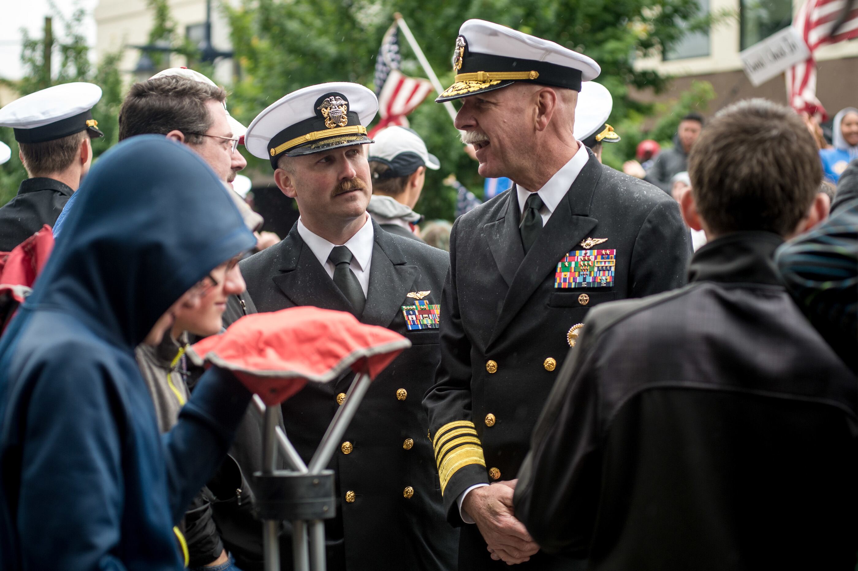 160521-N-JY507-040 BREMERTON, Wash. (May 21, 2016) – Sailors of Navy Band Northwest march in front of military supporters during the 68th annual Armed Forces Day Parade in Bremerton, Washington. The Bremerton Armed Forces Festival is the nation’s largest and longest running Armed Forces Day Parade. (U.S. Navy photo by Mass Communication Specialist 3rd Class Seth Coulter/Released)160521-N-JY507-071 BREMERTON, Wash. (May 21, 2016) – Sailors of Naval Base Kitsap Honor Guard march during the 68th annual Armed Forces Day Parade in Bremerton, Washington. The Bremerton Armed Forces Festival is the nation’s largest and longest running Armed Forces Day Parade. (U.S. Navy photo by Mass Communication Specialist 3rd Class Seth Coulter/Released)160521-N-JY507-153 BREMERTON, Wash. (May 21, 2016) – Commander, U.S. Pacific Fleet Adm. Scott Swift (right), and Lt. Cmdr. Paul Nickell, speaks to military supporters during the 68th annual Armed Forces Day Parade in Bremerton, Washington. The Bremerton Armed Forces Festival is the nation’s largest and longest running Armed Forces Day Parade. (U.S. Navy photo by Mass Communication Specialist 3rd Class Seth Coulter/Released)160521-N-JY507-142 BREMERTON, Wash. (May 21, 2016) – Lt. Cmdr. Paul Nickell speaks to military supporters during the 68th annual Armed Forces Day Parade in Bremerton, Washington. The Bremerton Armed Forces Festival is the nation’s largest and longest running Armed Forces Day Parade. (U.S. Navy photo by Mass Communication Specialist 3rd Class Seth Coulter/Released)