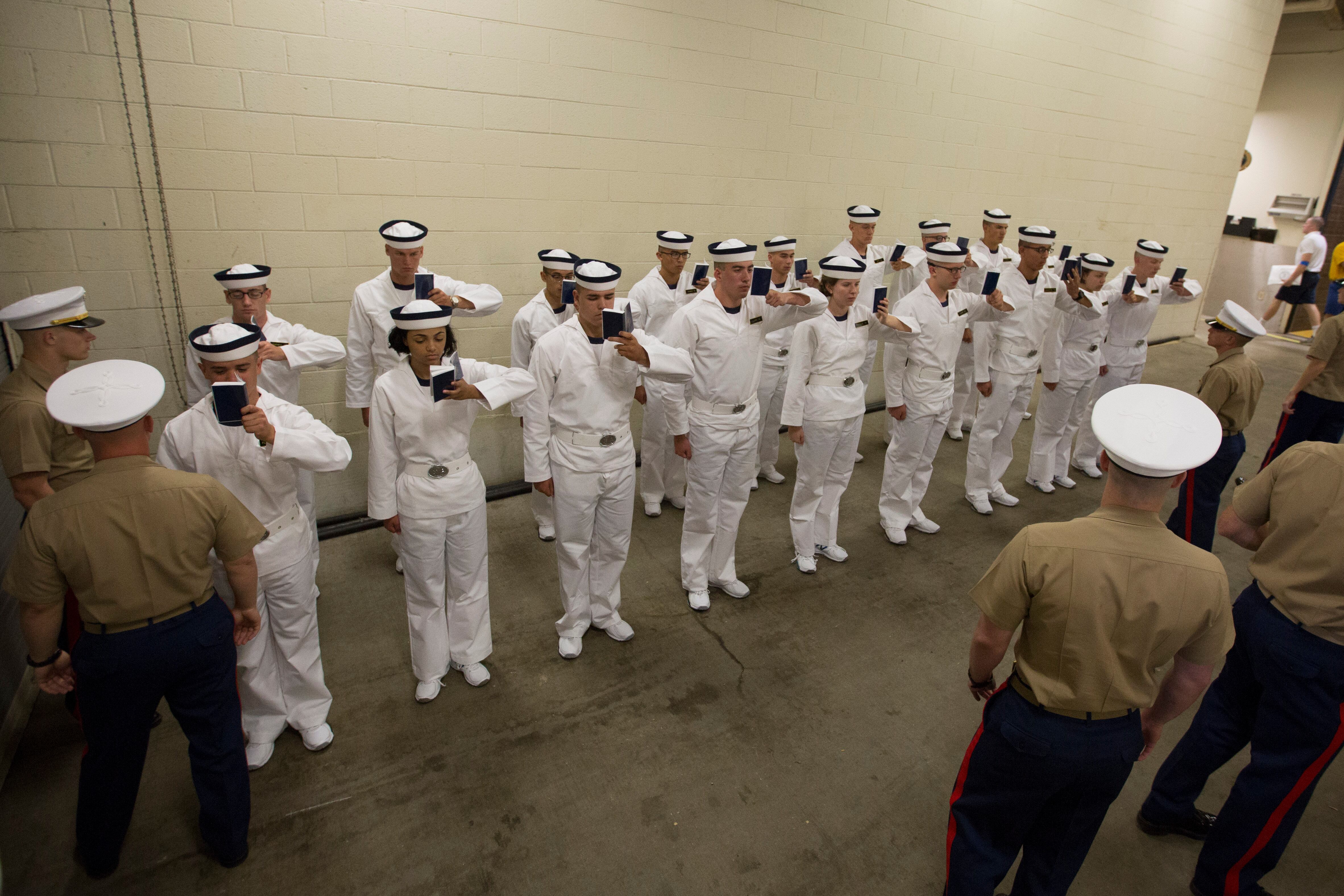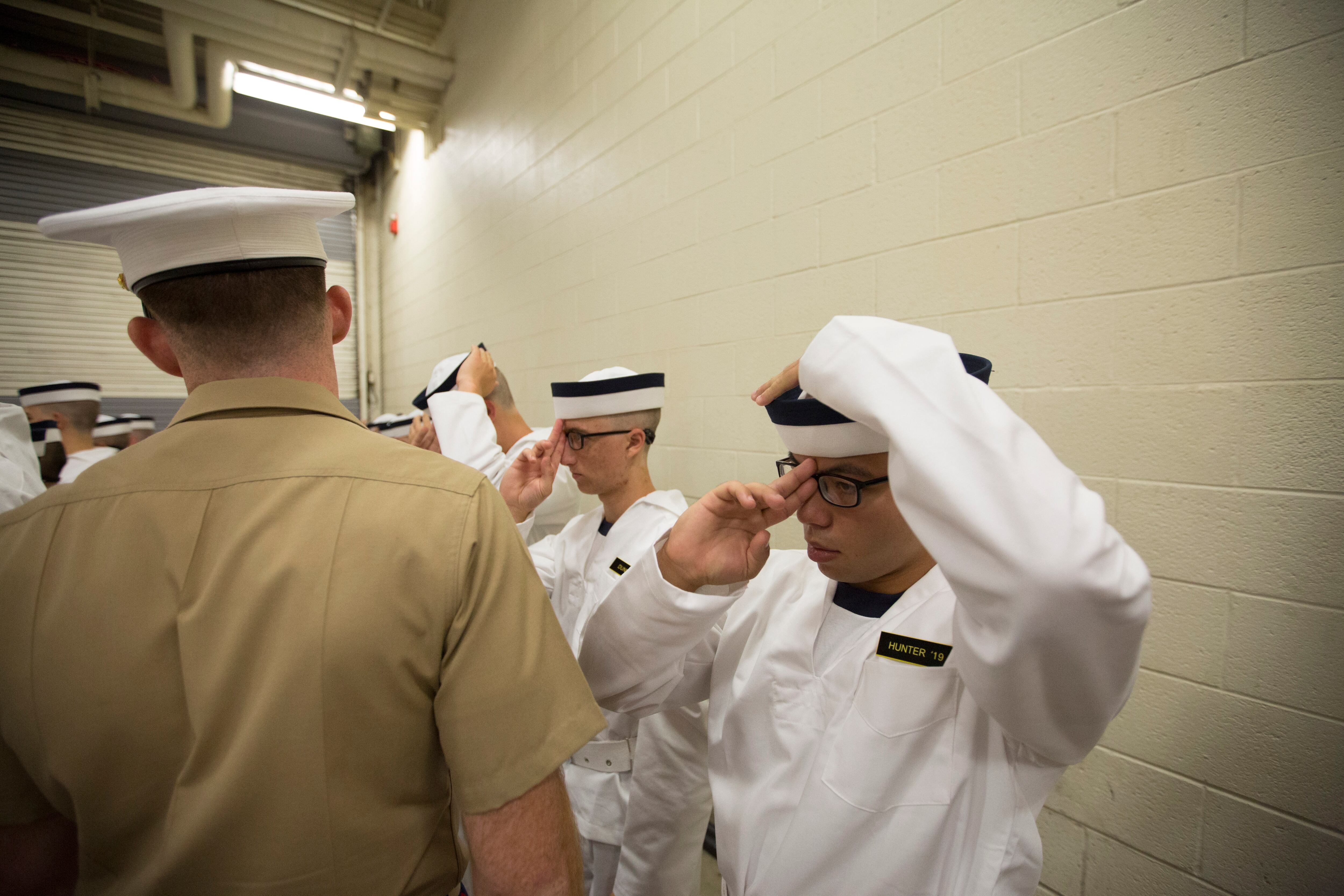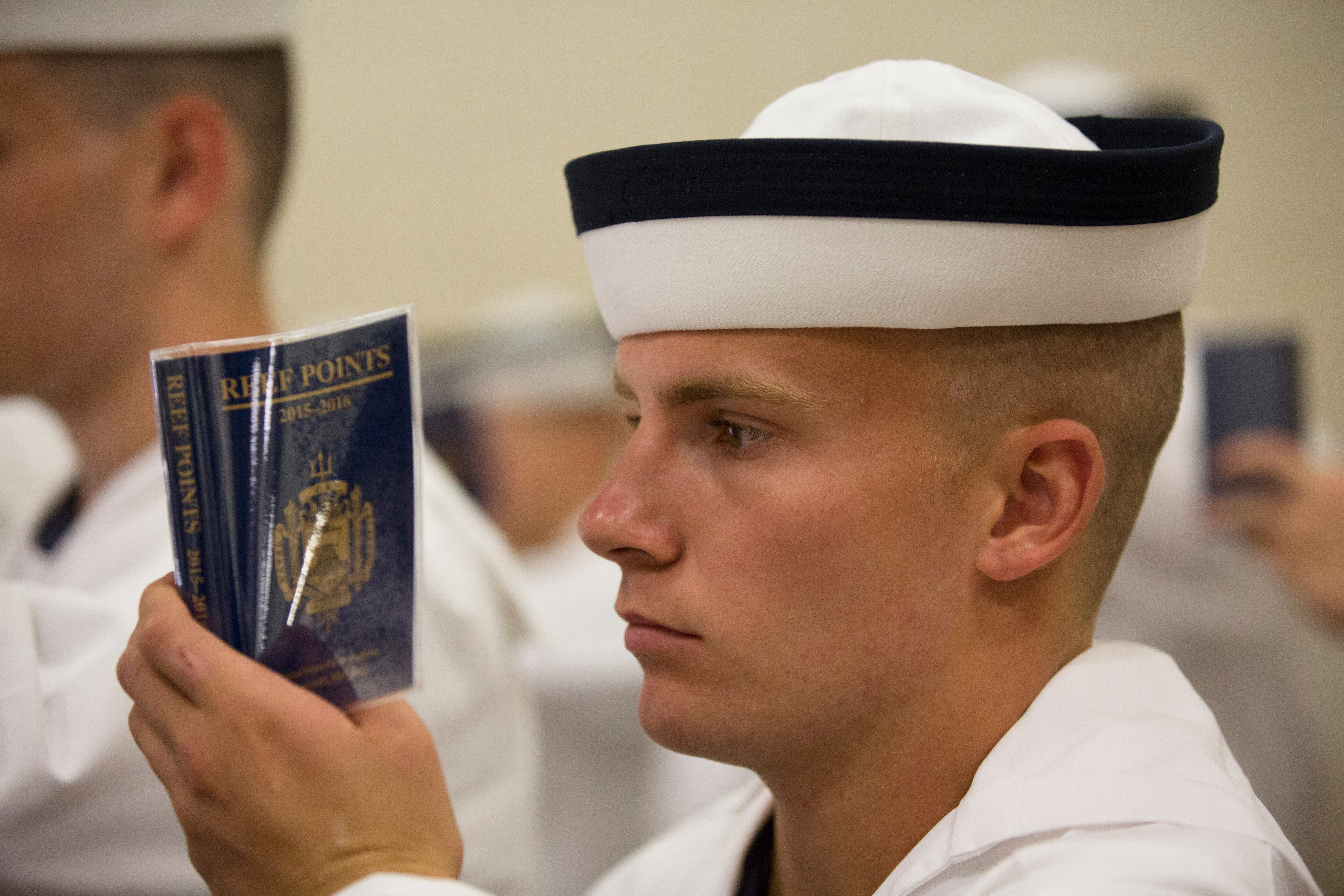 Kennedy Allison hugs her mother, Judy before starting induction day at U.S. Naval Academy in Annapolis, MD, on Wednesday, July 1, 2015. (Daniel Woolfolk/Staff)Plebes take part in induction day at U.S. Naval Academy in Annapolis, MD, on Wednesday, July 1, 2015. (Daniel Woolfolk/Staff)Alexandra Bruno, of Little Falls, NJ and Mark McCallister, of Pendleton, Ind. write their names on their sea bags at induction day at U.S. Naval Academy in Annapolis, MD, on Wednesday, July 1, 2015. (Daniel Woolfolk/Staff)Plebes take part in induction day at U.S. Naval Academy in Annapolis, MD, on Wednesday, July 1, 2015. (Daniel Woolfolk/Staff)Joseph Cantu, of Corpus Christi Texas, receives his Dixie Cup hat takes part in induction day at U.S. Naval Academy in Annapolis, MD, on Wednesday, July 1, 2015. (Daniel Woolfolk/Staff)Matthew Pentaleri, of Jacksonville, Fl, enjoys his long hairäóîat least for a few minutes before having it shaved at induction day at U.S. Naval Academy in Annapolis, MD, on Wednesday, July 1, 2015. (Daniel Woolfolk/Staff)Plebes study Reef Points at induction day at U.S. Naval Academy in Annapolis, MD, on Wednesday, July 1, 2015. (Daniel Woolfolk/Staff)Plebes get hair cut to standard at induction day at U.S. Naval Academy in Annapolis, MD, on Wednesday, July 1, 2015. (Daniel Woolfolk/Staff)Marine Corps Second Lt. Luis Penichet teaches plebes the basic during induction day at the U.S. Naval Academy in Annapolis, MD, on Wednesday, July 1, 2015. (Daniel Woolfolk/Staff)Plebes get hair cut to standard at induction day at U.S. Naval Academy in Annapolis, MD, on Wednesday, July 1, 2015. (Daniel Woolfolk/Staff)A plebe learns to adjust his hat at induction day at U.S. Naval Academy in Annapolis, MD, on Wednesday, July 1, 2015. (Daniel Woolfolk/Staff)Taylor Welker, of Stevenson Ranch, Calif. has her hair styled to academy standards at induction day at U.S. Naval Academy in Annapolis, MD, on Wednesday, July 1, 2015. (Daniel Woolfolk/Staff)Plebes take part in induction day at U.S. Naval Academy in Annapolis, MD, on Wednesday, July 1, 2015. (Daniel Woolfolk/Staff)