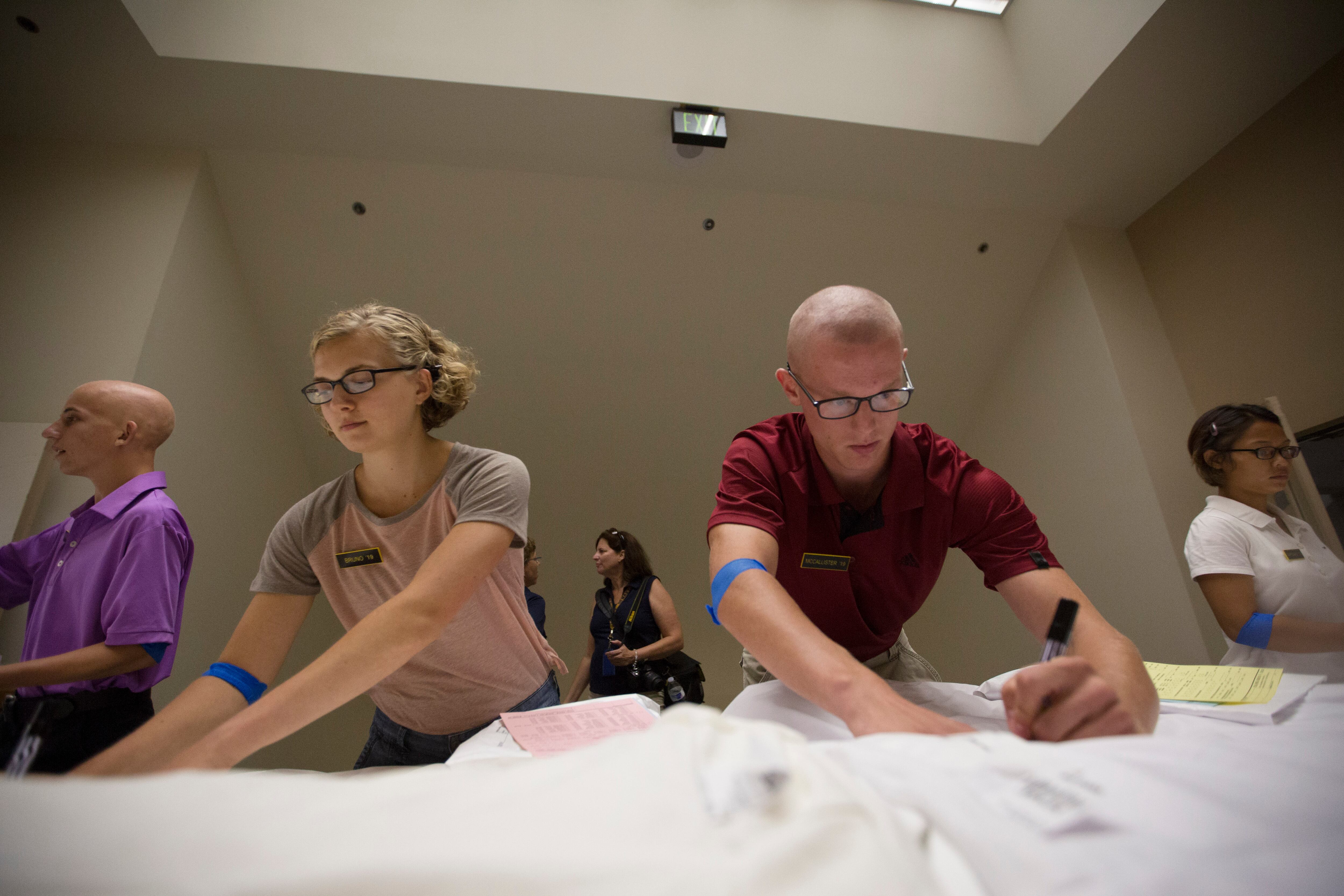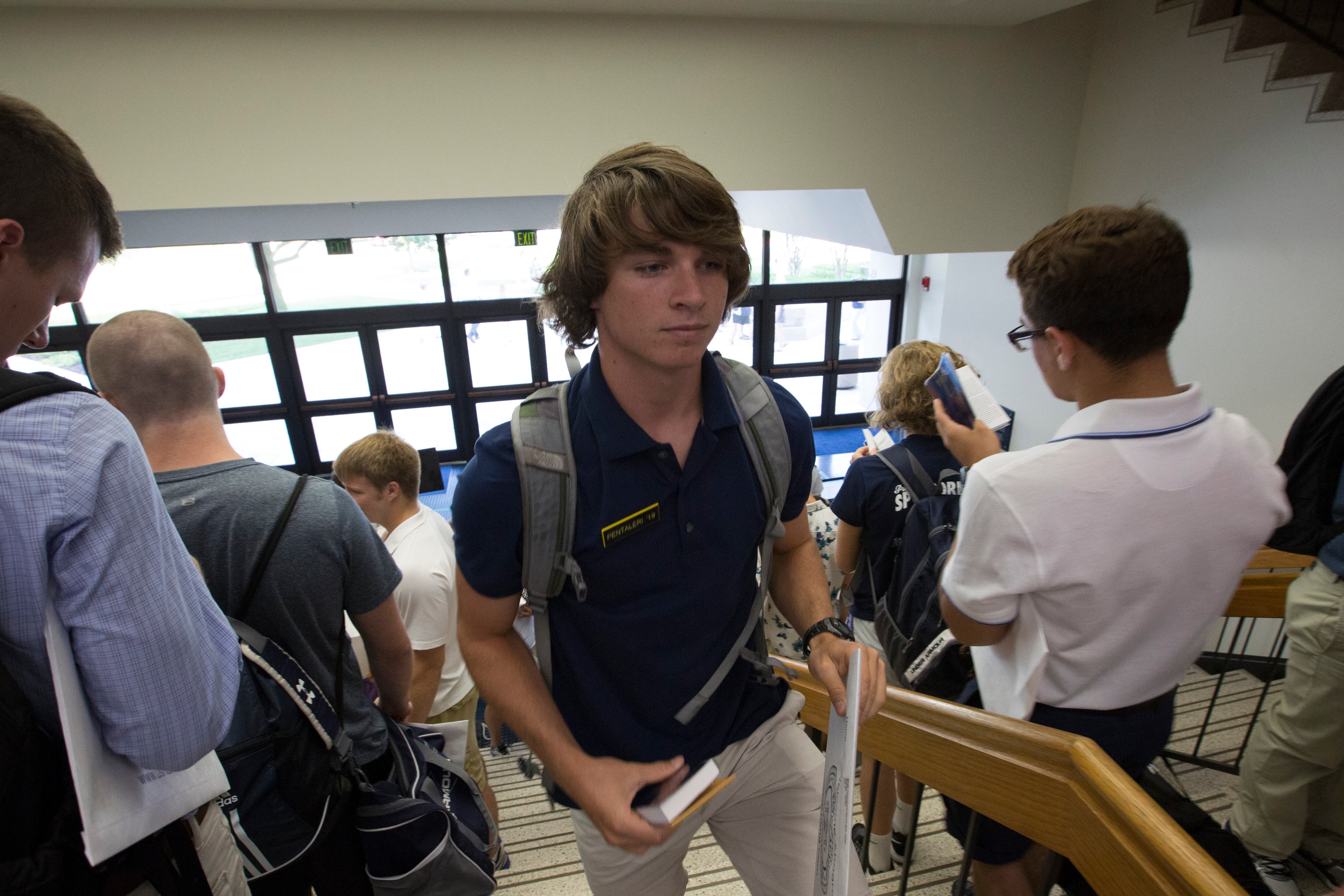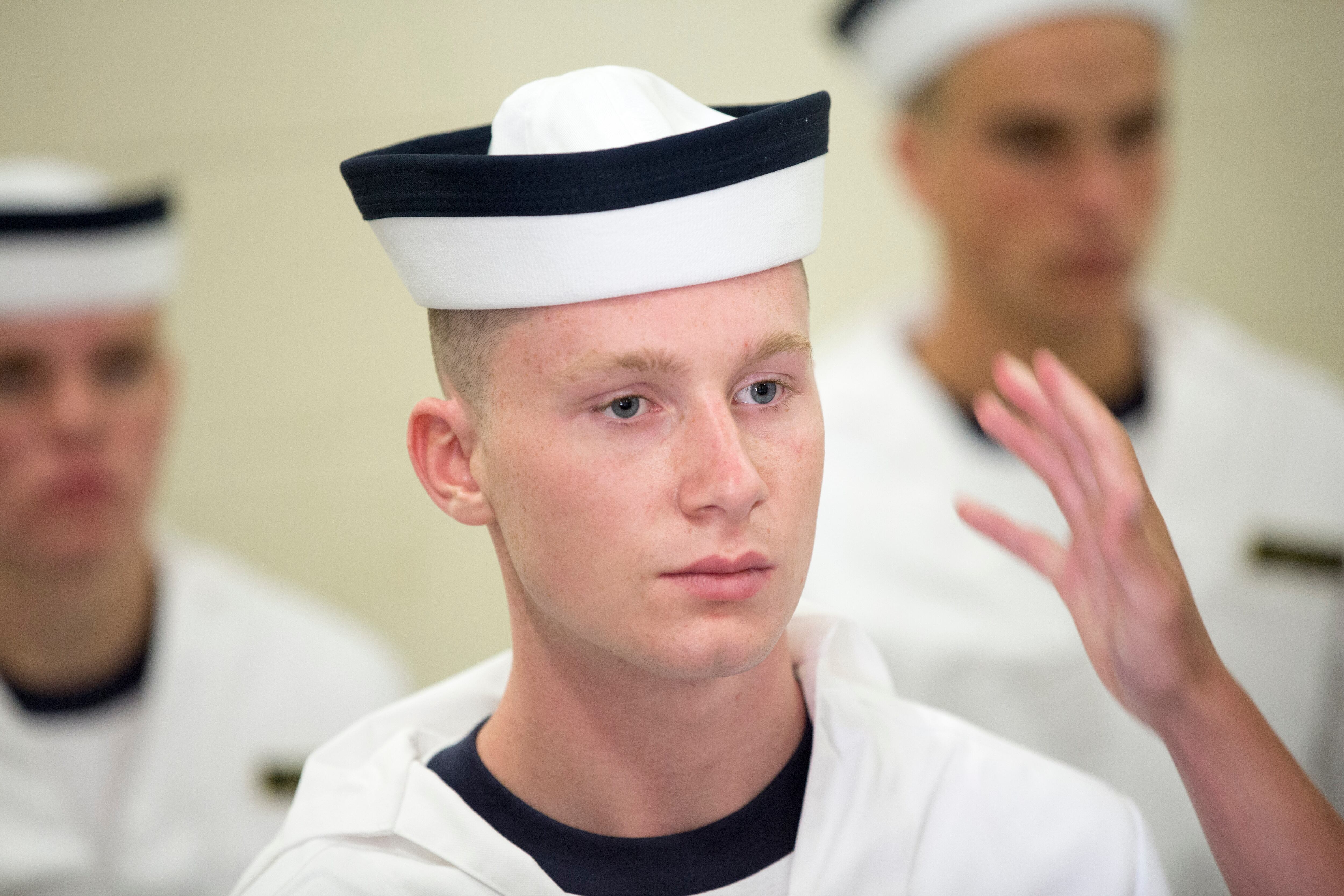 Kennedy Allison hugs her mother, Judy before starting induction day at U.S. Naval Academy in Annapolis, MD, on Wednesday, July 1, 2015. (Daniel Woolfolk/Staff)Plebes take part in induction day at U.S. Naval Academy in Annapolis, MD, on Wednesday, July 1, 2015. (Daniel Woolfolk/Staff)Alexandra Bruno, of Little Falls, NJ and Mark McCallister, of Pendleton, Ind. write their names on their sea bags at induction day at U.S. Naval Academy in Annapolis, MD, on Wednesday, July 1, 2015. (Daniel Woolfolk/Staff)Plebes take part in induction day at U.S. Naval Academy in Annapolis, MD, on Wednesday, July 1, 2015. (Daniel Woolfolk/Staff)Joseph Cantu, of Corpus Christi Texas, receives his Dixie Cup hat takes part in induction day at U.S. Naval Academy in Annapolis, MD, on Wednesday, July 1, 2015. (Daniel Woolfolk/Staff)Matthew Pentaleri, of Jacksonville, Fl, enjoys his long hairäóîat least for a few minutes before having it shaved at induction day at U.S. Naval Academy in Annapolis, MD, on Wednesday, July 1, 2015. (Daniel Woolfolk/Staff)Plebes study Reef Points at induction day at U.S. Naval Academy in Annapolis, MD, on Wednesday, July 1, 2015. (Daniel Woolfolk/Staff)Plebes get hair cut to standard at induction day at U.S. Naval Academy in Annapolis, MD, on Wednesday, July 1, 2015. (Daniel Woolfolk/Staff)Marine Corps Second Lt. Luis Penichet teaches plebes the basic during induction day at the U.S. Naval Academy in Annapolis, MD, on Wednesday, July 1, 2015. (Daniel Woolfolk/Staff)Plebes get hair cut to standard at induction day at U.S. Naval Academy in Annapolis, MD, on Wednesday, July 1, 2015. (Daniel Woolfolk/Staff)A plebe learns to adjust his hat at induction day at U.S. Naval Academy in Annapolis, MD, on Wednesday, July 1, 2015. (Daniel Woolfolk/Staff)Taylor Welker, of Stevenson Ranch, Calif. has her hair styled to academy standards at induction day at U.S. Naval Academy in Annapolis, MD, on Wednesday, July 1, 2015. (Daniel Woolfolk/Staff)Plebes take part in induction day at U.S. Naval Academy in Annapolis, MD, on Wednesday, July 1, 2015. (Daniel Woolfolk/Staff)