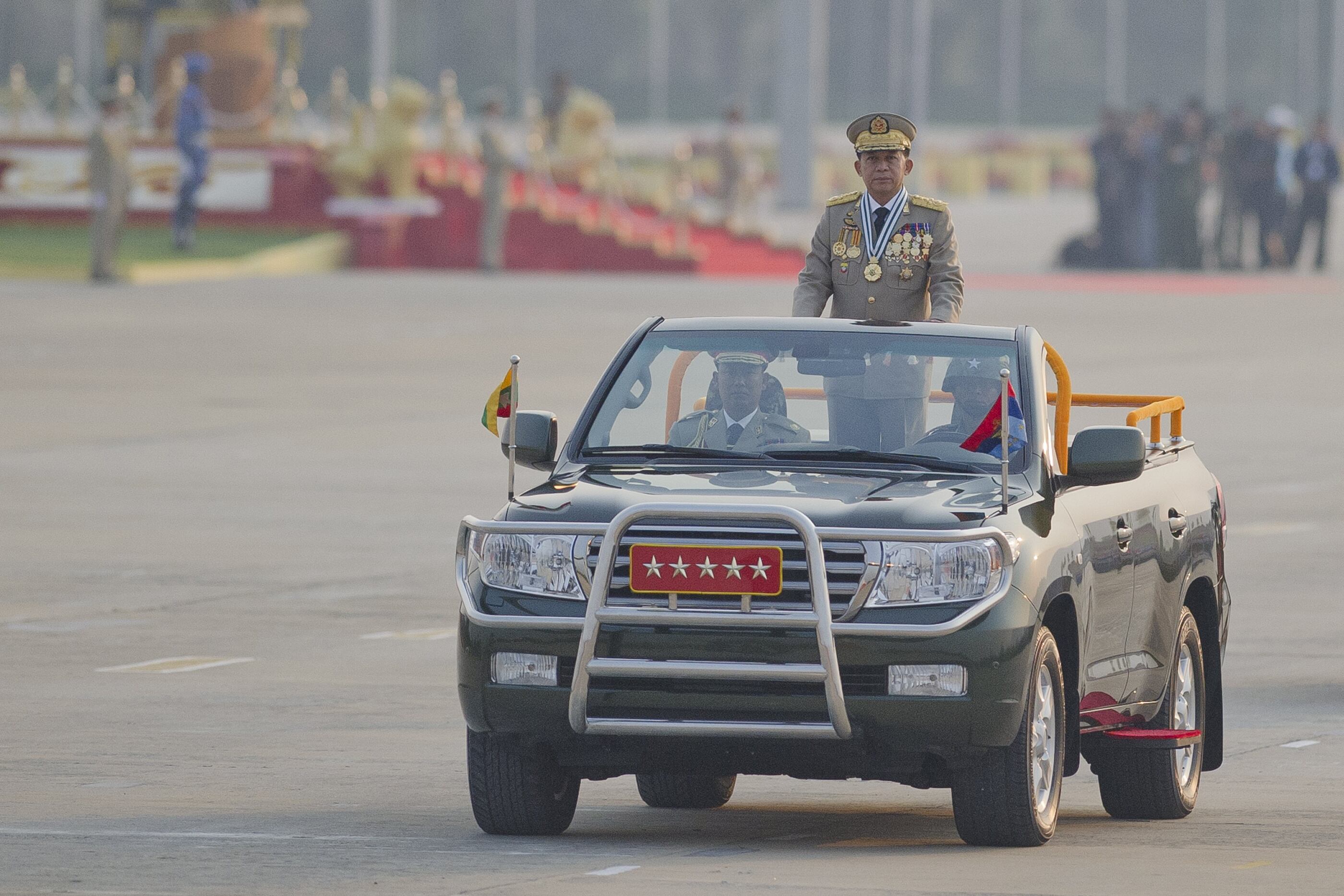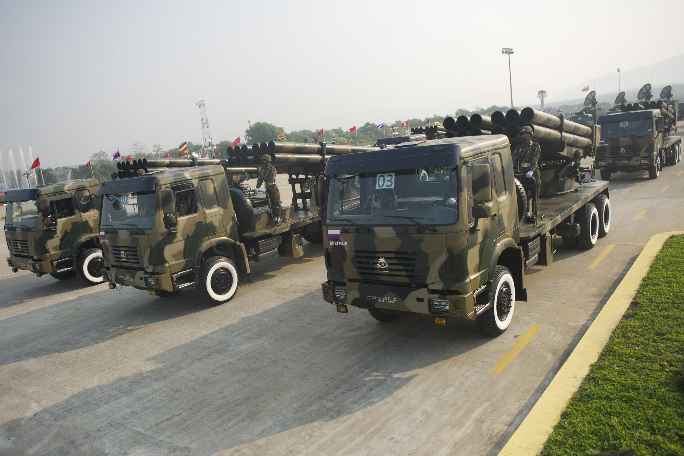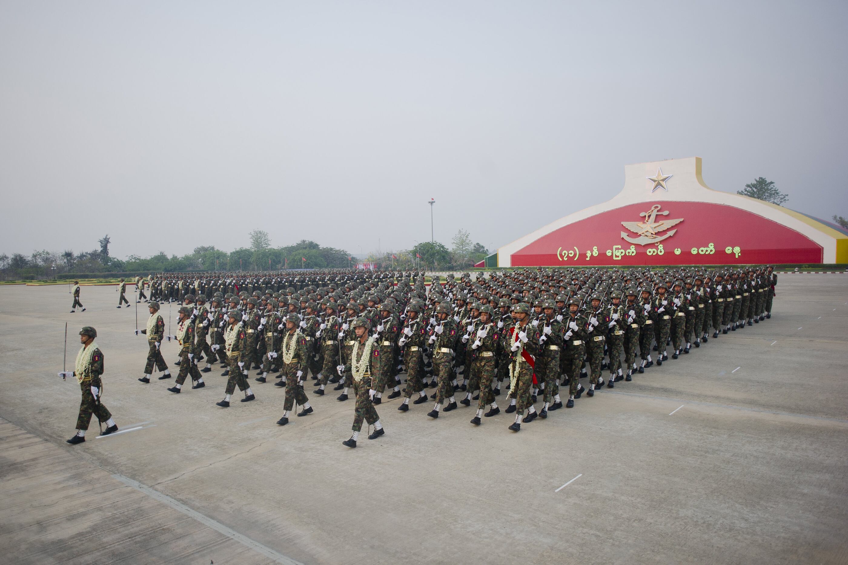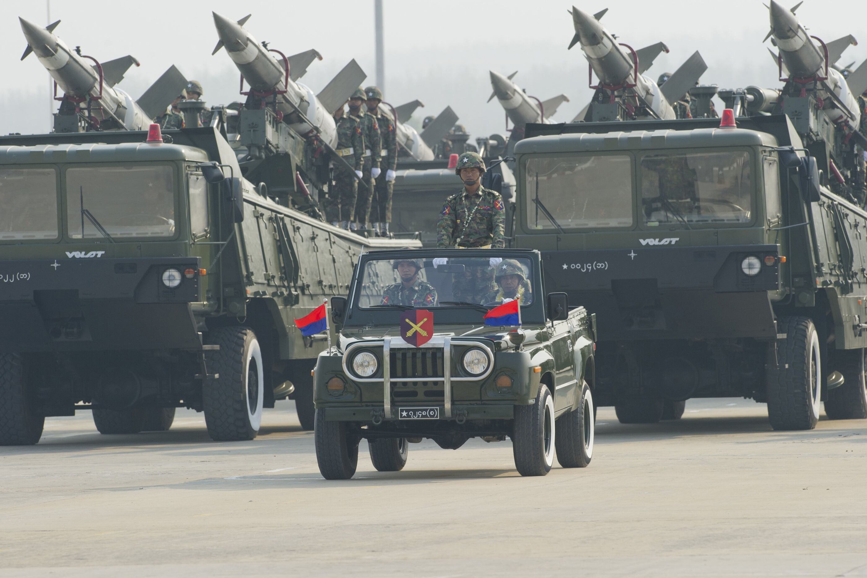 Myanmar military helicopters (background) fly in formation as statues are seen during a ceremony to mark the 71st Armed Forces Day in Myanmar's capital Naypyidaw on March 27, 2016. / AFP / YE AUNG THU (Photo credit should read YE AUNG THU/AFP/Getty Images)Members of Myanmar's military march in formation during a ceremony to mark the 71st Armed Forces Day in Myanmar's capital Naypyidaw on March 27, 2016. / AFP / YE AUNG THU (Photo credit should read YE AUNG THU/AFP/Getty Images)Members of Myanmar's military march in formation during a ceremony to mark the 71st Armed Forces Day in Myanmar's capital Naypyidaw on March 27, 2016. / AFP / YE AUNG THU (Photo credit should read YE AUNG THU/AFP/Getty Images)Members of Myanmar's military march in formation during a ceremony to mark the 71st Armed Forces Day in Myanmar's capital Naypyidaw on March 27, 2016. / AFP / YE AUNG THU (Photo credit should read YE AUNG THU/AFP/Getty Images)Members of Myanmar's military march in formation during a ceremony to mark the 71st Armed Forces Day in Myanmar's capital Naypyidaw on March 27, 2016. / AFP / YE AUNG THU (Photo credit should read YE AUNG THU/AFP/Getty Images)Members of Myanmar's military march in formation during a ceremony to mark the 71st Armed Forces Day in Myanmar's capital Naypyidaw on March 27, 2016. / AFP / YE AUNG THU (Photo credit should read YE AUNG THU/AFP/Getty Images)Members of Myanmar's military march in formation during a ceremony to mark the 71st Armed Forces Day in Myanmar's capital Naypyidaw on March 27, 2016. / AFP / YE AUNG THU (Photo credit should read YE AUNG THU/AFP/Getty Images)Chief Senior General Min Aung Hlaing, commander in chief of the Myanmar armed forces, inspects troops during a ceremony to mark the 71st Armed Forces Day in Myanmar's capital Naypyidaw on March 27, 2016. / AFP / afp / YE AUNG THU (Photo credit should read YE AUNG THU/AFP/Getty Images)Surface to air missiles of the Myanmar military are paraded during a ceremony to mark the 71st Armed Forces Day in Myanmar's capital Naypyidaw on March 27, 2016. / AFP / YE AUNG THU (Photo credit should read YE AUNG THU/AFP/Getty Images)Surface to air missiles of the Myanmar military are paraded during a ceremony to mark the 71st Armed Forces Day in Myanmar's capital Naypyidaw on March 27, 2016. / AFP / YE AUNG THU (Photo credit should read YE AUNG THU/AFP/Getty Images)Armoured vehicles of the Myanmar military are paraded during a ceremony to mark the 71st Armed Forces Day in Myanmar's capital Naypyidaw on March 27, 2016. / AFP / YE AUNG THU (Photo credit should read YE AUNG THU/AFP/Getty Images)Myanmar military tanks are paraded during a ceremony to mark the 71st Armed Forces Day in Myanmar's capital Naypyidaw on March 27, 2016. / AFP / YE AUNG THU (Photo credit should read YE AUNG THU/AFP/Getty Images)Myanmar's military hardware is paraded during a ceremony to mark the 71st Armed Forces Day in Myanmar's capital Naypyidaw on March 27, 2016. / AFP / YE AUNG THU (Photo credit should read YE AUNG THU/AFP/Getty Images)Myanmar Air Force MiG-29 fighter aircraft fly in formation during a ceremony to mark the 71st Armed Forces Day in Myanmar's capital Naypyidaw on March 27, 2016. / AFP / YE AUNG THU (Photo credit should read YE AUNG THU/AFP/Getty Images)Myanmar Navy special forces personnel rappel from helicopters during a ceremony to mark the 71st Armed Forces Day in Myanmar's capital Naypyidaw on March 27, 2016. / AFP / YE AUNG THU (Photo credit should read YE AUNG THU/AFP/Getty Images)Chief Senior General Min Aung Hlaing, commander in chief of the Myanmar armed forces, salutes during a ceremony to mark the 71st Armed Forces Day in Myanmar's capital Naypyidaw on March 27, 2016. / AFP / AUNG HTET (Photo credit should read AUNG HTET/AFP/Getty Images)