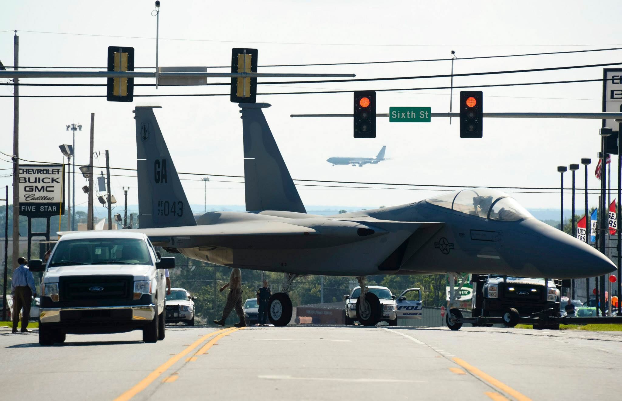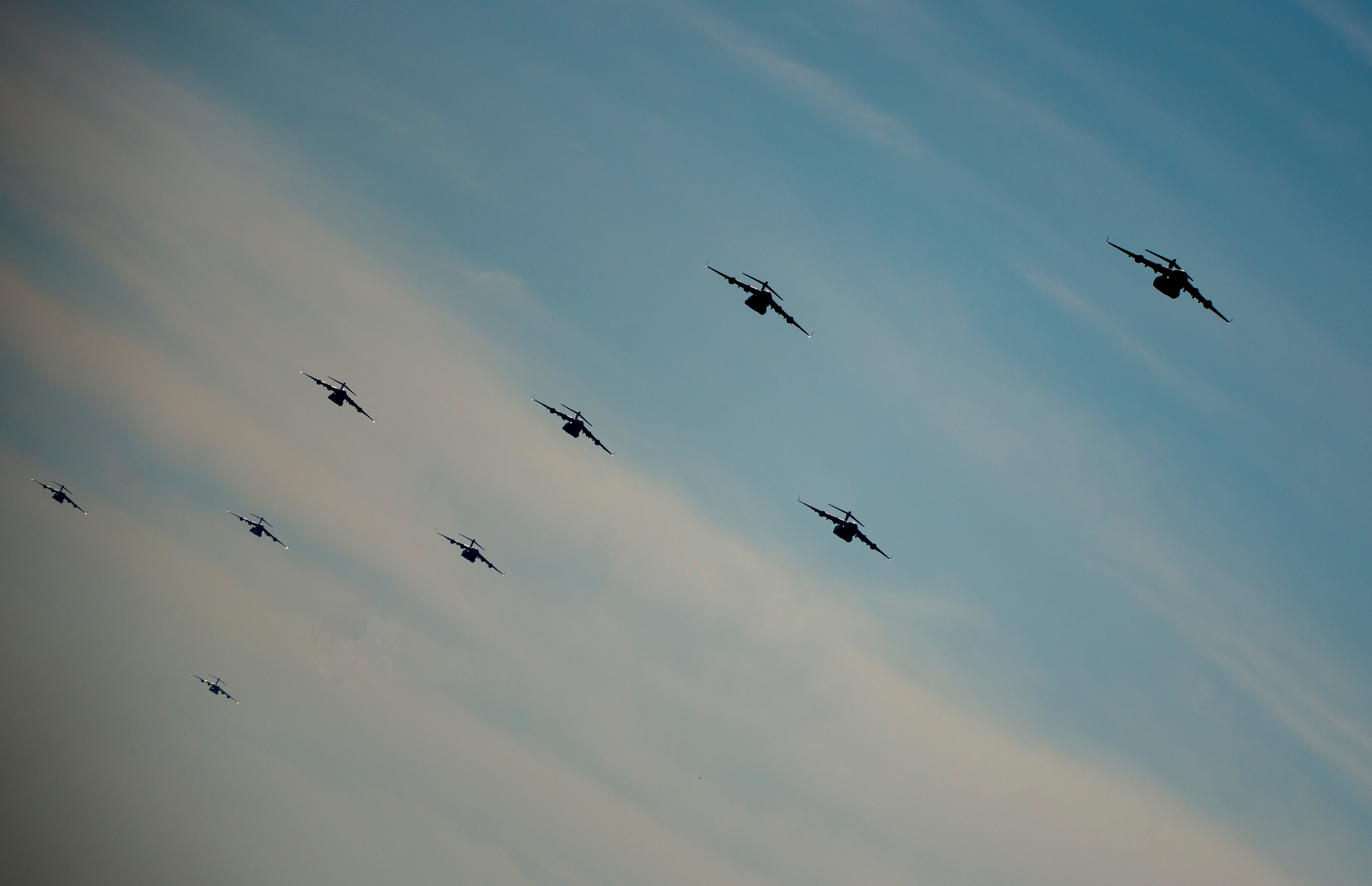 Capt. Philip Gunn participates in a flyover during the internment ceremony of Brig. Gen. Robinson Risner, Jan. 23, 2014, at Arlington National Cemetery. Risner was the Air Force's 20th ace and survived more than seven years of captivity as a prisoner during the Vietnam War. Gunn is a 336th Fighter Squadron weapons system officer assigned to Seymour Johnson Air Force Base, N.C. (Courtesy photo)A Delta IV rocket successfully launches the Global Positioning System IIF-5 satellite Feb. 20, 2014 from Space Launch Complex-37 at Cape Canaveral Air Force Station, Fla. (United Launch Alliance photo/Ben Cooper) Nine C-17 Globemaster III aircraft perform a large formation exercise March 27, 2014, at Joint Base Charleston, S.C. The large formation exercise provided more than 500 operational and maintenance training objectives and demonstrated the Air Force's strategic capability. (U.S. Air Force photo/Senior Airman Dennis Sloan)The 403rd Wing's C-130J and WC-130J aircraft fly in formation during a Operation Surge Capacity here April, 5, 2014. Aircraft from the 815th and 345th Airlift Squadrons and 53rd Weather Reconnaissance Squadron participated in Operation Surge Capacity, a large scale training exercise designed to test the 403rd Wing's ability to launch and recover a large formation of aircraft and to execute airdrops. (U.S. Air Force photo/Senior Airman Nicholas Monteleone)The U.S. Air Force Thunderbirds fly the Delta formation May 28, 2014, over Falcon Stadium during the U.S. Air Force Academy graduation ceremony. The flyover marks the first return of the Thunderbirds to Colorado Springs since sequestration last year. (U.S. Air Force photo/Staff Sgt. Larry E. Reid Jr.)The U.S. Air Force Honor Guard Drill Team performs June 26, 2014, at Mount Rushmore. The Drill Team recently completed a nine-day, seven-city, 10-performance tour across the Midwest with the U.S. Air Force Band’s rock ensemble Max Impact. During the tour, the two groups performed in Wisconsin, Minnesota, South Dakota, Wyoming and Nebraska. (U.S. Air Force Photo/1st Lt. Nathan Wallin)Airmen maneuver through traffic lights while towing an F-15 Eagle down Watson Boulevard to the Warner Robins City Hall, Warner Robins, Ga. Sept. 6, 2014. The aircraft was loaned to the city by the Georgia Air National Guard’s 116th Air Control Wing to serve as a static display for a new veteran’s memorial. The Airmen moving the aircraft are assigned to the 116th Maintenance Group. (U.S. Air National Guard photo/Tech. Sgt. Regina Young) Ships from the George Washington and Carl Vinson Carrier Strike Groups and aircraft from the Air Force and Marine Corps operate in formation at the conclusion of Valiant Shield 2014. Valiant Shield is a U.S.-only exercise integrating Navy, Air Force, Army, and Marine Corps assets, offering real-world joint operational experience to develop capabilities that provide a full range of options to defend U.S. interests and those of its allies and partners. (U.S. Navy photo by Mass Communication Specialist 1st Class Trevor Welsh)WESTHAMPTON BEACH, NY -An HH-60 Pavehawk with the 101st Rescue Squadron, 106th Rescue Wing conducts training around Westhampton Beach on Nov. 25 2014. During this time the aircrew tested the aircraft's defensive systems and conducted a simulated rescue of a downed airman.