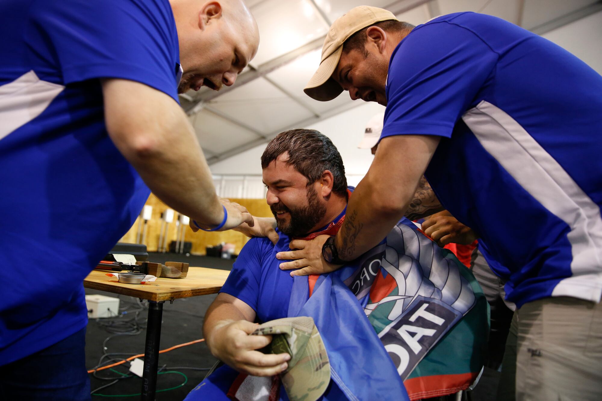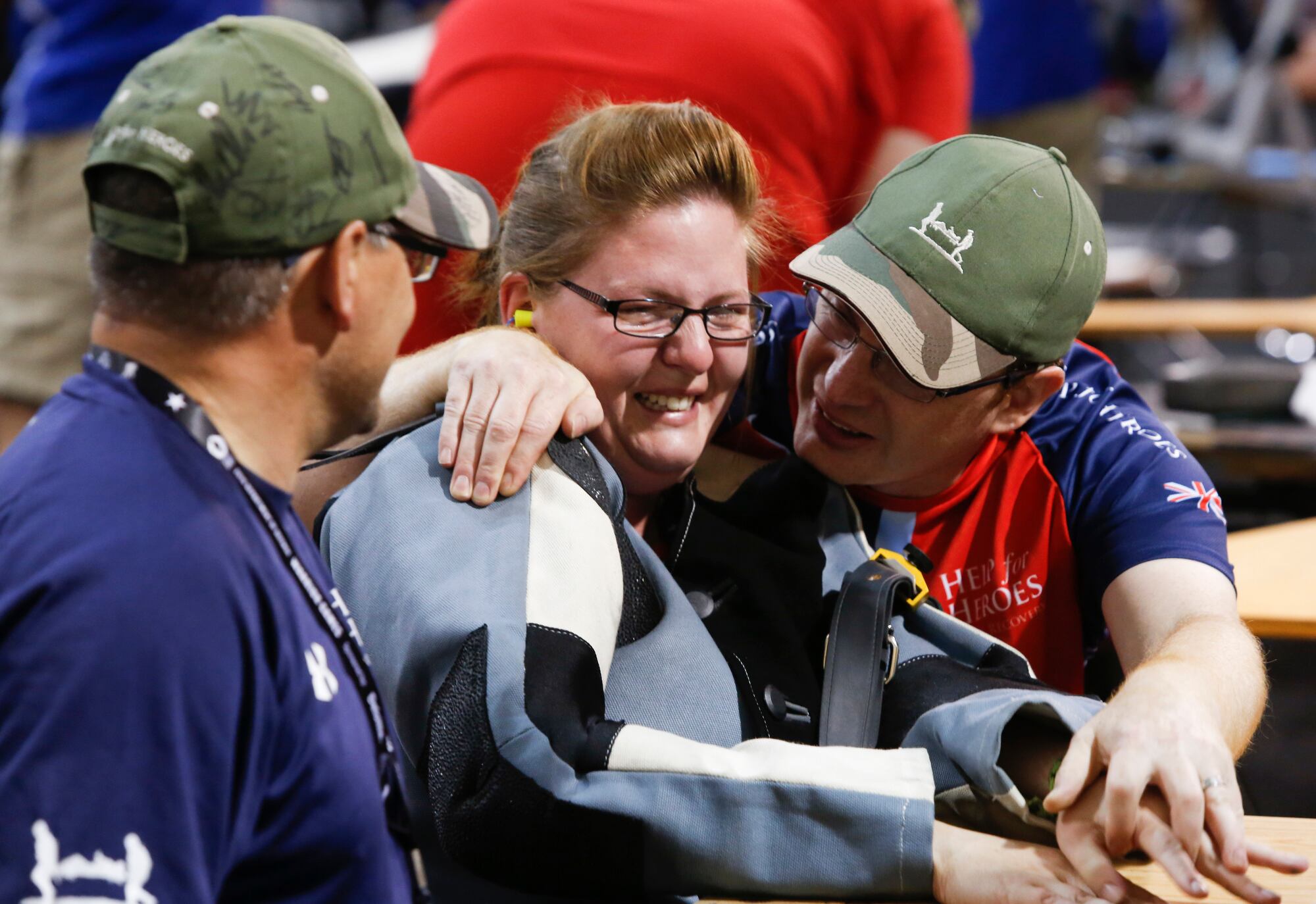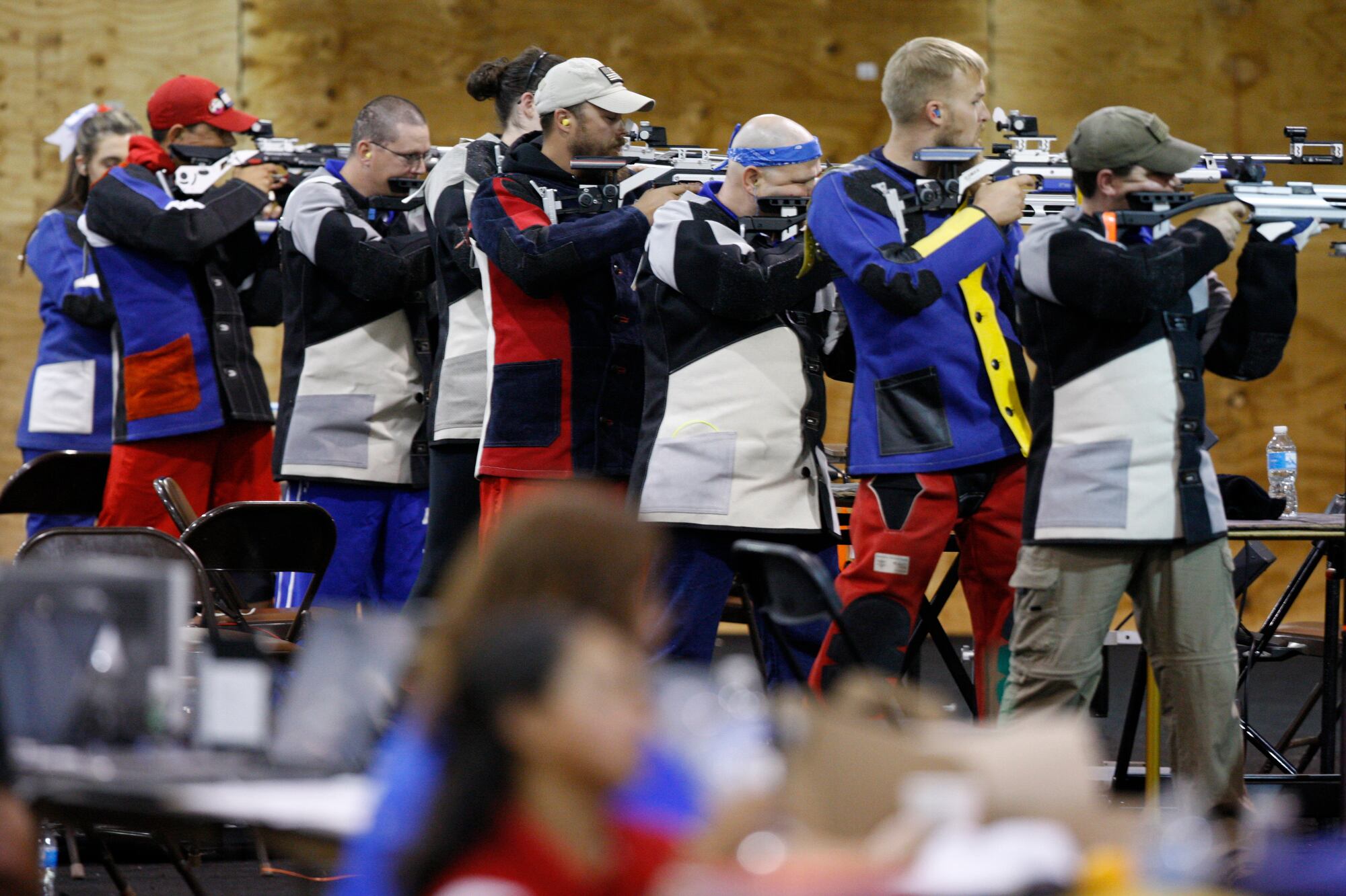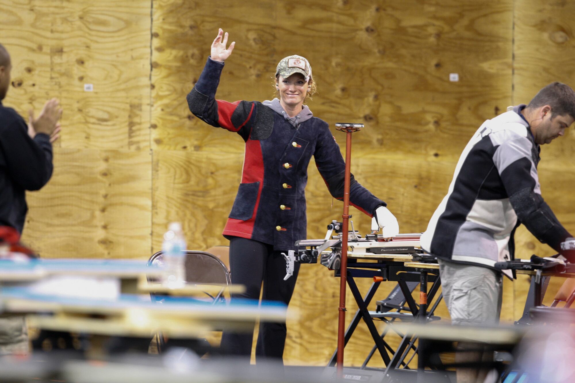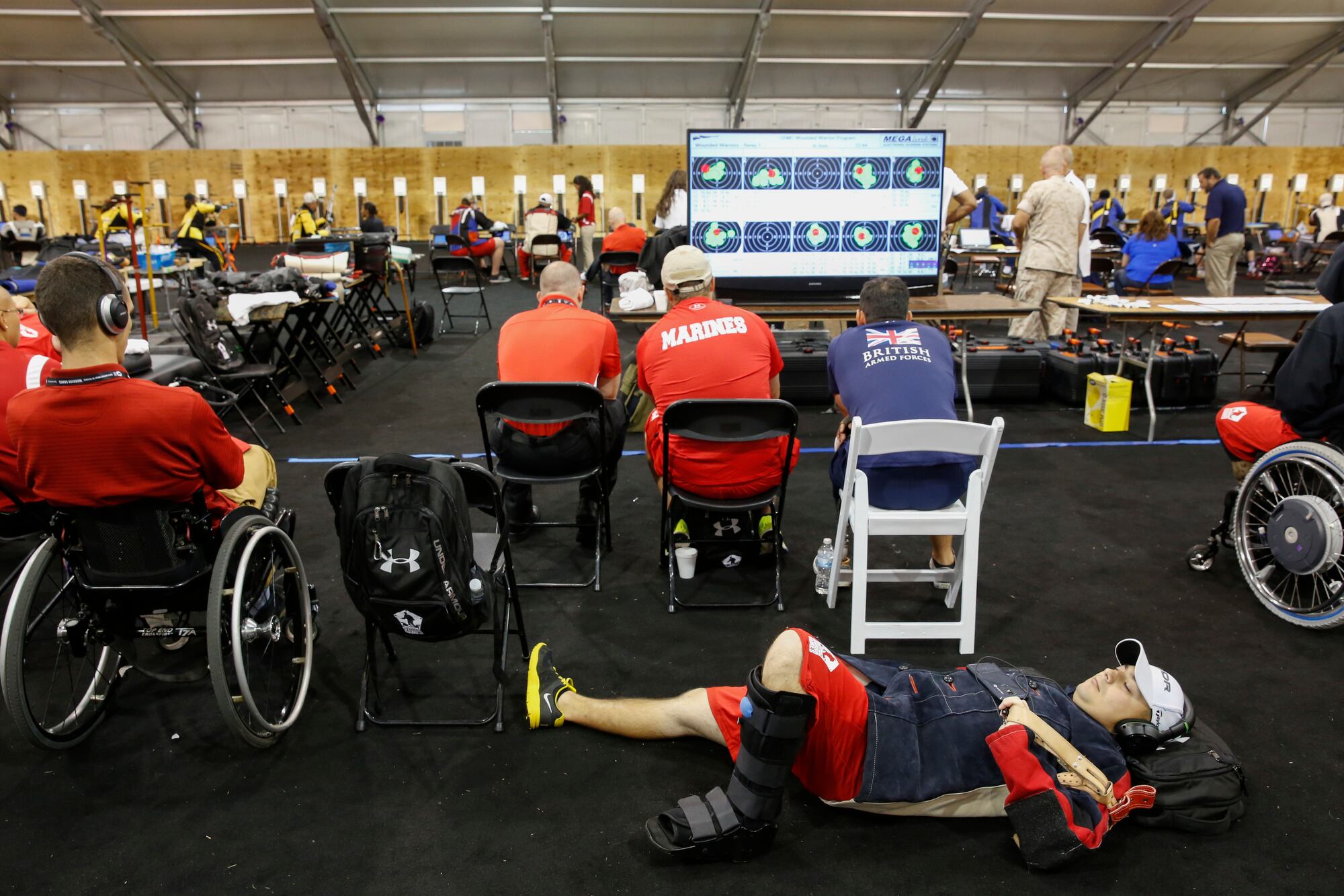 Athletes watch competition and wait their turn in the shooting events at the 2015 Warrior Games aboard Marine Corps Base Quantico, Va., on Friday, June 26, 2015. (Mike Morones/Military Times)Former NFL player Herschel Walker greets Marine competitor Check Sketch during the the shooting competition at the 2015 Warrior Games aboard Marine Corps Base Quantico, Va., on Friday, June 26, 2015. (Mike Morones/Military Times)Navy's Sadie Strong competes in the air rifle competition during the shooting events at the 2015 Warrior Games aboard Marine Corps Base Quantico, Va., on Friday, June 26, 2015. (Mike Morones/Military Times)Athletes compete in the shooting events at the 2015 Warrior Games aboard Marine Corps Base Quantico, Va., on Friday, June 26, 2015. (Mike Morones/Military Times)Team UK's Gemma Dacey celebrates her silver medal in the prone SH1 air rifle category during the shooting events at the 2015 Warrior Games aboard Marine Corps Base Quantico, Va., on Friday, June 26, 2015. (Mike Morones/Military Times)Air Force's Jason Ellis competes in shooting at the 2015 Warrior Games aboard Marine Corps Base Quantico, Va., on Friday, June 26, 2015. Ellis won gold in the Prone SH1 Air Rifle category. (Mike Morones/Military Times)Athletes compete in the shooting events at the 2015 Warrior Games aboard Marine Corps Base Quantico, Va., on Friday, June 26, 2015. (Mike Morones/Military Times)Athletes compete in the shooting events at the 2015 Warrior Games aboard Marine Corps Base Quantico, Va., on Friday, June 26, 2015. (Mike Morones/Military Times)Navy's Sadie Strong celebrates her gold in the air rifle competition during the shooting events at the 2015 Warrior Games aboard Marine Corps Base Quantico, Va., on Friday, June 26, 2015. (Mike Morones/Military Times)Marine athlete Chuck Sketch competes in the finals of the air rifle competition at the 2015 Warrior Games aboard Marine Corps Base Quantico, Va., on Friday, June 26, 2015. Sketch is blind and relies on a headset that makes a series of tones to indicate aiming position. (Mike Morones/Military Times)Sgt. Maj. Michael Mack congratulates Marine athlete Pedro "Ernesto" Aquino after he won gold in prone SH2 air rifle at the 2015 Warrior Games aboard Marine Corps Base Quantico, Va., on Friday, June 26, 2015. (Mike Morones/Military Times)Team Marine's Jenae Piper acknowledges the crowd after winning gold during the shooting events at the 2015 Warrior Games aboard Marine Corps Base Quantico, Va., on Friday, June 26, 2015. (Mike Morones/Military Times)Teammates congratulate Air Force's Seth Pena after he won gold in the SH1 air pistol category at the 2015 Warrior Games aboard Marine Corps Base Quantico, Va., on Friday, June 26, 2015. (Mike Morones/Military Times)