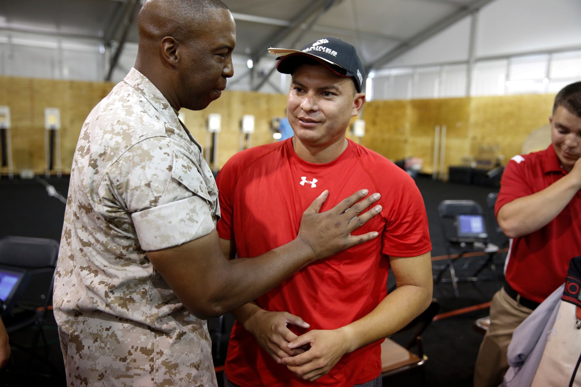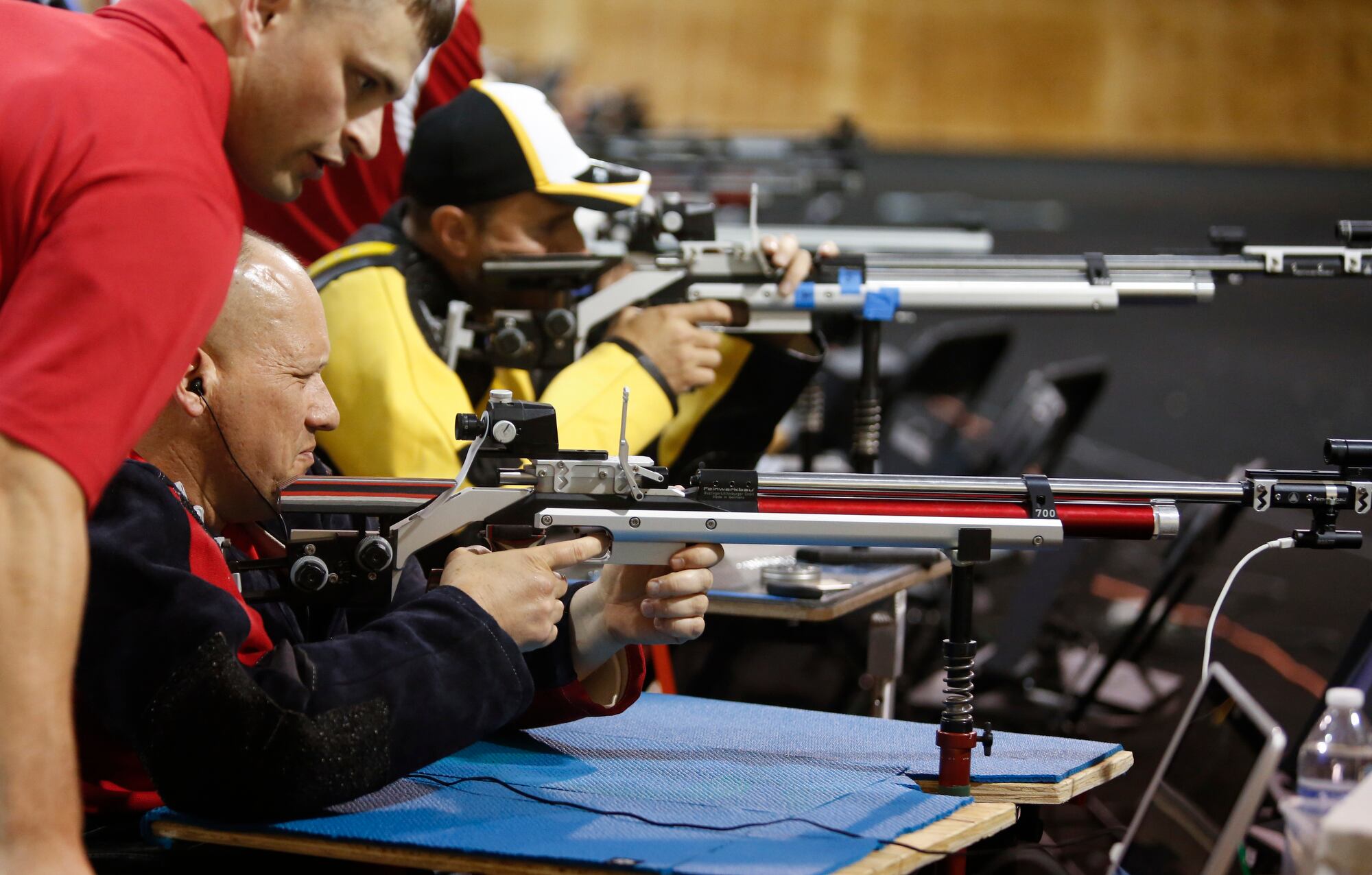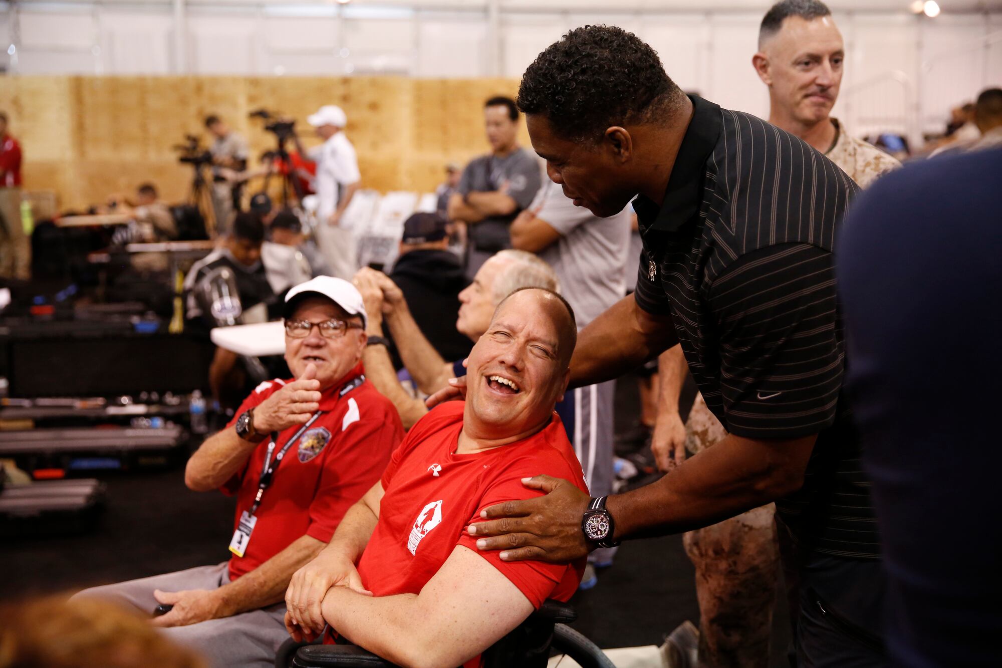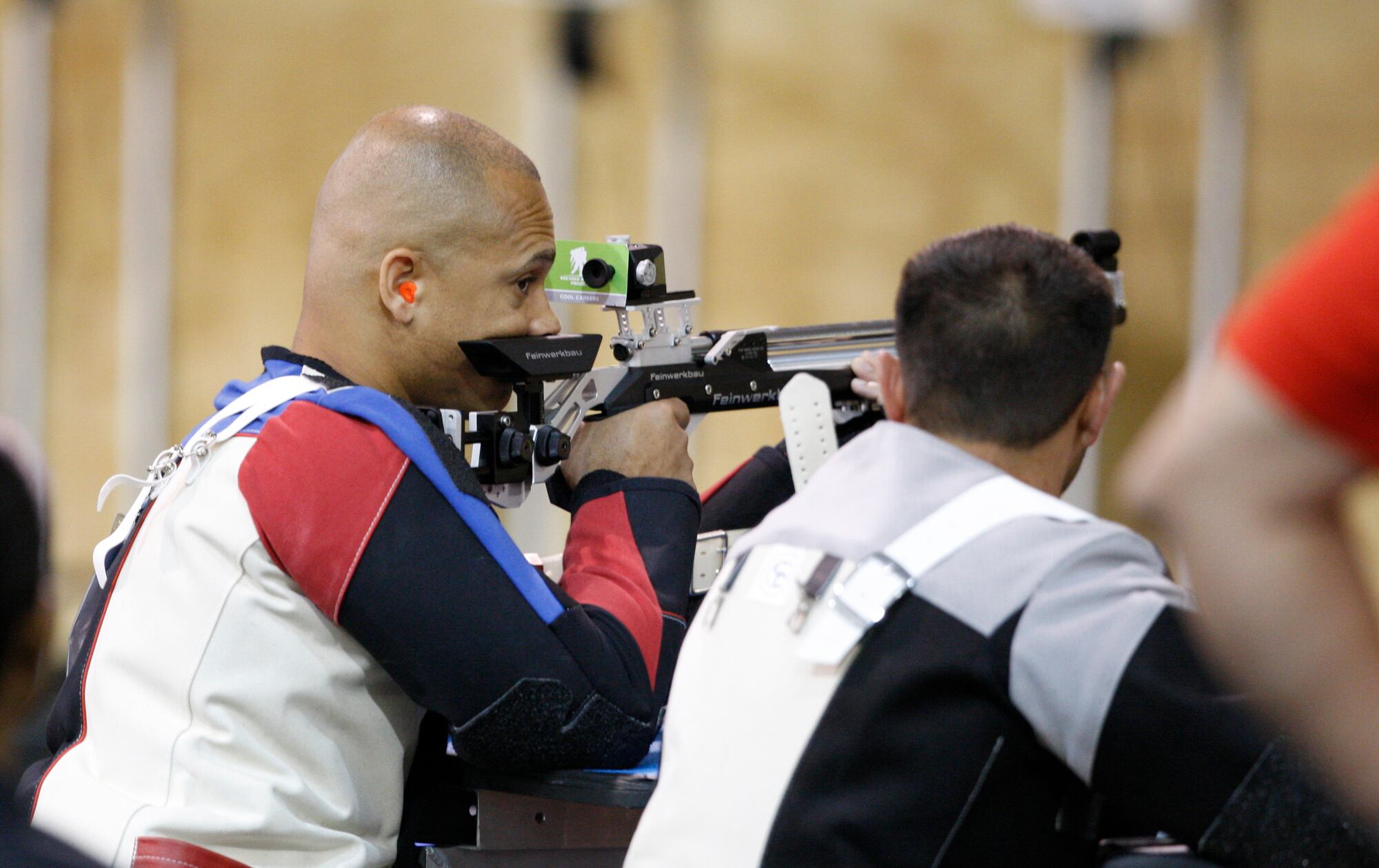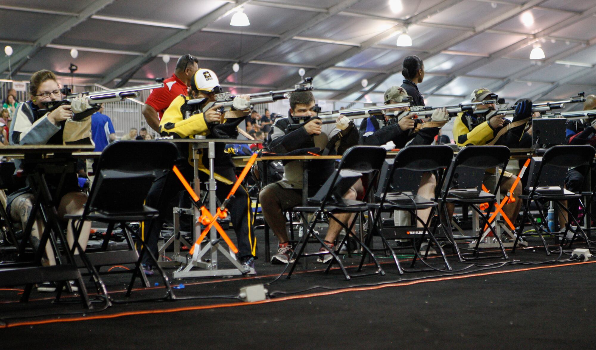 Athletes watch competition and wait their turn in the shooting events at the 2015 Warrior Games aboard Marine Corps Base Quantico, Va., on Friday, June 26, 2015. (Mike Morones/Military Times)Former NFL player Herschel Walker greets Marine competitor Check Sketch during the the shooting competition at the 2015 Warrior Games aboard Marine Corps Base Quantico, Va., on Friday, June 26, 2015. (Mike Morones/Military Times)Navy's Sadie Strong competes in the air rifle competition during the shooting events at the 2015 Warrior Games aboard Marine Corps Base Quantico, Va., on Friday, June 26, 2015. (Mike Morones/Military Times)Athletes compete in the shooting events at the 2015 Warrior Games aboard Marine Corps Base Quantico, Va., on Friday, June 26, 2015. (Mike Morones/Military Times)Team UK's Gemma Dacey celebrates her silver medal in the prone SH1 air rifle category during the shooting events at the 2015 Warrior Games aboard Marine Corps Base Quantico, Va., on Friday, June 26, 2015. (Mike Morones/Military Times)Air Force's Jason Ellis competes in shooting at the 2015 Warrior Games aboard Marine Corps Base Quantico, Va., on Friday, June 26, 2015. Ellis won gold in the Prone SH1 Air Rifle category. (Mike Morones/Military Times)Athletes compete in the shooting events at the 2015 Warrior Games aboard Marine Corps Base Quantico, Va., on Friday, June 26, 2015. (Mike Morones/Military Times)Athletes compete in the shooting events at the 2015 Warrior Games aboard Marine Corps Base Quantico, Va., on Friday, June 26, 2015. (Mike Morones/Military Times)Navy's Sadie Strong celebrates her gold in the air rifle competition during the shooting events at the 2015 Warrior Games aboard Marine Corps Base Quantico, Va., on Friday, June 26, 2015. (Mike Morones/Military Times)Marine athlete Chuck Sketch competes in the finals of the air rifle competition at the 2015 Warrior Games aboard Marine Corps Base Quantico, Va., on Friday, June 26, 2015. Sketch is blind and relies on a headset that makes a series of tones to indicate aiming position. (Mike Morones/Military Times)Sgt. Maj. Michael Mack congratulates Marine athlete Pedro "Ernesto" Aquino after he won gold in prone SH2 air rifle at the 2015 Warrior Games aboard Marine Corps Base Quantico, Va., on Friday, June 26, 2015. (Mike Morones/Military Times)Team Marine's Jenae Piper acknowledges the crowd after winning gold during the shooting events at the 2015 Warrior Games aboard Marine Corps Base Quantico, Va., on Friday, June 26, 2015. (Mike Morones/Military Times)Teammates congratulate Air Force's Seth Pena after he won gold in the SH1 air pistol category at the 2015 Warrior Games aboard Marine Corps Base Quantico, Va., on Friday, June 26, 2015. (Mike Morones/Military Times)