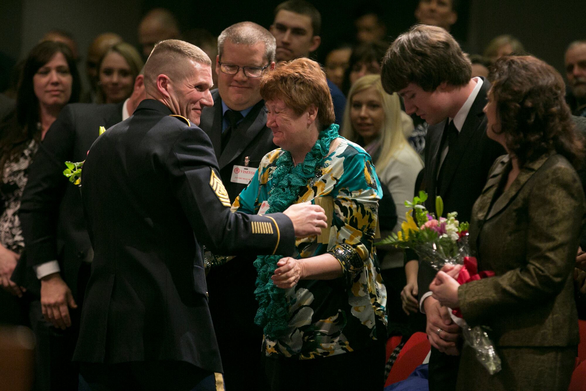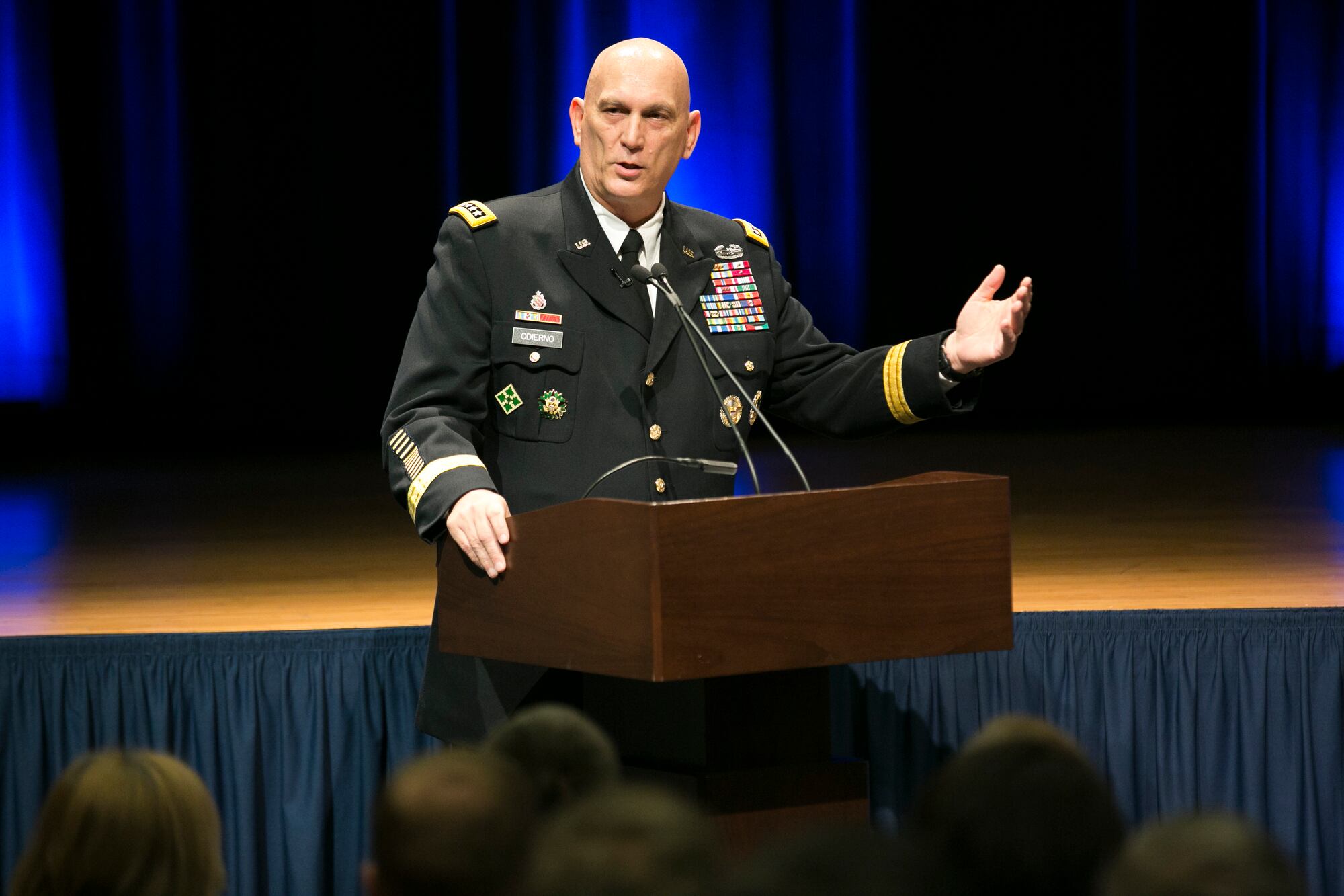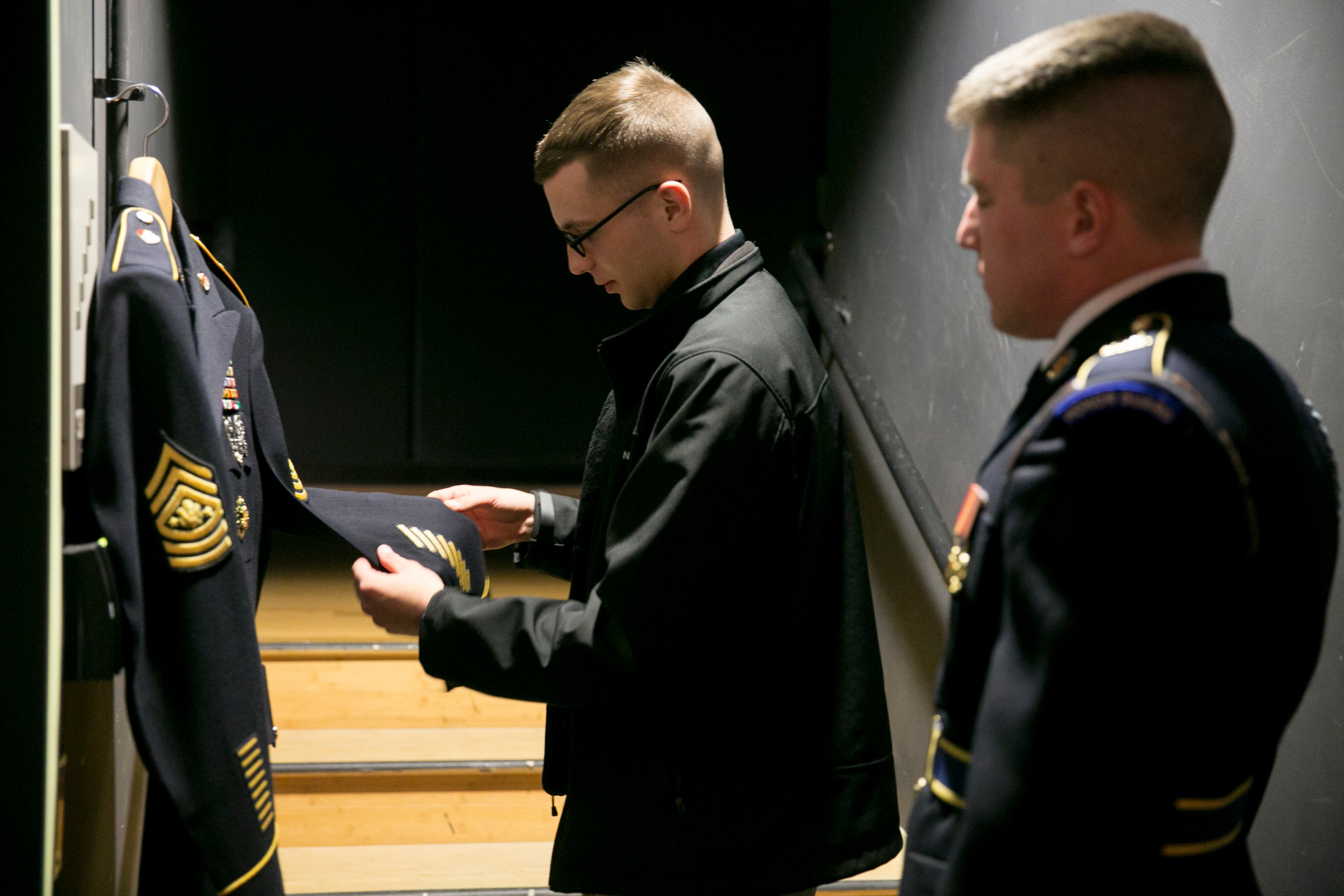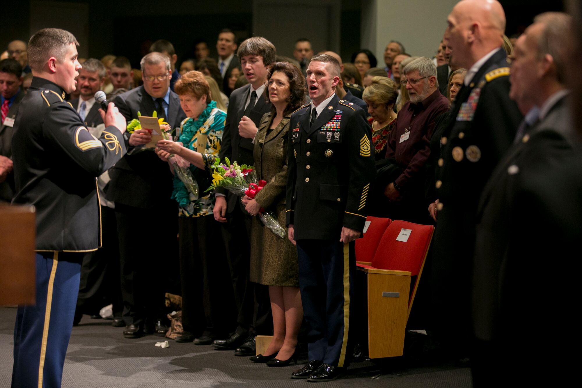 Chief of Staff of the Army Gen. Ray Odierno speaks before swearing in Command Sgt. Maj. Dan Dailey as the 15th Sergeant Major of the Army during a ceremony at the Pentagon in Arlington, Va., on Friday, January 30, 2015. (Mike Morones/Staff)Chief of Staff of the Army Gen. Ray Odierno and Holly Dailey affix new ranks as he swears in Command Sgt. Maj. Dan Dailey as the 15th Sergeant Major of the Army during a ceremony at the Pentagon in Arlington, Va., on Friday, January 30, 2015. (Mike Morones/Staff)Chief of Staff of the Army Gen. Ray Odierno and Holly Dailey affix new ranks as he swears in Command Sgt. Maj. Dan Dailey as the 15th Sergeant Major of the Army during a ceremony at the Pentagon in Arlington, Va., on Friday, January 30, 2015. (Mike Morones/Staff)Chief of Staff of the Army Gen. Ray Odierno places a jacket bearing the rank of Sergeant Major of the Army on Command Sgt. Maj. Dan Dailey during his swearing-in ceremony at the Pentagon in Arlington, Va., on Friday, January 30, 2015. (Mike Morones/Staff)Chief of Staff of the Army Gen. Ray Odierno swears in Command Sgt. Maj. Dan Dailey as the 15th Sergeant Major of the Army during a ceremony at the Pentagon in Arlington, Va., on Friday, January 30, 2015. (Mike Morones/Staff)Sergeant Major of the Army Dan Dailey makes a few remarks after being sworn-in as the 15th SMA at a ceremony at the Pentagon in Arlington, Va., on Friday, January 30, 2015. (Mike Morones/Staff)Sergeant Major of the Army Dan Dailey greets his family during his swearing-in ceremony at the Pentagon in Arlington, Va., on Friday, January 30, 2015. (Mike Morones/Staff)The crowd assembled for Sergeant Major of the Army Dan Dailey's swearing-in sing the Army Song following a ceremony at the Pentagon in Arlington, Va., on Friday, January 30, 2015. (Mike Morones/Staff)Sgt. Joseph Brennan and Pfc. Jeremy Byrd, both soldiers with D Company, 1st Battalion, 3rd Infantry Regiment, The Old Guard, check Command Sgt. Maj. Dan Dailey's new jacket before being sworn in as the 15th Sergeant Major of the Army during a ceremony at the Pentagon in Arlington, Va., on Friday, January 30, 2015. (Mike Morones/Staff)Sergeant Major of the Army shoulder boards sit backstage before Chief of Staff of the Army Gen. Ray Odierno swears in Command Sgt. Maj. Dan Dailey as the 15th Sergeant Major of the Army during a ceremony at the Pentagon in Arlington, Va., on Friday, January 30, 2015. (Mike Morones/Staff)