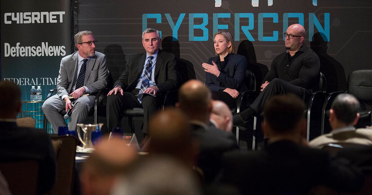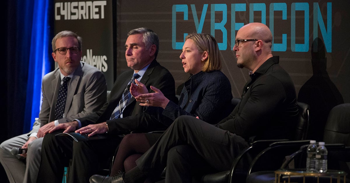 Assistant Secretary, Office of Cybersecurity and Communications, and James Scott, Senior Fellow, ICIT, during Cybercon 2017 at the Ritz-Carlton Hotel in Pentagon City on Nov. 28, 2017. ( Ben Murray/Staff)Mike Gruss, left, editor of C4ISRNET moderates a panel discussion on the New Critical Infrastructure with