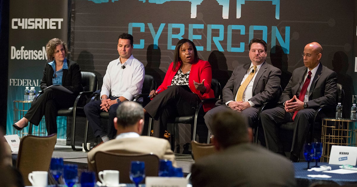 Assistant Secretary, Office of Cybersecurity and Communications, and James Scott, Senior Fellow, ICIT, during Cybercon 2017 at the Ritz-Carlton Hotel in Pentagon City on Nov. 28, 2017. ( Ben Murray/Staff)Jill Aitoro moderates a panel: Training on the Edge: with Joey Muniz, Technical Solutions Architect, Cisco, Deborah Pierre-Louis, Director of Policy, Liaison, and Training Office, Department of State, and Harry WIngo, Faculty member at College of Information and cyberspace, National Defense University at Cybercon 2017 at the Ritz-Carlton Hotel in Pentagon City on Nov. 28, 2017. ( Ben Murray/Staff)Jill Aitoro moderates a panel: Training on the Edge: with Joey Muniz, Technical Solutions Architect, Cisco, Deborah Pierre-Louis, Director of Policy, Liaison, and Training Office, Department of State, and Harry WIngo, Faculty member at College of Information and cyberspace, National Defense University at Cybercon 2017 at the Ritz-Carlton Hotel in Pentagon City on Nov. 28, 2017. ( Ben Murray/Staff)Brig. Gen. S.M. Lacroix, Director General of the Secretariat of the Inter-American Defense Board, gives keynote speech asserting the importance of globally minded cybersecurity measures at Cybercon 2017 at the Ritz-Carlton Hotel in Pentagon City on Nov. 28, 2017. ( Ben Murray/Staff)Jessie Bur, Sr. Reporter for Federal Times with Jim Piche, Homeland Security director, FEDSIM, General Services Administration and Greg Wigton, program manager, Cyber Security Division, Science and Technology Directorate, Dept. of Homeland Security, speaks during the Acquisition Innovation panel at Cybercon 2017 at the Ritz-Carlton Hotel in Pentagon City on Nov. 28, 2017. ( Ben Murray/Staff)