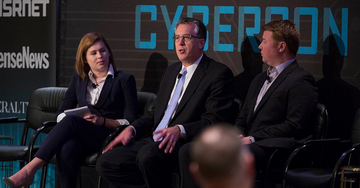 Sen. Sheldon Whitehouse, D-R.I., gives a keynote speech during Cybercon 2017, emphasizing the need for NIST stress-tests and cybersecurity focused inspector generals, at the Ritz-Carlton Hotel in Pentagon City on Nov. 28, 2017. (Alan Lessig/Staff)Brig. Gen. Timothy Haugh, left, Director of Intelligence, U.S. Cyber Command at Fort Meade, MD, with Col. Todd Stratton, center, Director, AFCYBER Forward, in a panel on Fighting Terror in Cyberspace moderated by Amber Corrin, right, Sr. Reporter, C4ISRNet, during Cybercon 2017 at the Ritz-Carlton Hotel in Pentagon City on Nov. 28, 2017. (Alan Lessig/Staff)An attendee asks a question of the panel that included Rep. Elise Stefanik (R-NY) Chair House Armed Services Subcommittee on Emerging Threats and Capabilities, David Wallen, Sr. Vice President, Cyber Operations, ManTech International Corp., Dr. George Trawick, Ph.D., Assistant Professor, College of Information and Cyberspace, National Defense University discuss Information Warfare: The Cyber Component during a Panel moderated by Mark Pomerlau, right, reporter for C4ISRNET during Cybercon 2017 at the Ritz-Carlton Hotel in Pentagon City on Nov. 28, 2017. ( Ben Murray/Staff)Rep. Elise Stefanik (R-NY) Chair House Armed Services Subcommittee on Emerging Threats and Capabilities, left, David Wallen, Sr. Vice President, Cyber Operations, ManTech International Corp., center, and Dr. George Trawick, Ph.D., Assistant Professor, College of Information and Cyberspace, National Defense University discuss Information Warfare: The Cyber Component during a Panel discussion at Cybercon 2017 at the Ritz-Carlton Hotel in Pentagon City on Nov. 28, 2017. ( Ben Murray/Staff)Dr. Brian Pierce, Director, Information Innovation Office, DARPA, gives a keynote speech focusing on U.S. cyber deterrence at Cybercon 2017 at the Ritz-Carlton Hotel in Pentagon City on Nov. 28, 2017. ( Ben Murray/Staff)Mike Gruss, left, editor of C4ISRNET moderates a panel discussion on the New Critical Infrastructure with