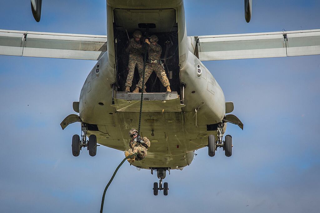 U.S. Navy sailors render honors aboard the aircraft carrier USS Nimitz (CVN 68) on Nov. 21, 2017, as the ship passes the USS Arizona Memorial at Joint Base Pearl Harbor-Hickam. (MC3 Cole Schroeder/Navy)A Marine with 1st Battalion, 3rd Marine Regiment, attached to 3rd Marine Division, descends from an MV-22B Osprey on Nov. 28, 2017, at Camp Hansen, Okinawa. (Lance Cpl. Andy Martinez/Marine Corps)Airman 1st Class Nicholas Castellucci, 724th Air Mobility Squadron member, flips a tire with his teammates during the first Combat Warrior Challenge at Aviano Air Base, March 14, 2017. The four-day competition included obstacles such as a wall climb, tire flip, and kettle bell carry. (USenior Airman Cory W. Bush/Air Force)Soldiers assigned to the 716th Explosive Ordnance Disposal Company conduct mass-casualty search-and-rescue training Nov. 21, 2017, at Joint Base Elmendorf-Richardson, Alaska. (Curt Beach/Pacific Command)Secretary of Defense James Mattis hosts an enhanced honor cordon for Libya’s Prime Minister Fayez Serraj Nov. 20, 2017, at the Pentagon in Washington. (Air Force Tech. Sgt. Brigitte N. Brantley/DoD)