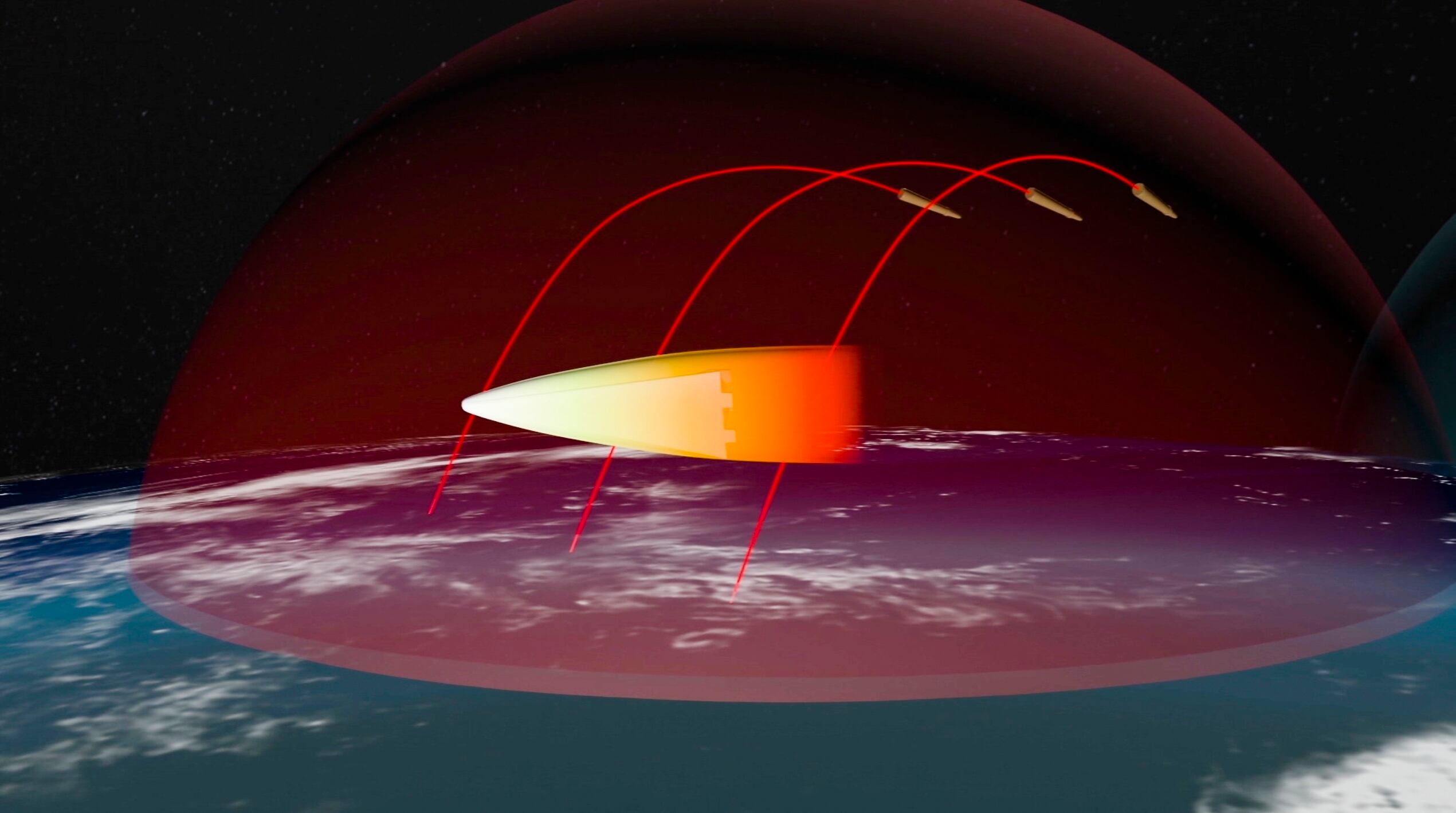 A computer simulation shows the Avangard hypersonic vehicle maneuvering to bypass missile defenses en route to target. (RU-RTR Russian Television via AP)