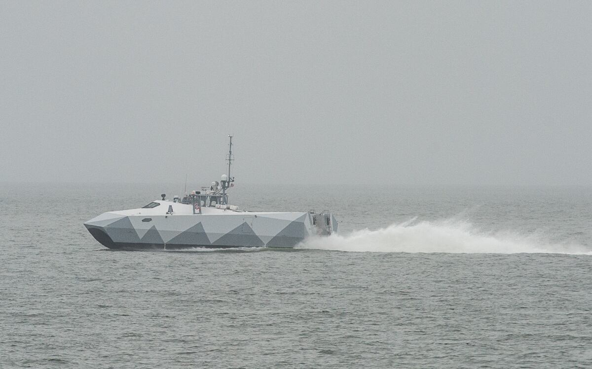 Norfolk, Va. (April 2, 2017) The Navy's cool looking M80 Stiletto test-bed ship speeds through the Chesapeake Bay towards Hampton Roads on April 3 . Capable of speeds of up to 60 knots, the craft was designed to take Navy SEALs to battle, but has ended up testing the coolest new toys the Navy is considering buying. The ship is preparing for a trip to Washington, D.C. for the annual Sea, Air and Space Symposium that starts April 11. (photo by Mark D. Faram/staff)GUANTANAMO BAY, Cuba (June 11, 2008) Stiletto sits pier side during a refueling before conducting counter-illicit trafficking operations in the Caribbean. (photo by MC2 Nat Moger/Navy)130115-N-MF949-570