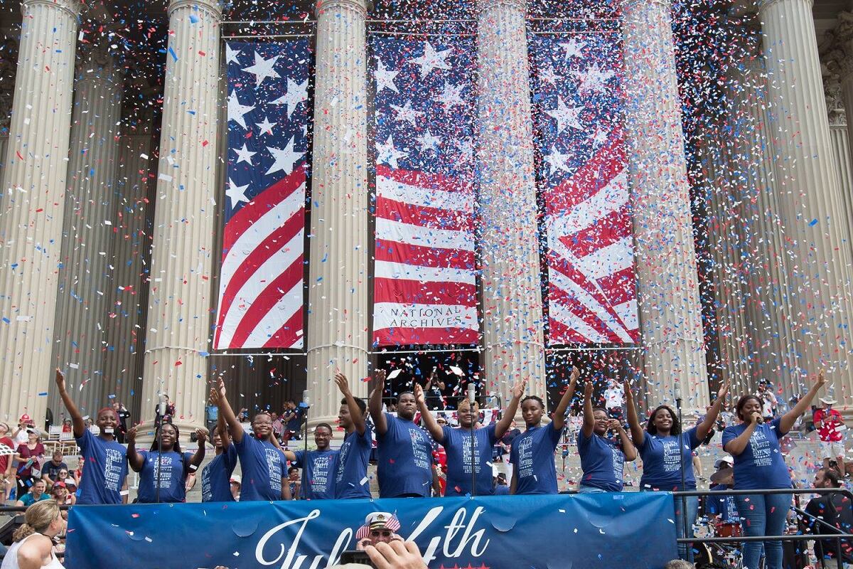 President Donald J. Trump and First Lady Melania Trump participate in a Fourth of July picnic with military families at the White House | July 4, 2018 (Official White House Photo/Andrea Hanks)President Donald J. Trump and First Lady Melania Trump watch Fourth of July fireworks at the White House | July 4, 2018 (Official White House Photo/Shealah Craighead)Members of the U.S. Navy Band Sea Chanters rehearse for the live broadcast of the annual Fourth of July celebration on the South Lawn of the White House. (U.S. Navy/Musician 1st Class David Aspinwall)Vice Adm. Richard Brown, commander, Naval Surface Force, U.S. Pacific Fleet serves as grand marshal for the 70th Annual Independence Day Parade. (U.S. Navy/Mass Communication Specialist 2nd Class Nancy C. diBenedetto)American Legion honor guard members perform in the Historic Smithville Fourth of July parade in Smithville, N.J., July 4, 2018. (U.S. Air National Guard/Master Sgt. Matt Hecht)Lt. Lauren McKinley, a reservist with the US Navy (right) and Capt. Carrie Lauderdale (left) enjoy a dazzling fireworks display at Norfolk's Town Point Park. The fireworks display was part of the City of Norfolk's 36th Annual Great American Picnic at Town Point Park, which honors the country's 242nd Birthday. (U.S. Navy/Civilian Public Affairs Officer Max Lonzanida)A boarding team from Coast Guard Station Boston patrols Boston Harbor during Independence Day celebrations, July 4, 2018. (U.S. Coast Guard/Petty Officer 2nd Class Lara Davis)Performers at the July 4 at the National Archives 2018 celebration. (U.S. National Archives)Performers at the July 4 at the National Archives 2018 celebration. (U.S. National Archives)Performers at the July 4 at the National Archives 2018 celebration. (U.S. National Archives)Fireworks at the U.S. Embassy in Berlin, Germany for the 4th of July 2018. (U.S. Embassy in Berlin)The U.S. Embassy in Uruguay celebrates July 4, 2018. (U.S. Embassy in Uruguay)The U.S. Embassy in Tallinn, Estonia celebrates July 4, 2018. (U.S. Embassy in Estonia)Celebrants at the U.S. Embassy in Estonia take 'as American as apple pie' seriously. (U.S. Embassy in Estonia)