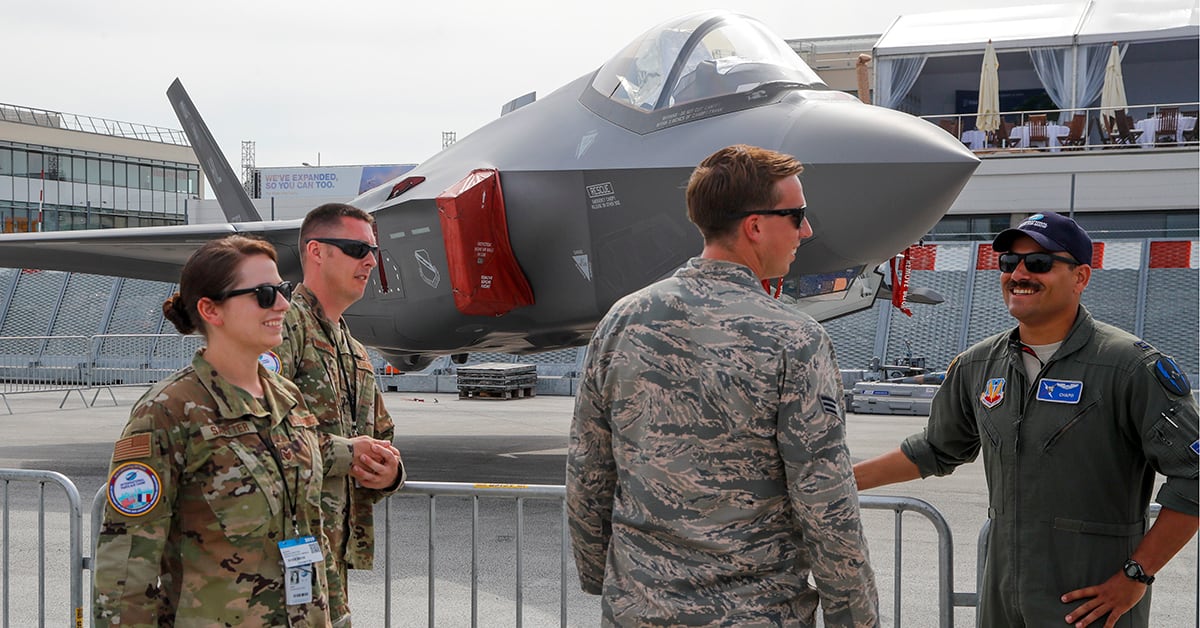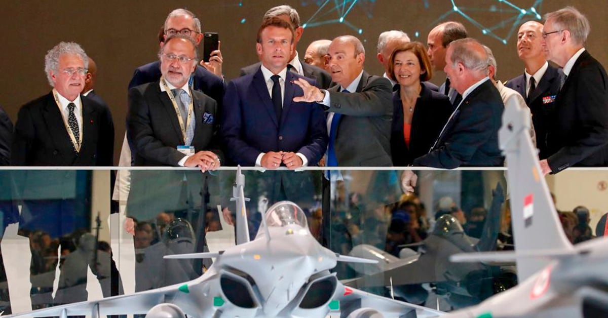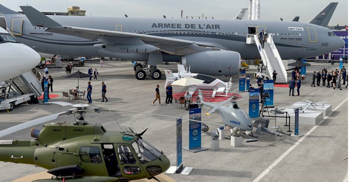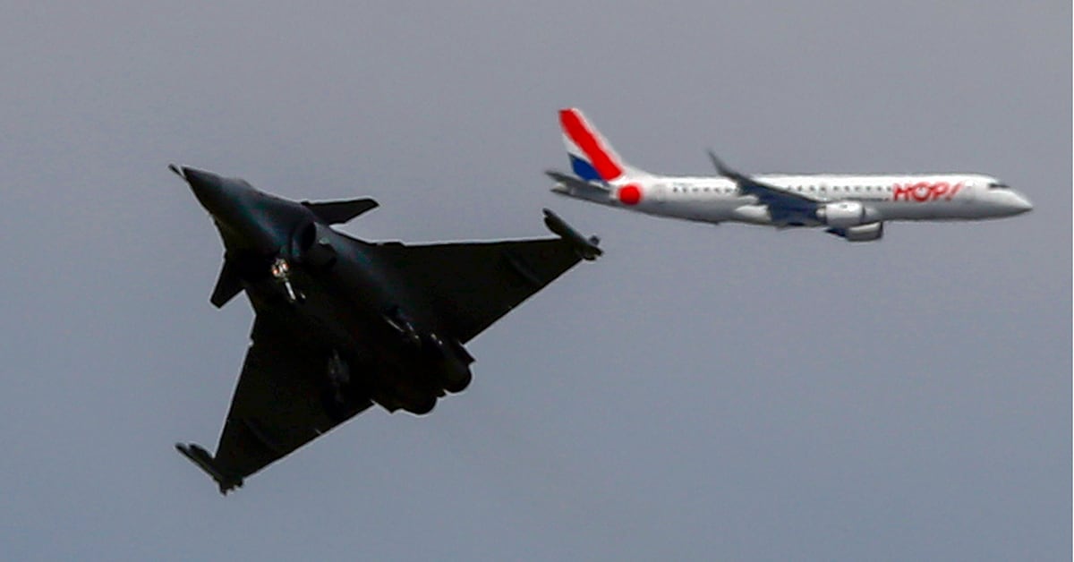 A Dassault Rafale fighter jet performs a demonstration flight as a passenger aircraft flies in the background at the Paris Air Show in Le Bourget, northeast of Paris, France, on June 18, 2019. (Francois Mori/AP)Visitors attend the unveiling ceremony of the full-scale jet fighter model of the the Franco-German-Spanish Future Combat Air System at the Paris Air Show on June 17, 2019. (Eric Piermont/AFP via Getty Images)French President Emmanuel Macron, center, listens to Eric Trappier, chairman and CEO of Dassault Aviation, as he stands next to French MP Olivier Dassault, second from left, and French Armed Forces Minister Florence Parly at the Paris Air Show on June 17, 2019. (Benoit Tessier/AFP via Getty Images)A French Army Eurocopter Tiger helicopter flies during the inauguration of the 53rd Paris Air Show at Le Bourget Airport near Paris on June 17, 2019. (Benoit Tessier/AFP via Getty Images)Gymnasts perform at the Russian Helicopters static display of the Ansat helo during the Paris Air Show on June 19, 2019. (Eric Piermont/AFP via Getty Images)A full-scale model of a future Turkish fighter is presented on the first day of the Paris Air Show. (Eric Piermont/AFP via Getty Images)A Dassault Rafale fighter jet performs a demonstration flight at the Paris Air Show on June 17, 2019. (Michel Euler/AP)Airbus has a static display at the 2019 Paris Air Show at Le Bourget Airport. (Eric Piermont/AFP via Getty Images)A Pakistani JF-17 Thunder performs its flying display at the Paris Air Show on June 17, 2019. (Eric Piermont/AFP via Getty Images)Jets from the French Patrouille de France fly during the inauguration of the 53rd Paris Air Show on June 17, 2019. (Benoit Tessier/AFP via Getty Images)A prototype of an electric unmanned air taxi is displayed at the Paris Air Show on June 18, 2019. Airbus has developed a prototype, the Vahana, an autonomous, self-piloted aircraft. (Michel Euler/AP)An Embraer KC-390 transport plane of the Brazilian Army rolls on the tarmac at the Paris Air Show on June 18, 2019. (Michel Euler/AP)U.S Air Force crew members gather next to an F-35 Lightning II on display at the Paris Air Show. (Michel Euler/AP)Visitors walk around at the Paris Air Show in Le Bourget, northeast of Paris, France, on June 18, 2019. The world's aviation elite gathered at the event as safety concerns lingered after two crashes of the Boeing 737 Max. (Francois Mori/AP)The Fouga Magister, a 1950s French two-seat jet trainer, performs a demonstration flight at the Paris Air Show on June 18, 2019. (Francois Mori/AP)