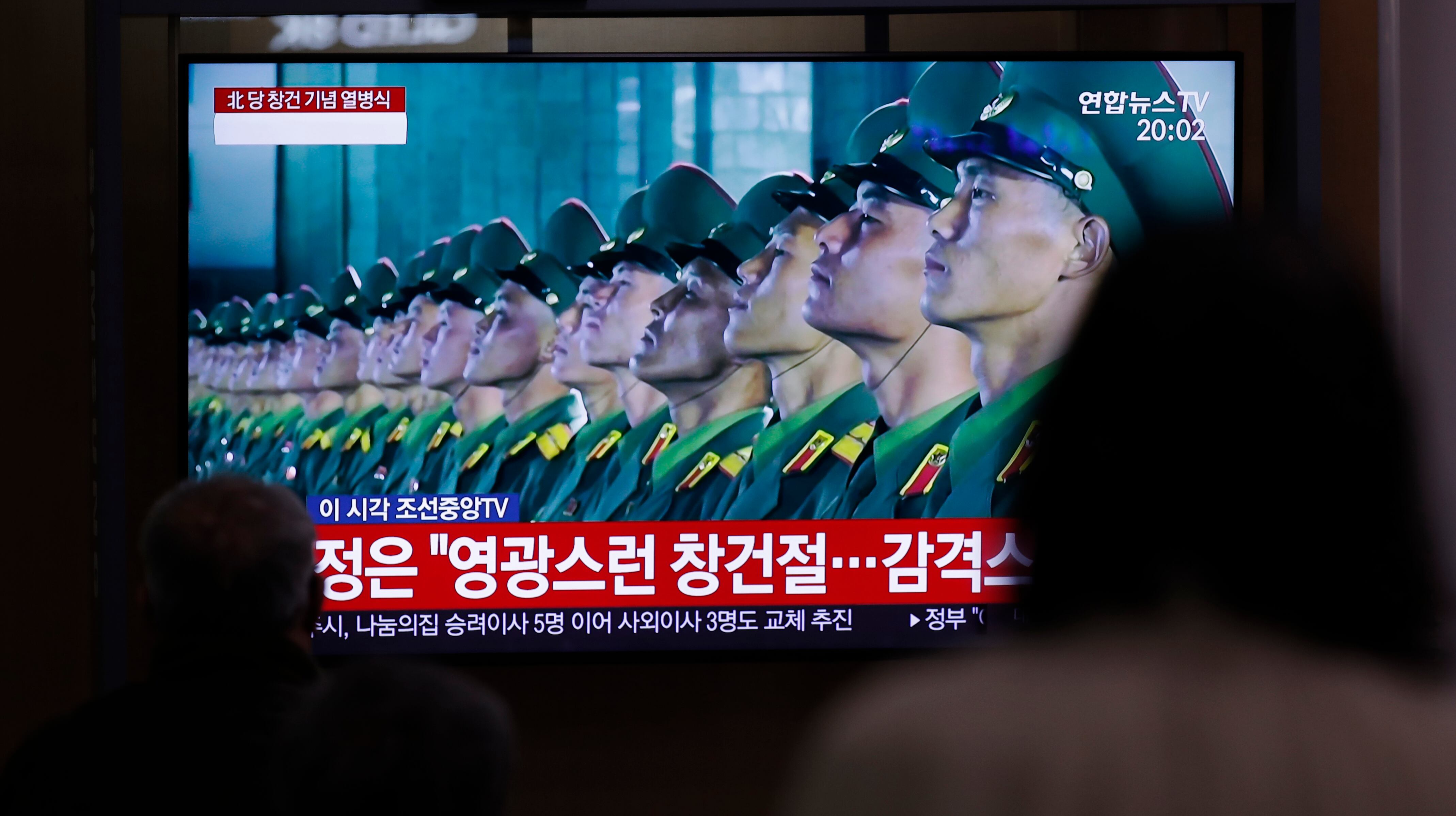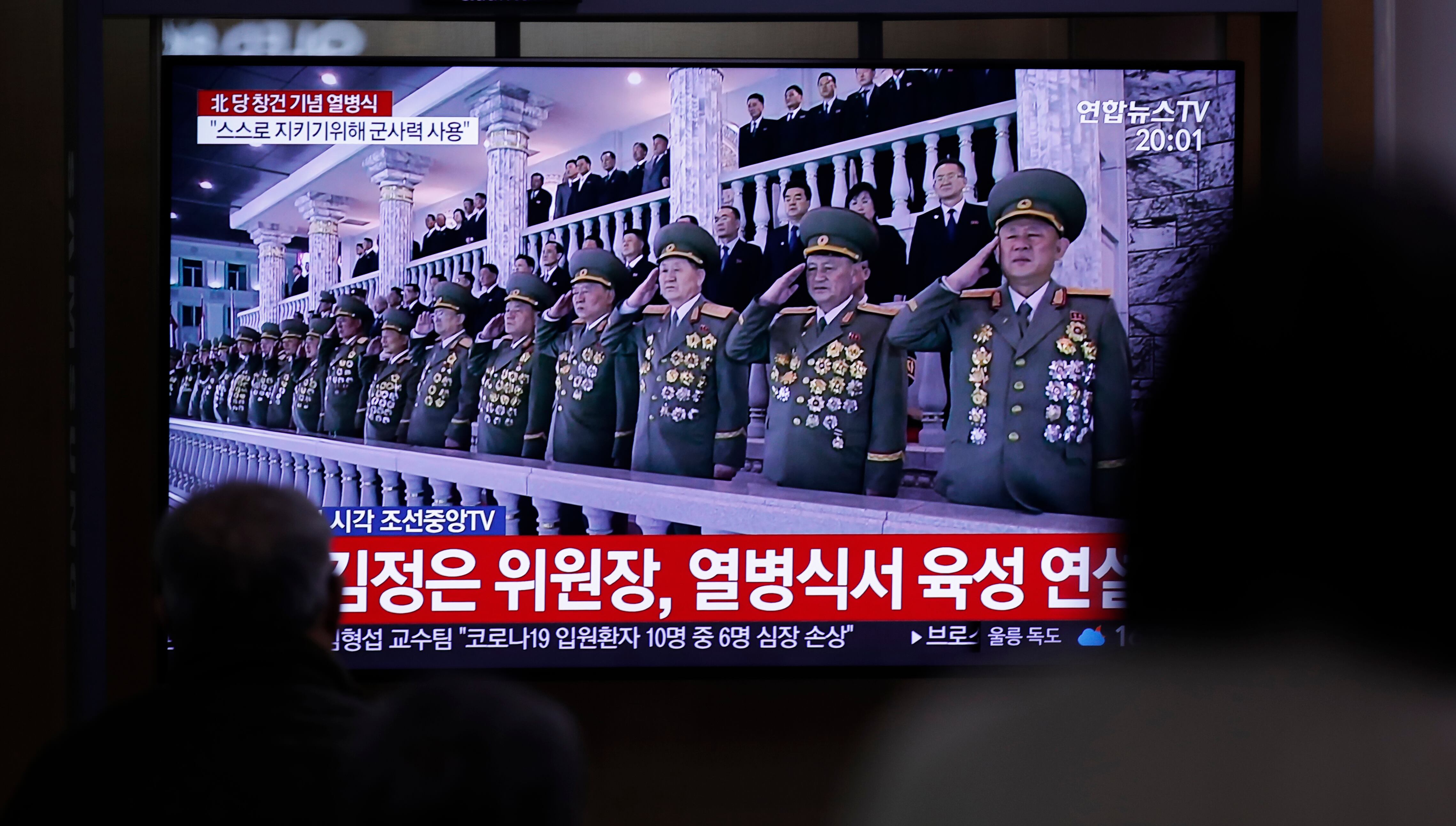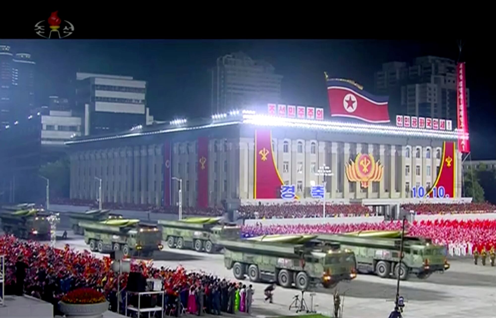 This image, made from video broadcasted by North Korea's KRT, shows a military parade with what appears to be a new intercontinental ballistic missile at the Kim Il Sung Square in Pyongyang on Oct. 10, 2020. (KRT via AP)In this image made from video broadcasted by North Korea's KRT on Oct. 10, 2020, a military parade is held during a ceremony to celebrate the 75th anniversary of the country’s ruling party in Pyongyang. (KRT via AP)North Korea held a military parade Oct. 10, 2020. (KRT via AP)This shows was appears to be a possible new solid-fuel missile. (KRT via AP)North Korean leader Kim Jong Un delivers a speech during a ceremony to mark to celebrate the 75th anniversary of the country’s ruling party in Pyongyang. (KRT via AP)People wearing face masks watch a TV screen during a news program reporting about the North Korean ceremony (Lee Jin-man/AP)North Korea celebrating the ruling Workers' party. A part of letters read: "North Korean leader Kim Jong Un speaks at a military parade." (Lee Jin-man/AP)A man watches a TV screen during a news program reporting about the North Korean military parade. (Lee Jin-man/AP)North Korea held a massive military parade and public rally to celebrate the 75th anniversary of the country’s ruling party. (KRT via AP)
