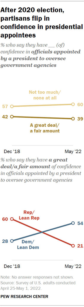 Overall confidence in officials appointed by a president also decreased since 2018.