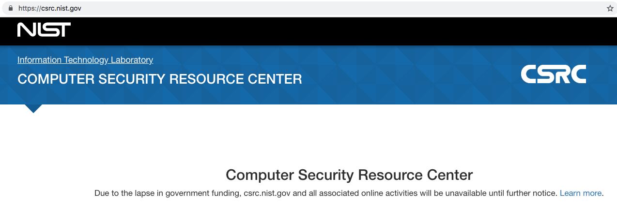 The rationale behind the decision by the National Institute of Standards and Technology to take down its website was that workers could no longer update their resources and therefore declared current because nearly 85 percent of NIST staff members furloughed. As a result, when anyone tried to access information security documents from the NIST website during the shutdown, here’s what they saw:
