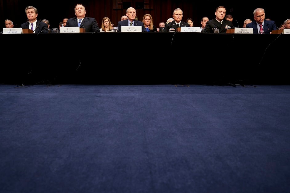 Coats and other top intelligence officials were appearing at a Senate intelligence committee hearing Tuesday to discuss their annual assessment of global threats facing the United States.