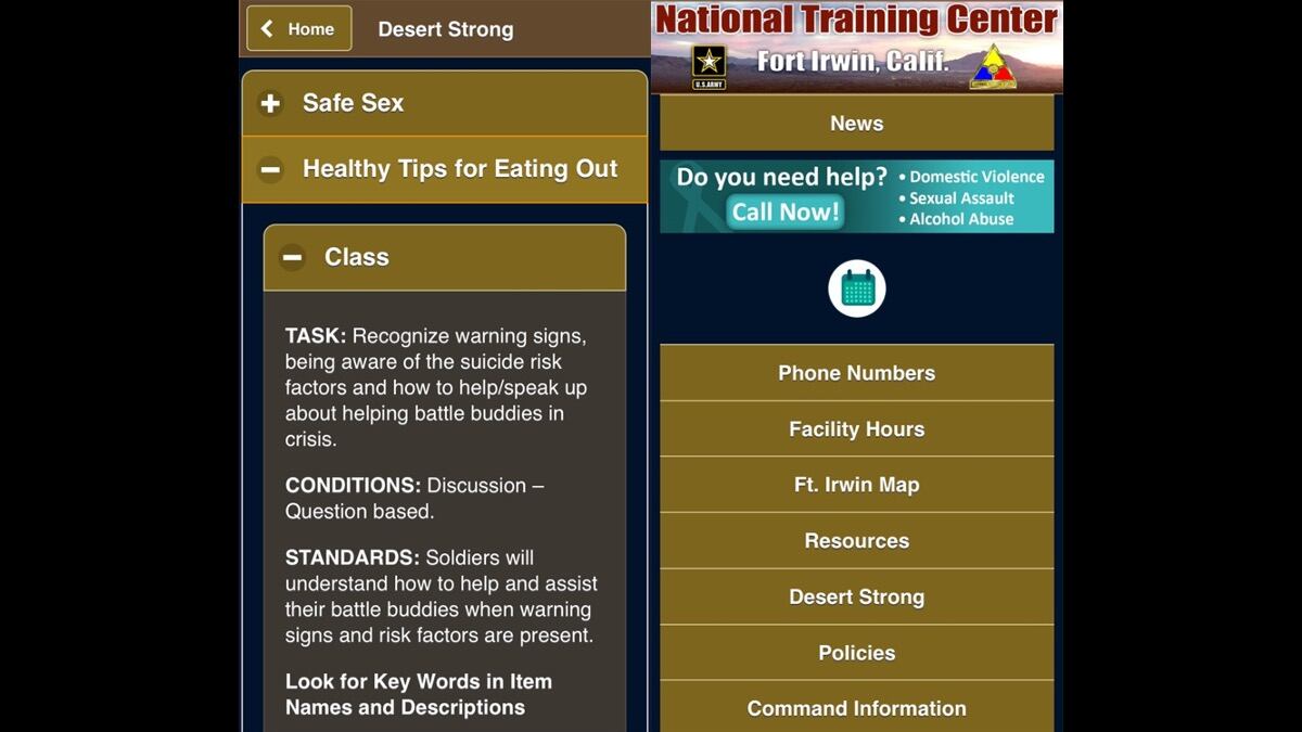 According to the app’s description in the Apple store, which was archived by App Aware’s API scraper, the NTC app advertised providing “the latest Fort Irwin news, information and social media updates” to users. It also included “quick-click buttons for calling post facilities, a community calendar and a map to popular establishments and much more.”
