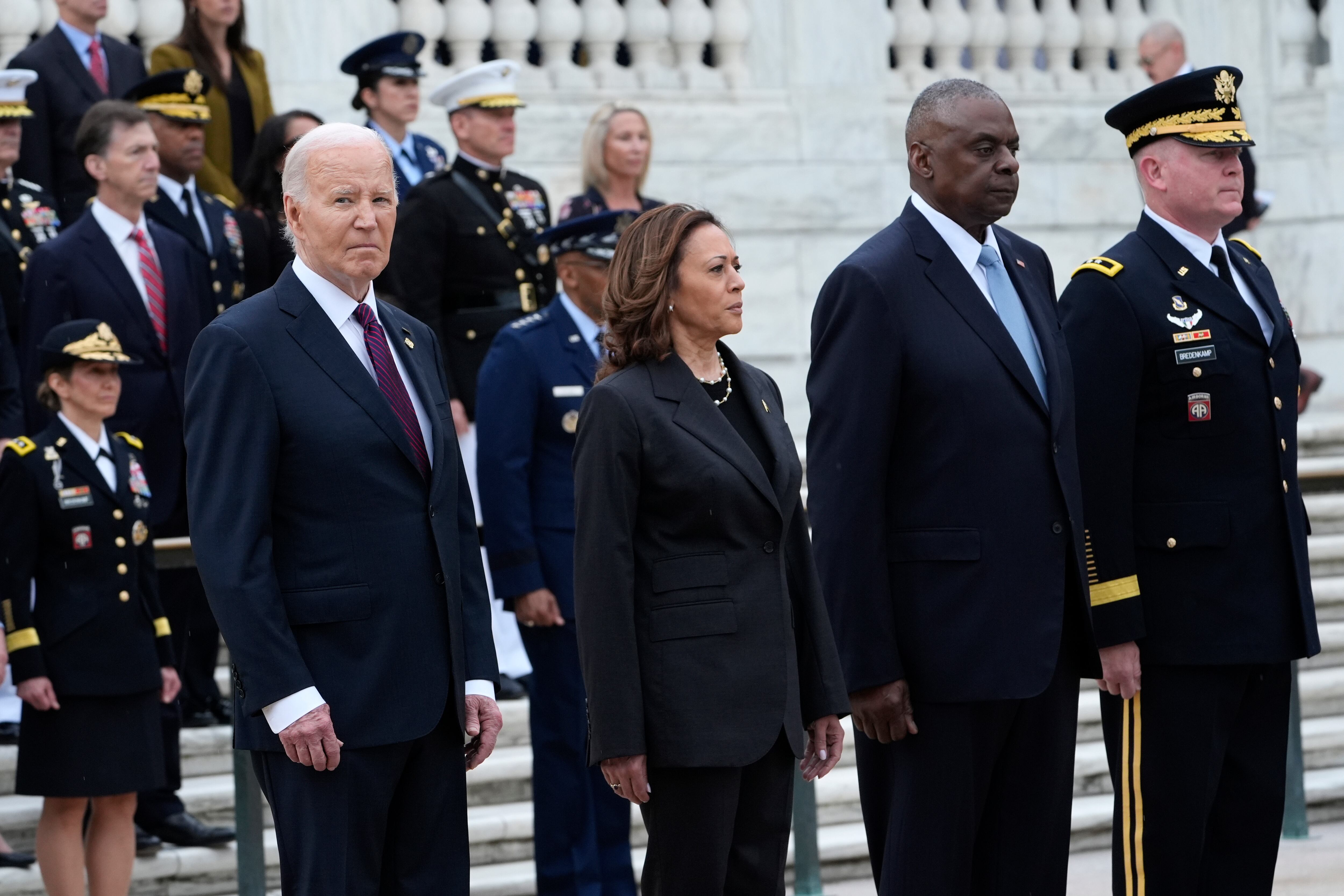 Before the ceremony began, Biden, joined by Vice President Kamala Harris and Defense Secretary Lloyd Austin, placed a wreath at the Tomb of the Unknown Soldier.