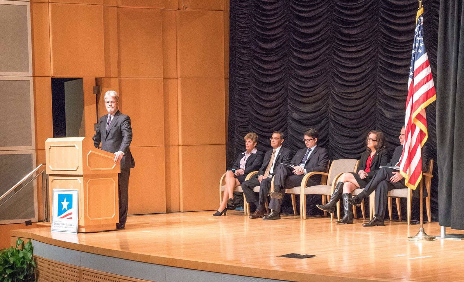 The ceremony highlighted achievements in combating fraud, waste and abuse in government programs and operations. Michael E. Horowitz, CIGIE chair, and Allison Lerner, CIGIE vice chair, presented the peer panel-selected citations.