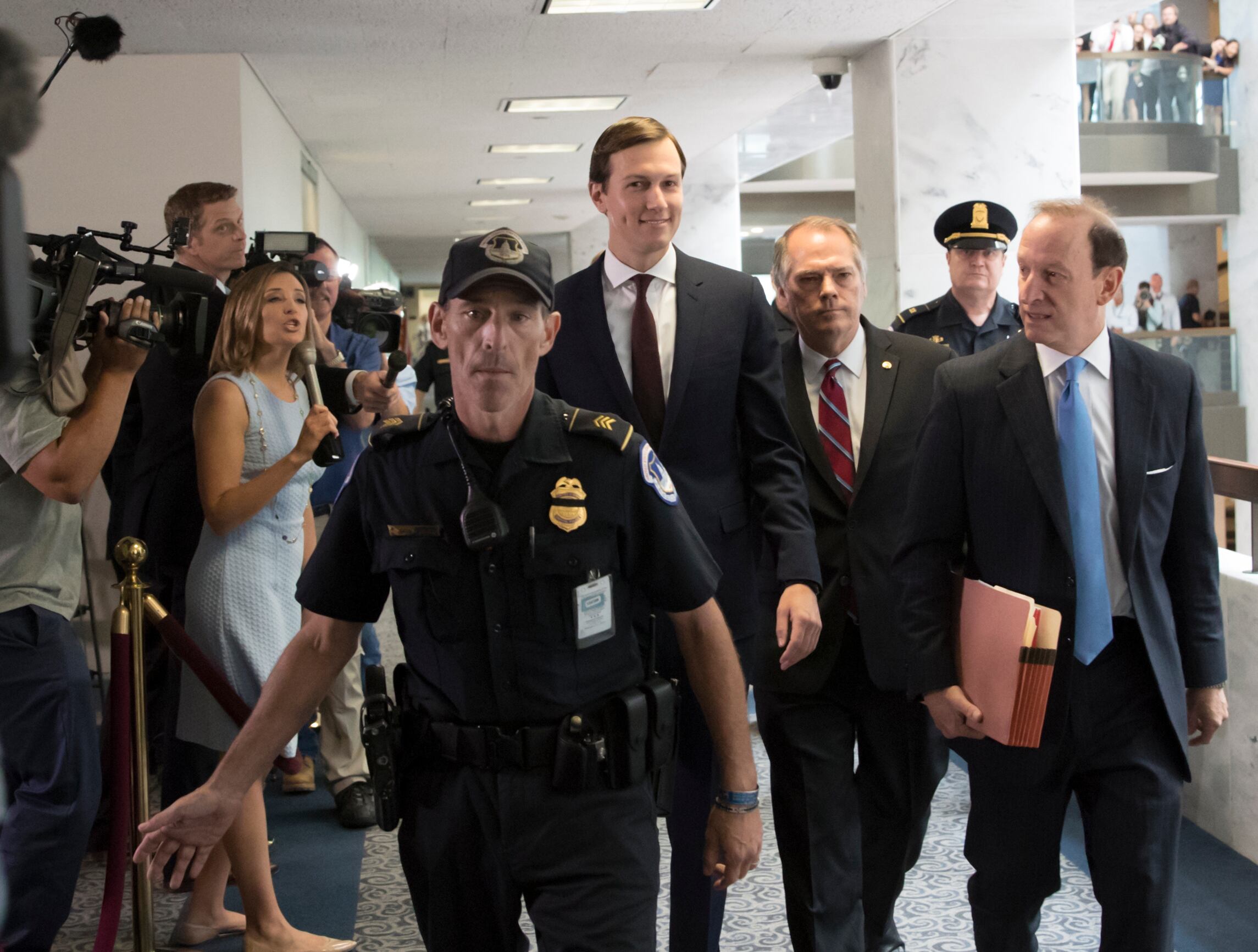 Kushner left without taking questions. In an 11-page statement, released hours before the Capitol session, he detailed four contacts with Russians during Trump’s campaign and transition. It aimed to explain inconsistencies and omissions in a security clearance form that have invited public scrutiny.