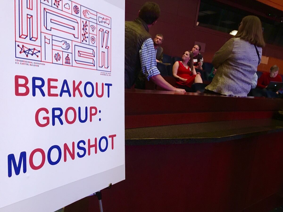 After opening remarks, attendees had the option to participate in five different breakout groups: Public Engagement and Social Media, Legislative Data and Process, Moonshot Ideas, Hearings and Press Briefings, and Constituent Services. The groups brainstormed ideas for improving the legislative branch, then presented the ideas onstage at the end of the hackathon.