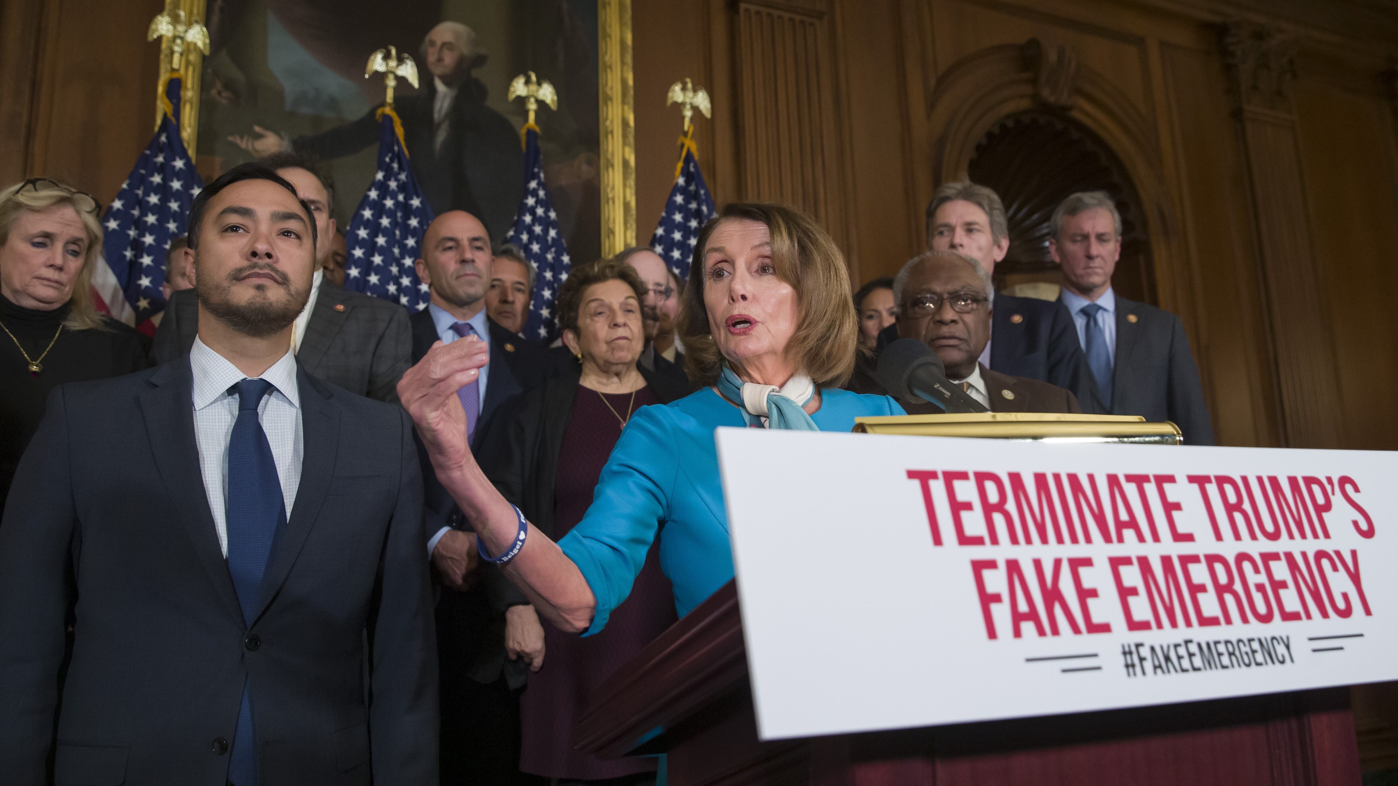 "The president does not get to override Congress in a raucous temper tantrum over his inability to broker a deal" with lawmakers for more money, said Rep. Hank Johnson, D-Ga. Rep. Joaquin Castro, D-Texas, sponsor of the one-sentence measure blocking the declaration, called Trump's move "constitutional vandalism."