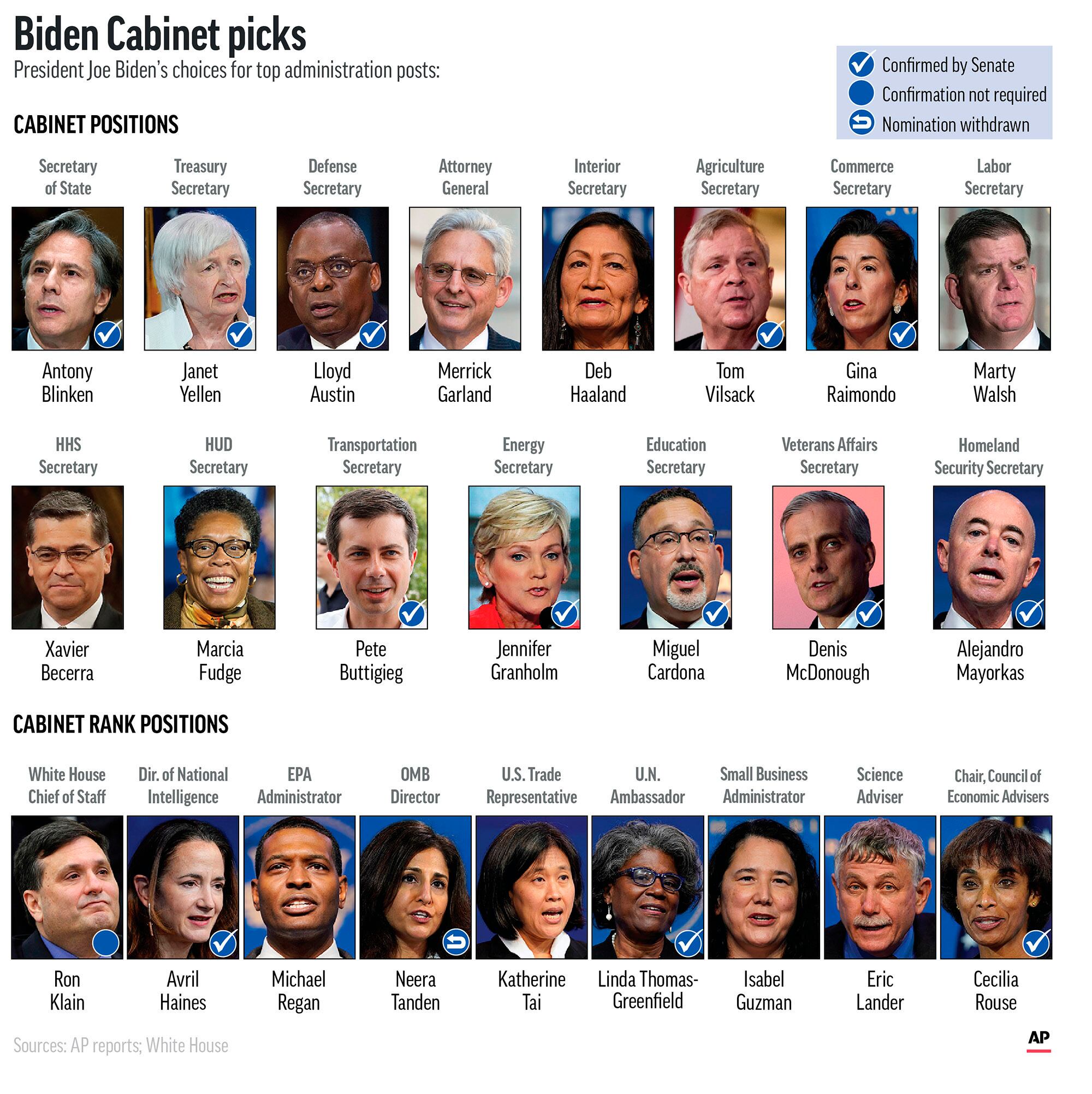 On Tuesday, Biden’s Cabinet was thrown into further uncertainty when his nominee to lead the White House budget office, Neera Tanden, withdrew from consideration after her nomination faced opposition from key senators on both sides of the aisle.