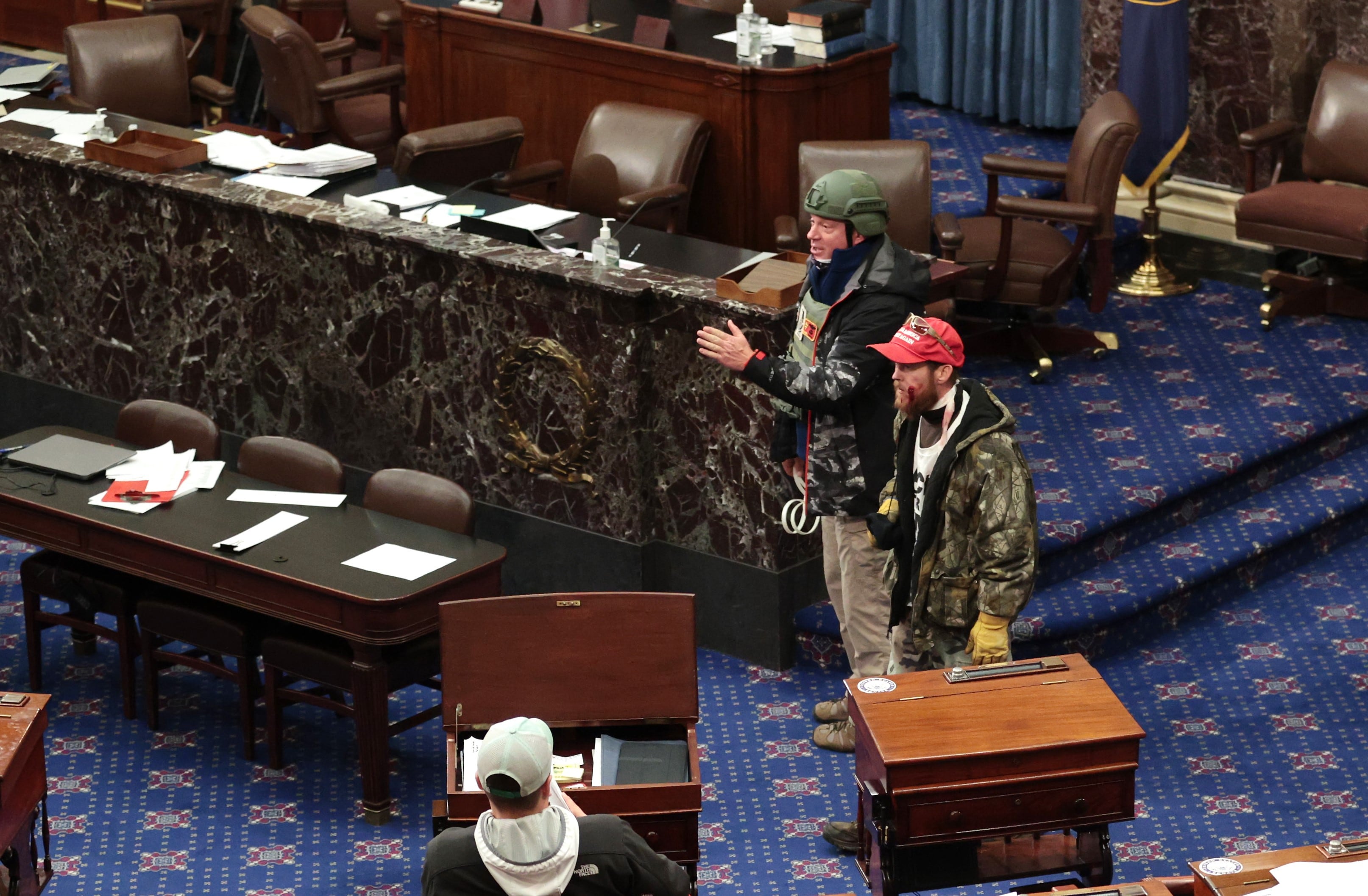 Brock was identified by the New Yorker as one of the individuals photographed in the Senate chamber. He was arrested in Texas four days after the Capitol breach.