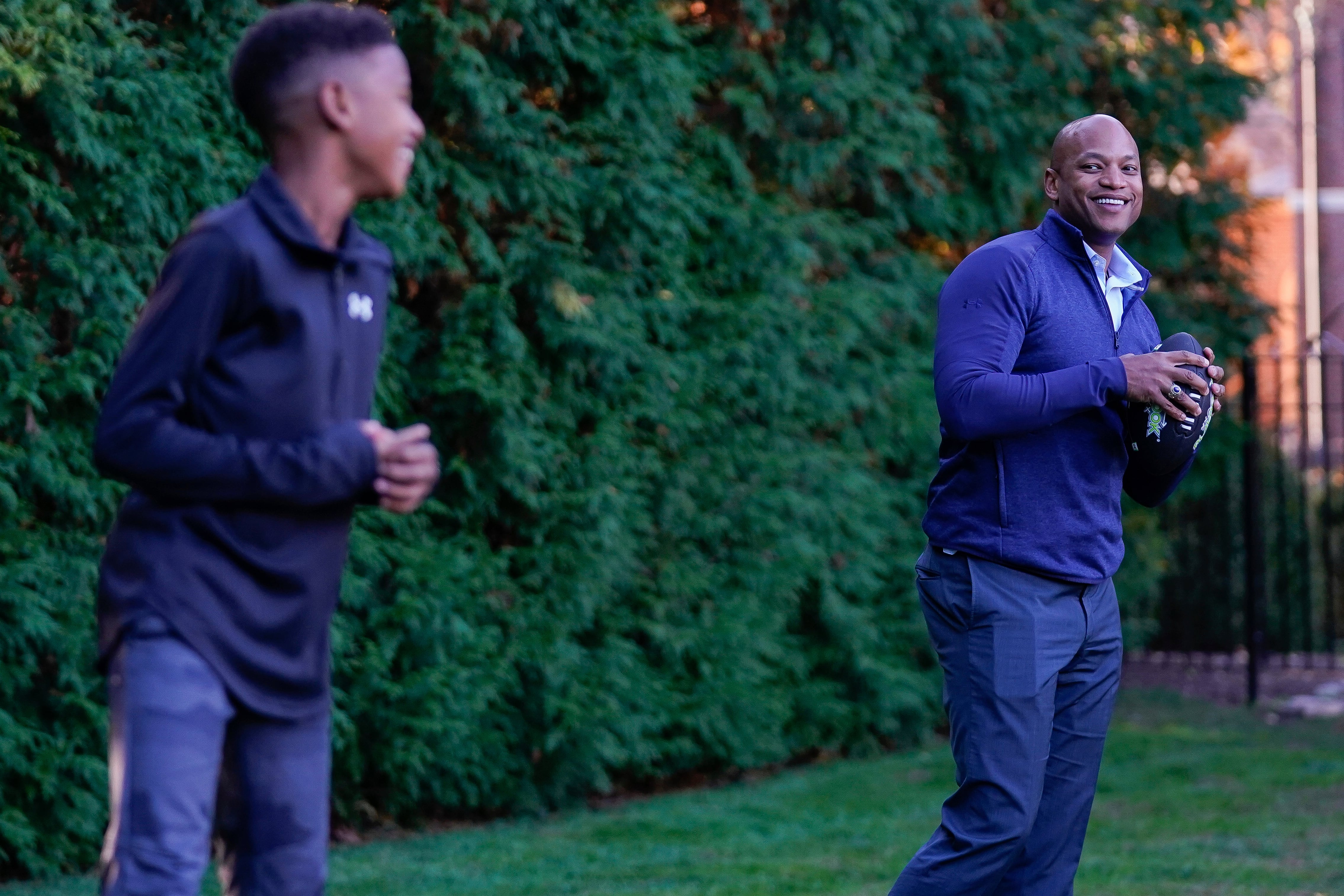Moore, 44, played football for Johns Hopkins University in Baltimore. He is 6 feet 3 inches tall. He’s pulling for Maryland, which narrowly defeated West Virginia in the tournament’s first round.