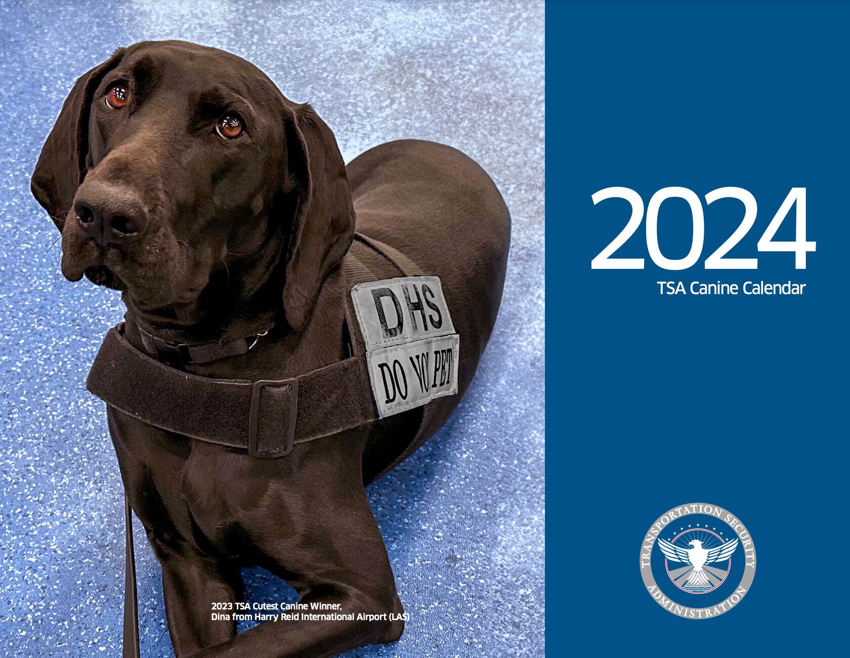 If it wasn’t obvious, Duke-LeDuc is a dog — one of 1,000 that work for TSA nationwide as explosives detection canines. The chocolate brown, golden-eyed labrador retriever is also among 15 specially selected this year to be cover models for the agency’s 2024 calendar, an annual tradition that highlights the often behind-the-scenes work of federal working dogs and the civil servants who handle them.