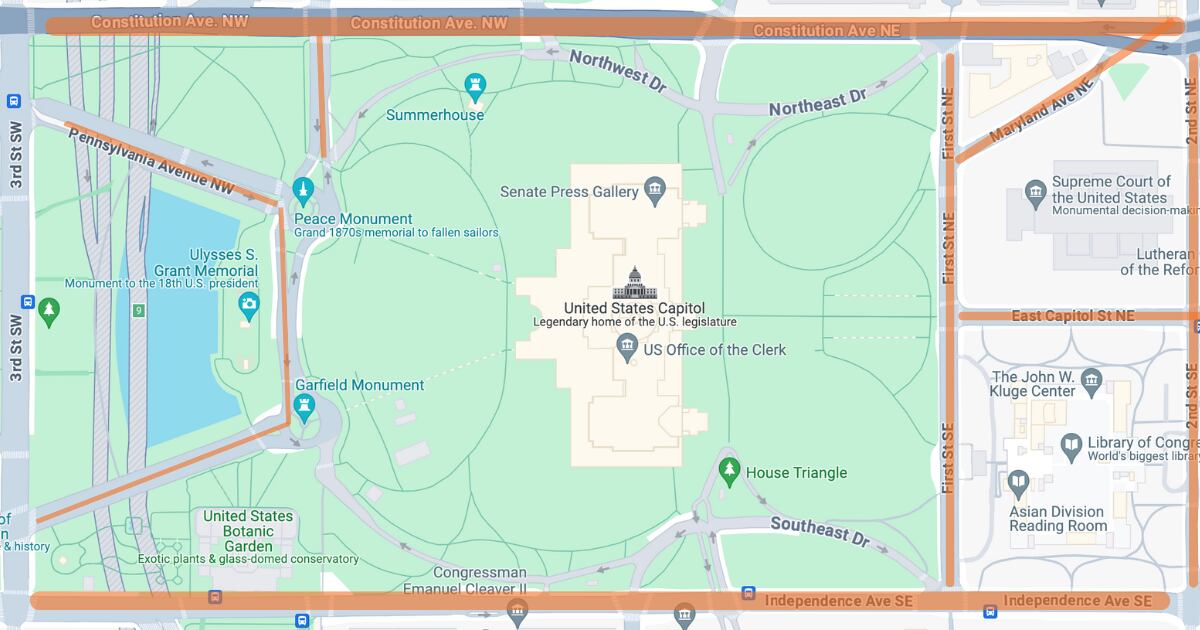 - New Jersey Avenue between C Street, NW, and Constitution Avenue, NW