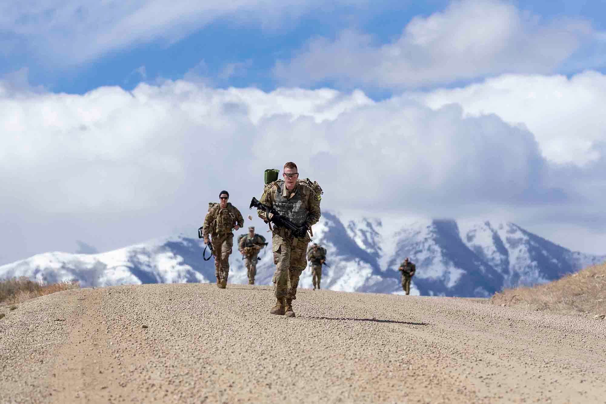 Soldiers endure a 6-mile ruck march back to garrison during the Utah National Guard Best Warrior Competition at Camp Williams, Utah, March 23, 2021. (Spc. Bryton Bluth/Army National Guard)Sailors heave in line as the Arleigh Burke-class guided-missile destroyer USS Mitscher (DDG 57) prepares to depart Souda Bay, Greece, March 24, 2021. (MC2 Kaleb J. Sarten/Navy)Marines assigned to Special Purpose Marine Air-Ground Task Force-Crisis Response-Central Command breach a door during a demolition range in Jordan, March 6, 2021. (Lance Cpl. Benjamin Aulick/Marine Corps)Airman 1st Class Tyrone Taylor and Airman Destiny Millerd, 335th Training Squadron freestyle drill team members, perform during the 81st Training Group drill down at Keesler Air Force Base, Miss., March 19, 2021. (Kemberly Groue/Air Force)1st Lt. Savannah Murray conducts the Turkish get-ups for max repetition in 10 minutes as part of the Bronco Fitness Challenge at F-Quad, Schofield Barracks, Hawaii on March 24, 2021. (1st Lt. Angelo Mejia/Army)Aviation Structural Mechanic Airman Monica Smith directs a test of an alert helicopter on the flight deck aboard the Nimitz-class aircraft carrier USS Dwight D. Eisenhower (CVN 69), in the Mediterranean Sea, March 19, 2021. (Mass Communication Specialist Seaman Trent P. Hawkins/Navy)U.S. Marines load a CH-53E Super Stallion during Castaway 21.1 at Ie Shima, Okinawa, Japan, March 16, 2021. T(Lance Cpl. Scott Aubuchon/Marine Corps)An 8th Fighter Wing F-16 Fighting Falcon takes off during a routine training event at Kunsan Air Base, Republic of Korea, March 24, 2021. (Tech. Sgt. Kristin S. High/Air Force)A B-1B Lancer prepares for take-off at a Red Flag exercise at Nellis Air Force Base, Nev., March 8 2021. (Staff Sgt. Hannah Malone/Air Force)Soldiers with 2nd Battalion, 3rd Field Artillery Regiment, 1st Armored Brigade Combat Team, 1st Armored Division, shoot a M109 Paladin as part of a battalion-level artillery qualification exercise, March 8, 2021, at the Dona Ana Range Complex, N.M. (Pfc. Luis Santiago/Army)