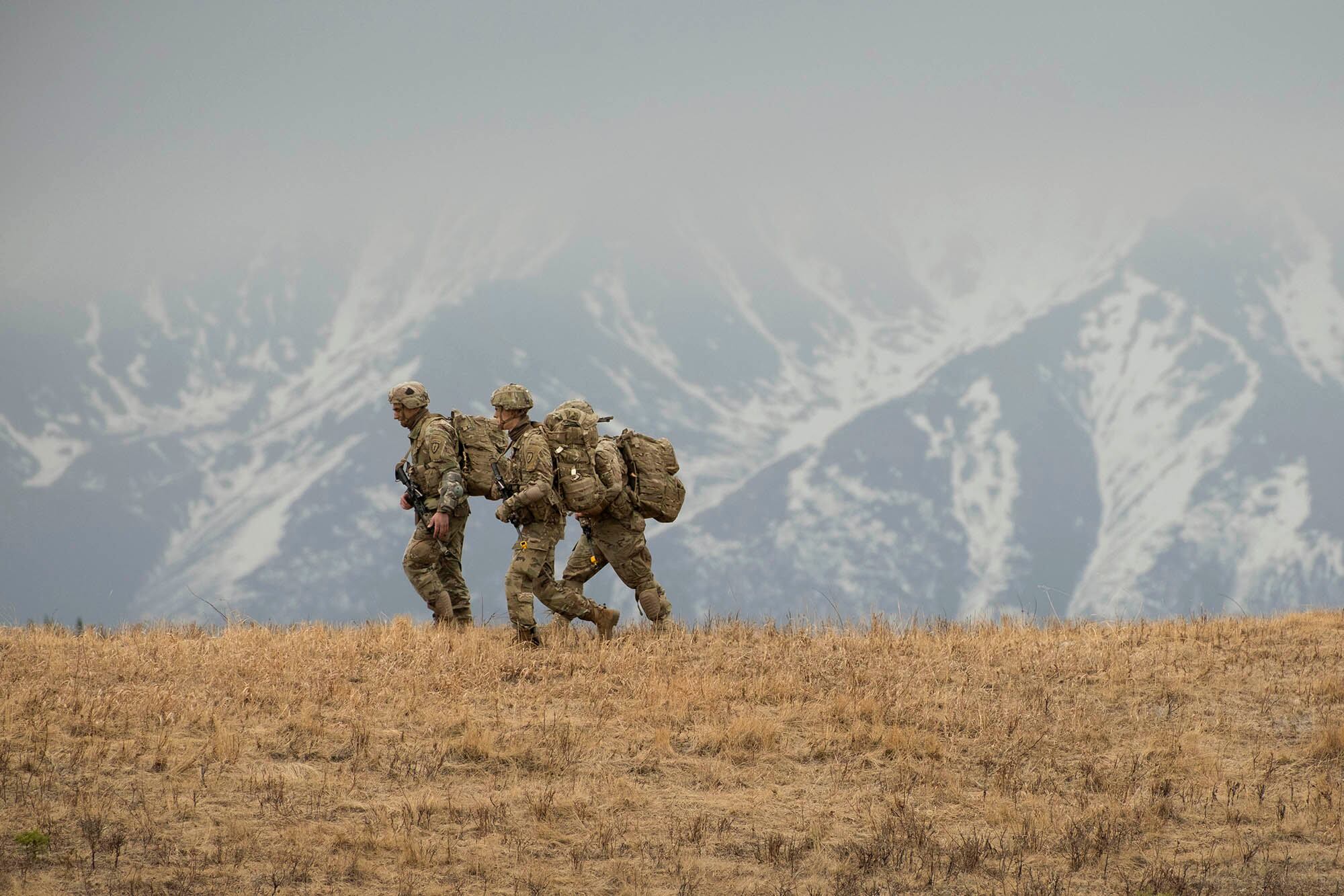 The 4th Brigade Combat Team (Airborne), 25th Infantry Division, U.S. Army Alaska, conduct a Joint Forcible Entry Operation into Allen Army Airfield during exercise Northern Edge 21. (Benjamin Wilson/Army)