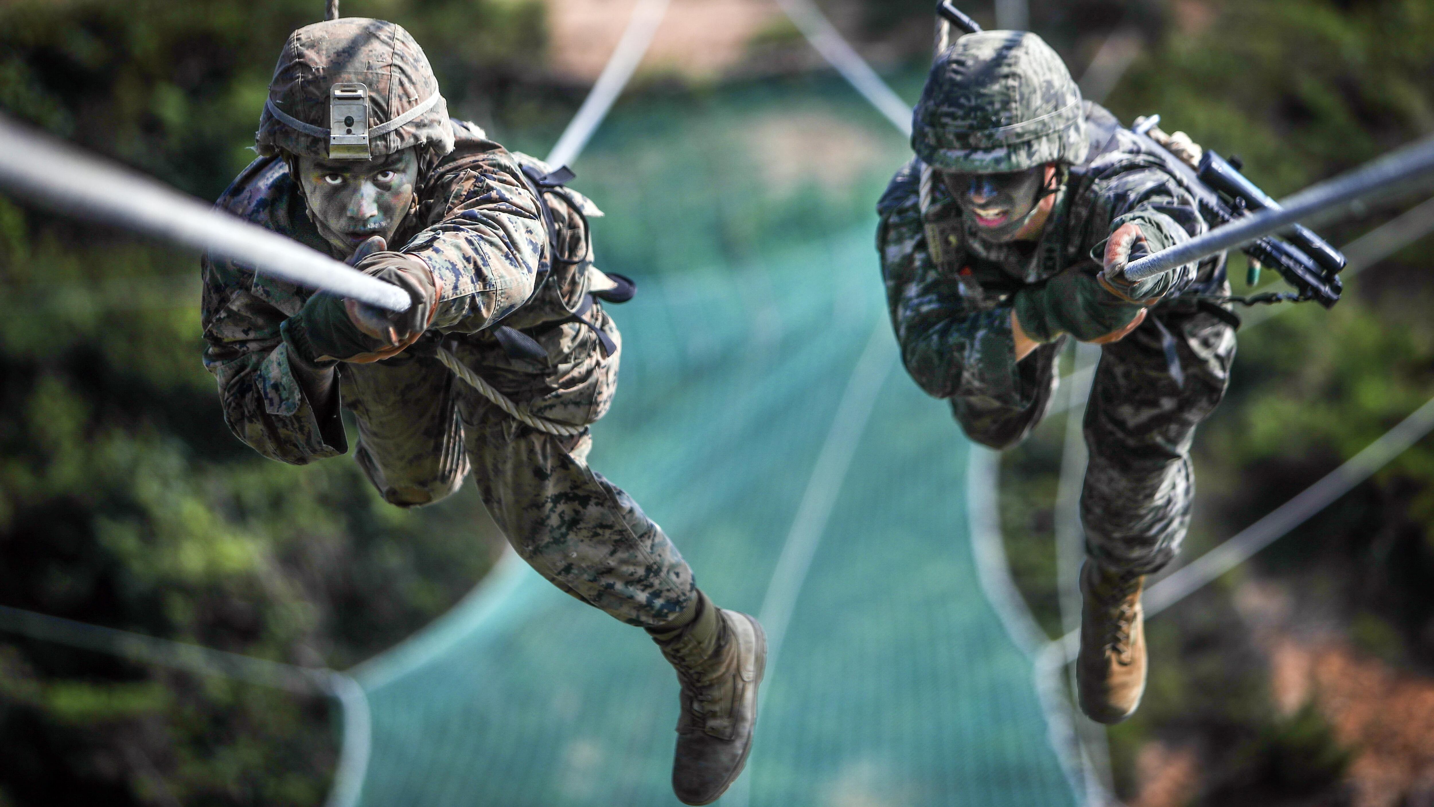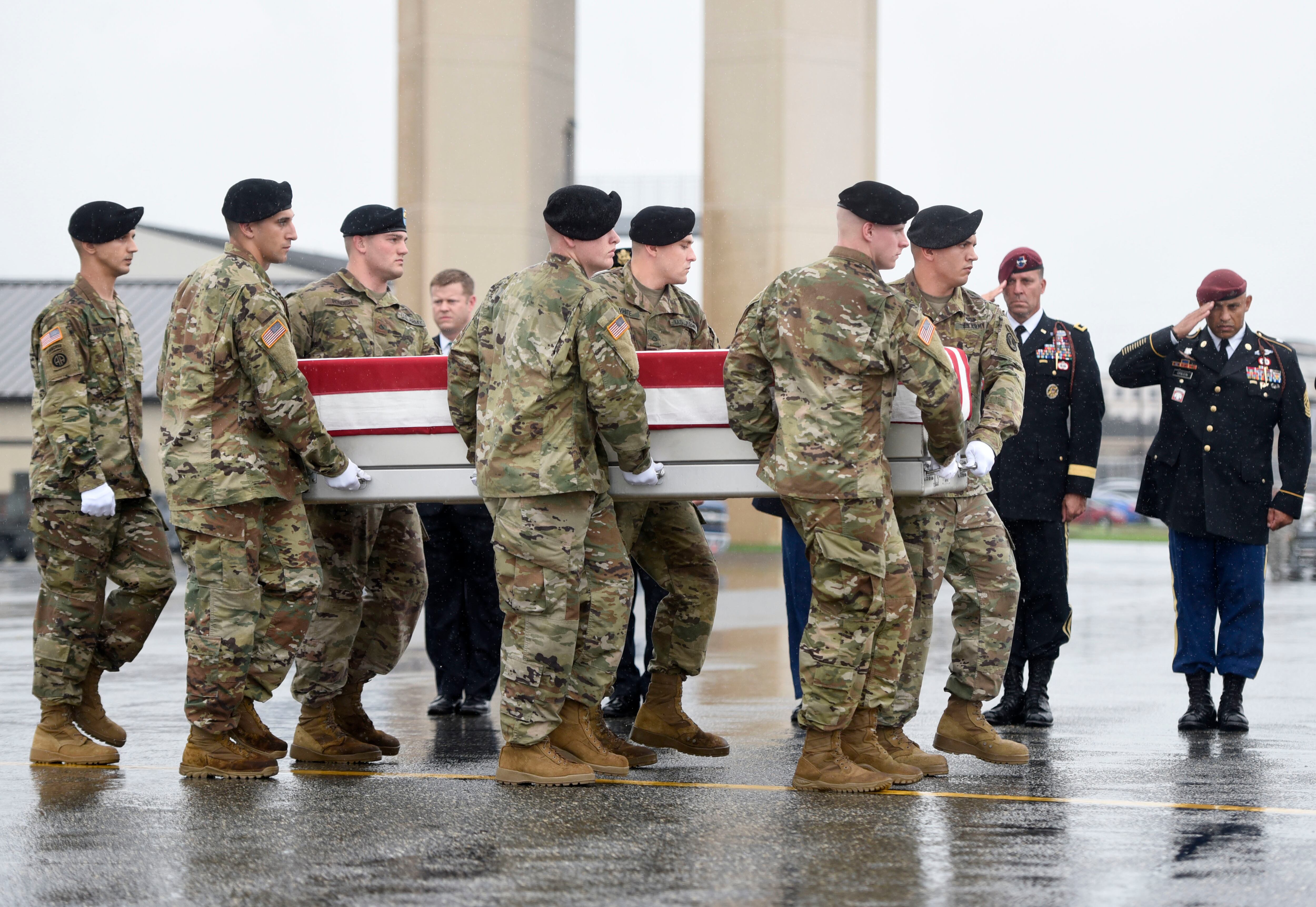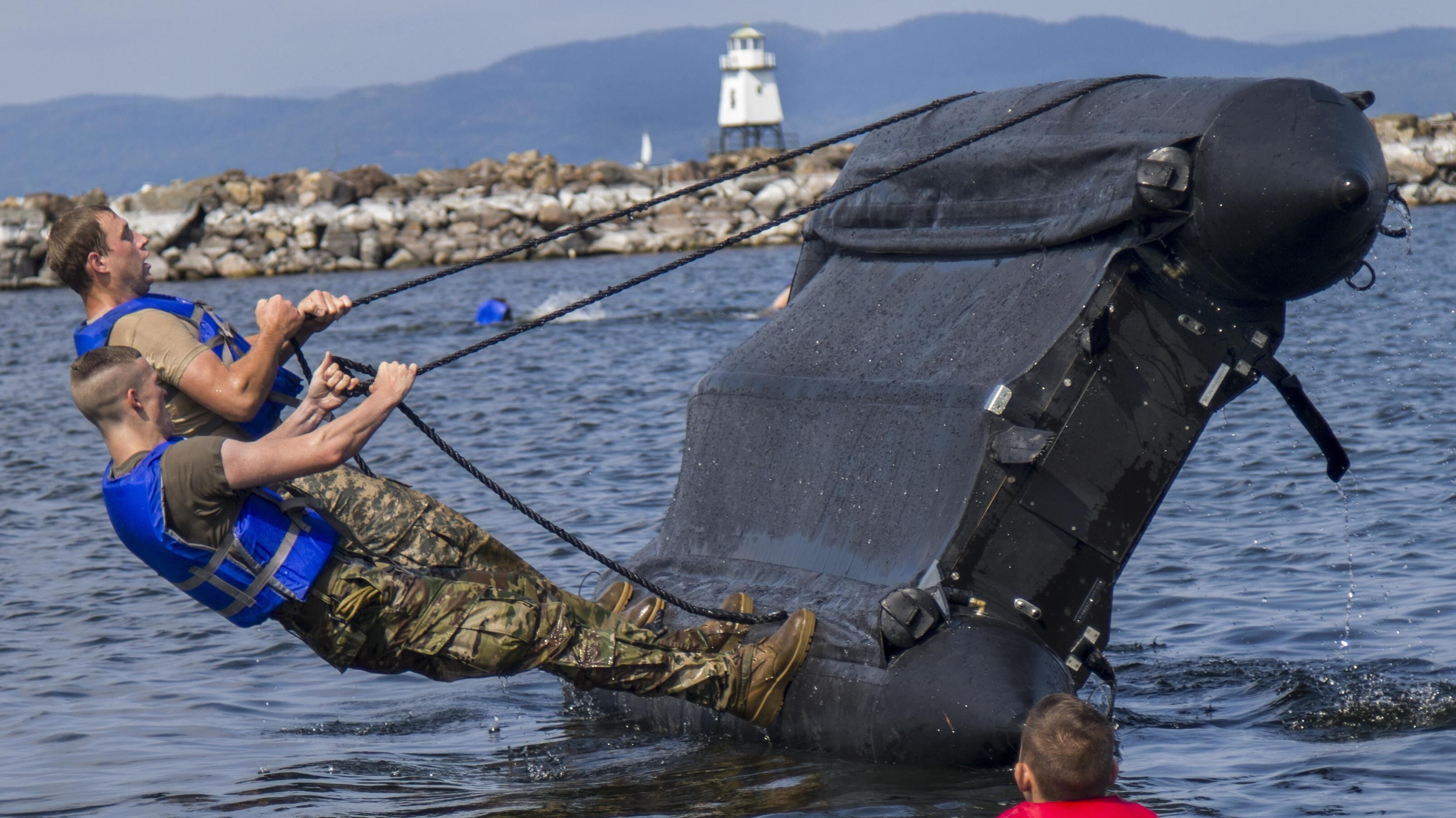 1st Battalion, 143rd Infantry Regiment 173rd Airborne Brigade conducts an airfield seizure in Turzii, Romania during Exercise Saber Guardian 17. (Sgt. David Vermilyea/Army)Marine Corps Cpl. Joshua B. Duarte, left, and a South Korean marine cross a rope bridge obstacle during Korean Marine Exchange Program 17-14 in South Korea, Aug. 9, 2017. (Cpl. Aaron S. Patterson/Marine Corps)An Army carry team moves a transfer case containing the remains of Sgt. Allen Levi Stigler Jr. at Dover Air Force Base, Del., Tuesday, Aug. 15, 2017. According to the Department of Defense, Stigler, 22, of Arlington, Texas, died Aug. 13, 2017, of wounds sustained while engaged in combat operations in Iraq. (Steve Ruark/AP)Logistics Specialist Seaman Amanda Whisler fires a .50-caliber machine gun aboard the Arleigh Burke-class guided-missile destroyer USS Pinckney (DDG 91) on Aug. 16. (MC2 Craig Z. Rodarte/Navy)Soldiers right a zodiac boat during capsizing training in Burlington, Vt., Aug. 12, 2017. (Staff Sgt. Nathan Rivard/Army National Guard)