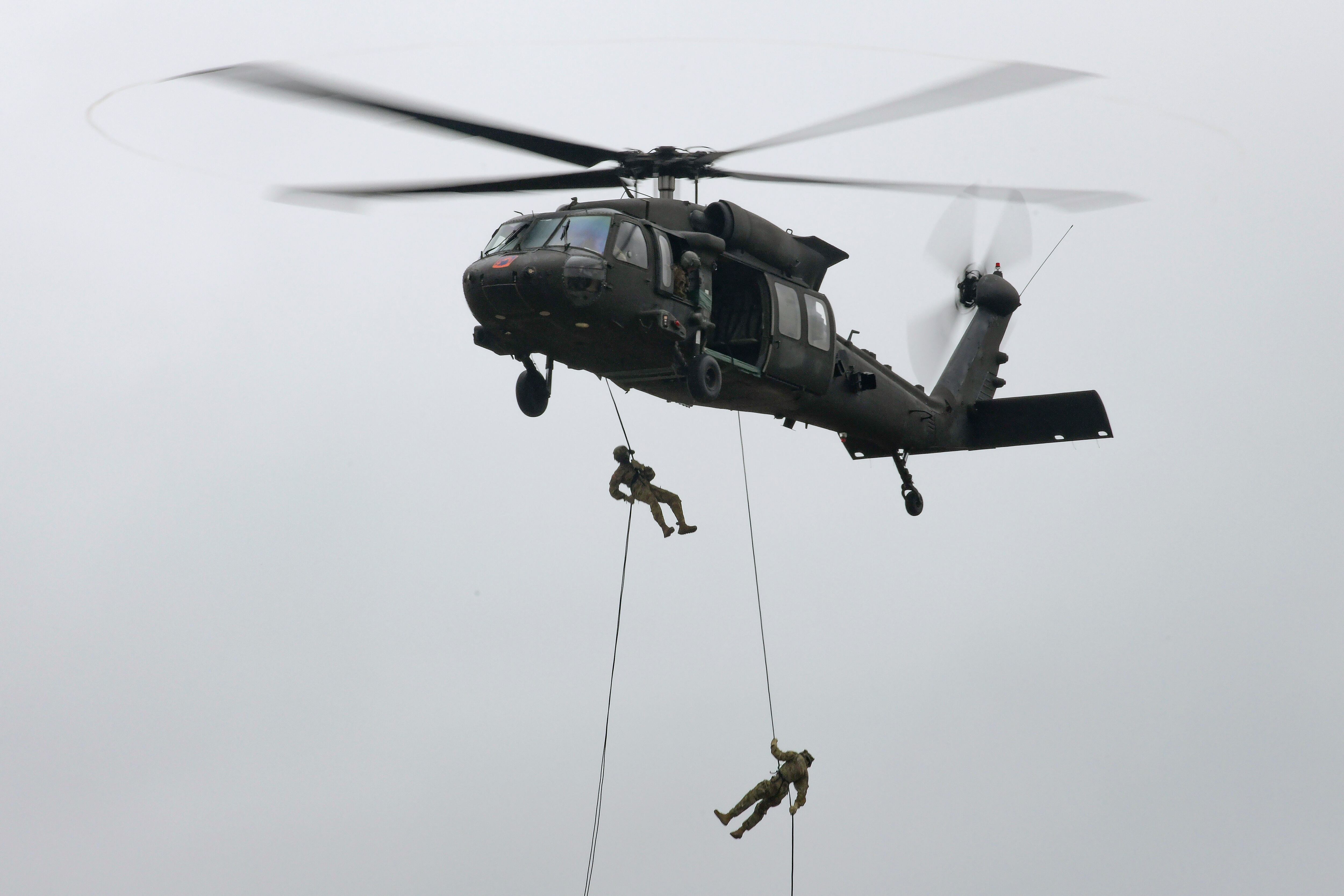 An F-16 "Thunderbird" with the U.S. Air Force Air Demonstration Squadron approaches show center during the third and final day of the Cleveland National Air Show Sept. 6 in Ohio. (Tech. Sgt. Nicolas A. Myers/Air Force)Army paratroopers assigned to the 3rd Battalion, 509th Parachute Infantry Regiment, 4th Infantry Brigade Combat Team (Airborne), 25th Infantry Division, U.S. Army Alaska, fire the M3 Multi-Role Anti-Armor Anti-Personnel Weapon System, also known as the Carl Gustaf, during live-fire training at Joint Base Elmendorf-Richardson, Alaska, Sept. 15. (Alejandro Peña/Air Force)Lt. j.g. Chunchun Waskin, left, and Seaman Samuel Figueroa Lopez scan the sea for surface contacts aboard the guided missile-destroyer Barry as it transits the Taiwan Strait Sept. 17. (MC3 Justin Stack/Navy)Participants in the live-fire exercise Jaded Thunder disembark from a Marine Corps MV-22 Osprey assigned to Marine Medium Tiltrotor Squadron 163 after an incentive flight at Hulman Field in Terre Haute, Ind., Aug. 22. (Staff Sgt. Lonnie Wiram/Air National Guard)An Indonesian Air Force F-16 flies next to a U.S. Air Force B-52 Stratofortress assigned to the 2nd Bomb Wing, Barksdale Air Force Base, Louisiana, in the Indo-Pacific region Sept. 1. This is the first time a B-52 has integrated with the Indonesian Air Force. (Courtesy of Indonesian Air Force)An E-2D Advanced Hawkeye, assigned to the “Black Eagles” of Carrier Airborne Early Warning Squadron 113, launches off the aircraft carrier Carl Vinson in the Pacific Sept. 5. (MCSN Mason Congleton/Navy)Paratroopers assigned to the 1st Battalion, 319th Field Artillery Regiment, 3rd Brigade Combat Team, 82nd Airborne Division, engage in a combined arms live-fire exercise on Fort Bragg, N.C., Sept. 15. (Pfc. Vincent Levelev/Army)Marine Corps Sgt. Louis Martin, left, and Cpl. Montana Bingen, both fixed-wing aircraft crew masters with Marine Aerial Refueler Transport 152, Marine Aircraft Group 12, 1st Marine Air Wing, prepare to deploy cargo rigged with a parachute from the back of a C-130 aircraft during an air delivery exercise over Ie Shima island, Okinawa, Japan, Sept. 15. (Sgt. Hailey D. Clay/Marine Corps)Airmen from the 91st Security Forces Group Tactical Response Force prepare for the Global Strike Challenge at Minot Air Force Base, N.D., Aug 27. (Senior Airman Dillon J. Audit/Air Force)U.S. soldiers with various units across Europe rappel from a UH-60 Black Hawk helicopter during an air assault course conducted by an Army National Guard mobile training team from Fort Benning, Georgia, at the 7th Army Training Command's Grafenwoehr Training Area, Germany, Sept. 16. (Markus Rauchenberger/Army)