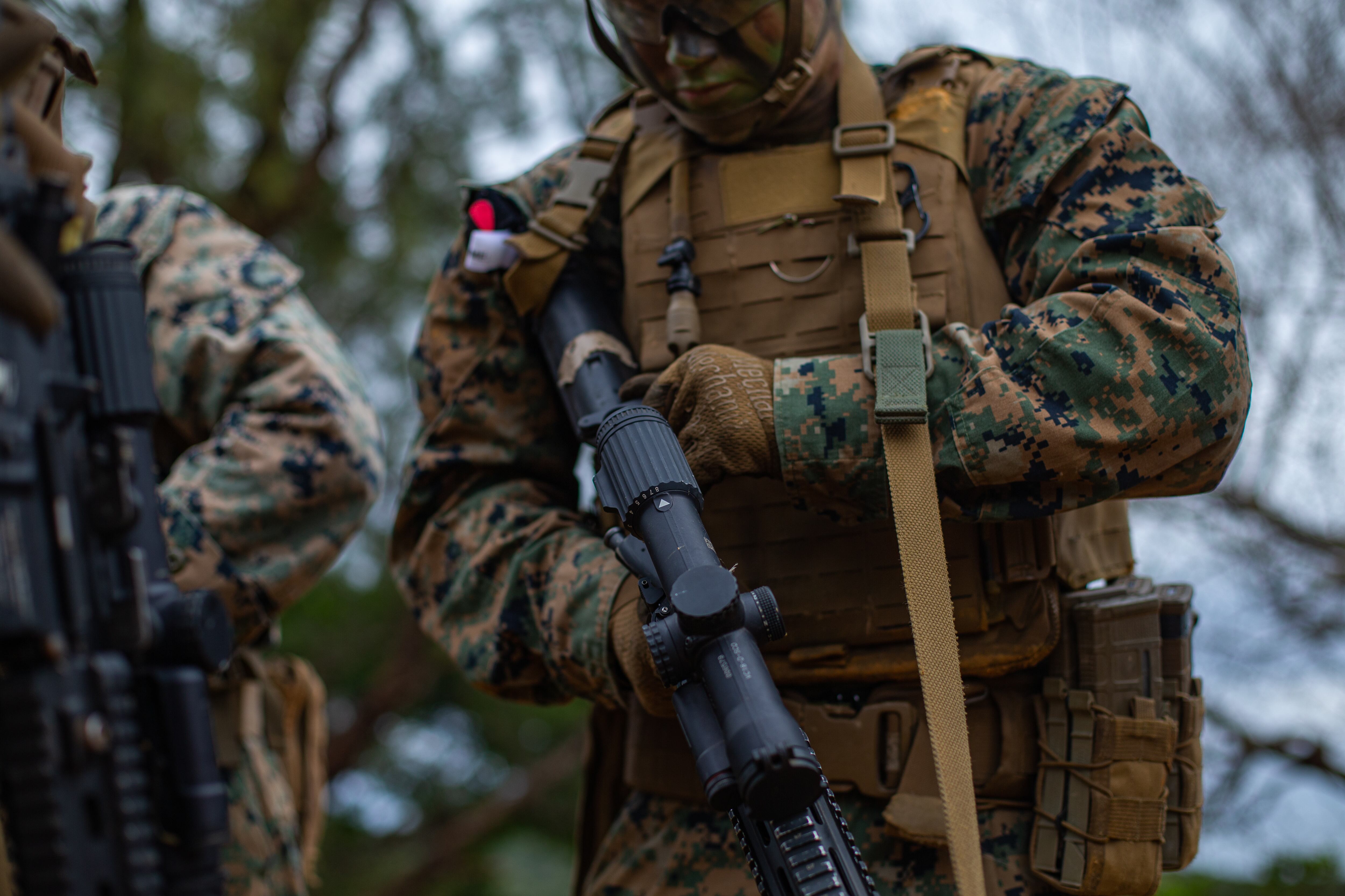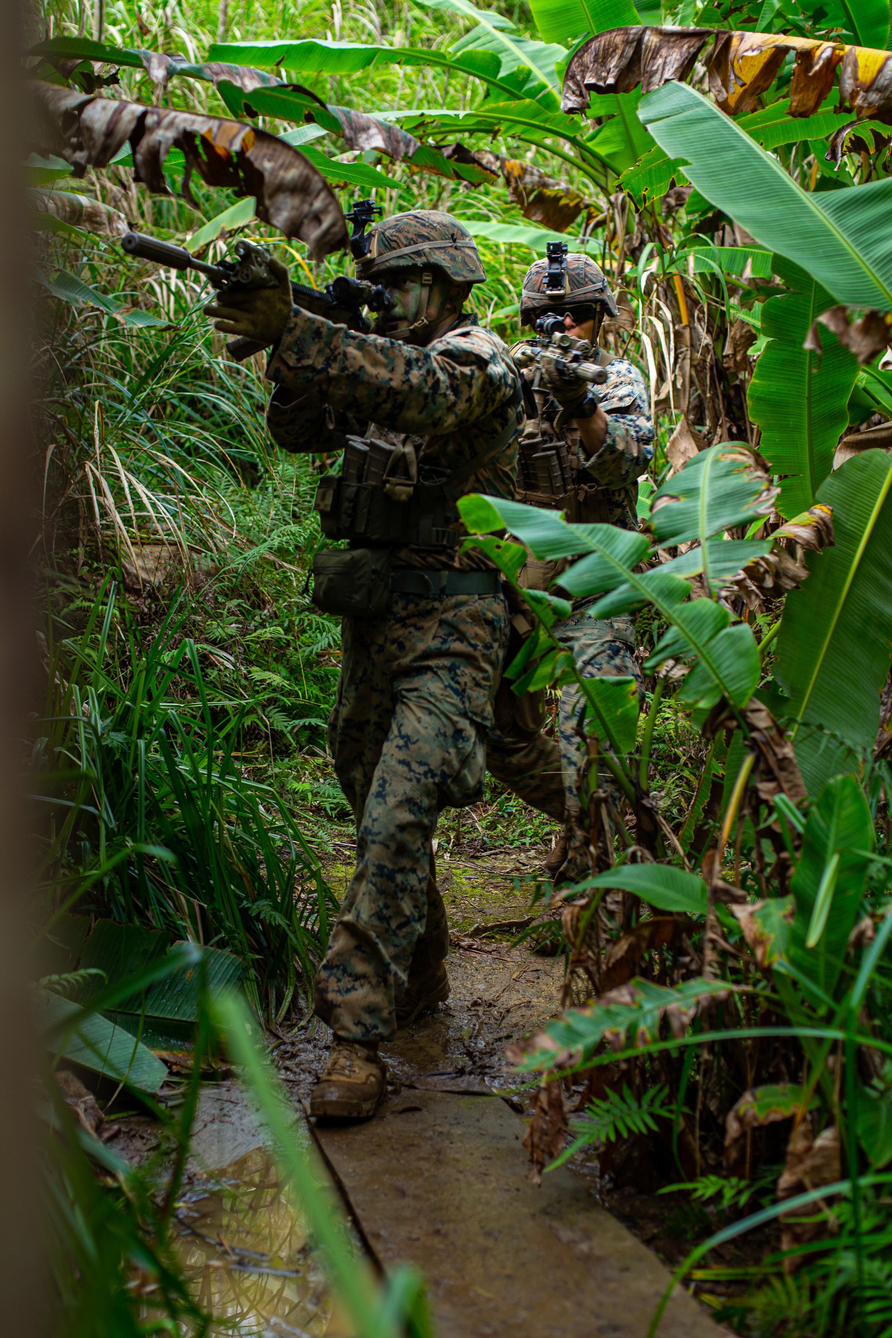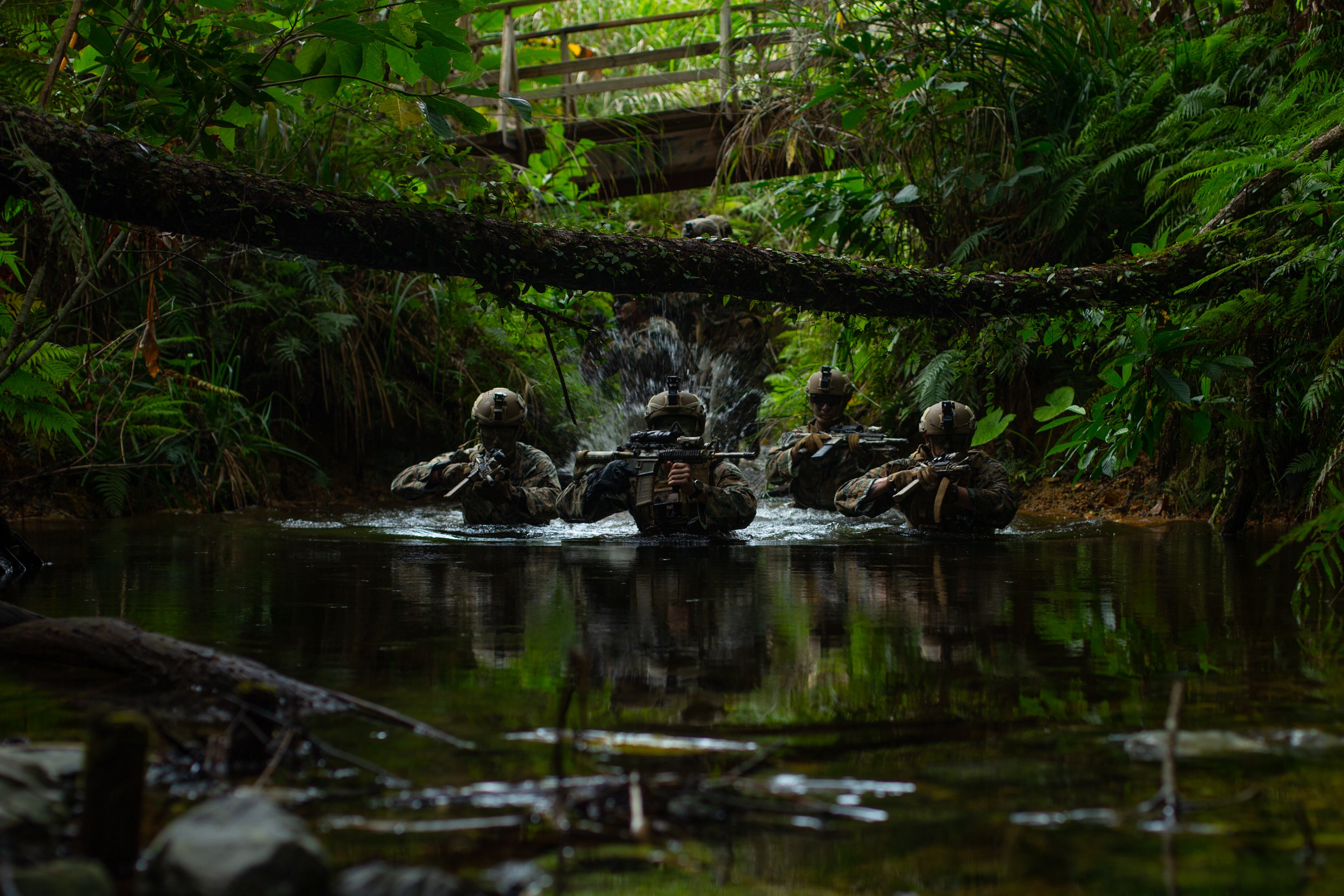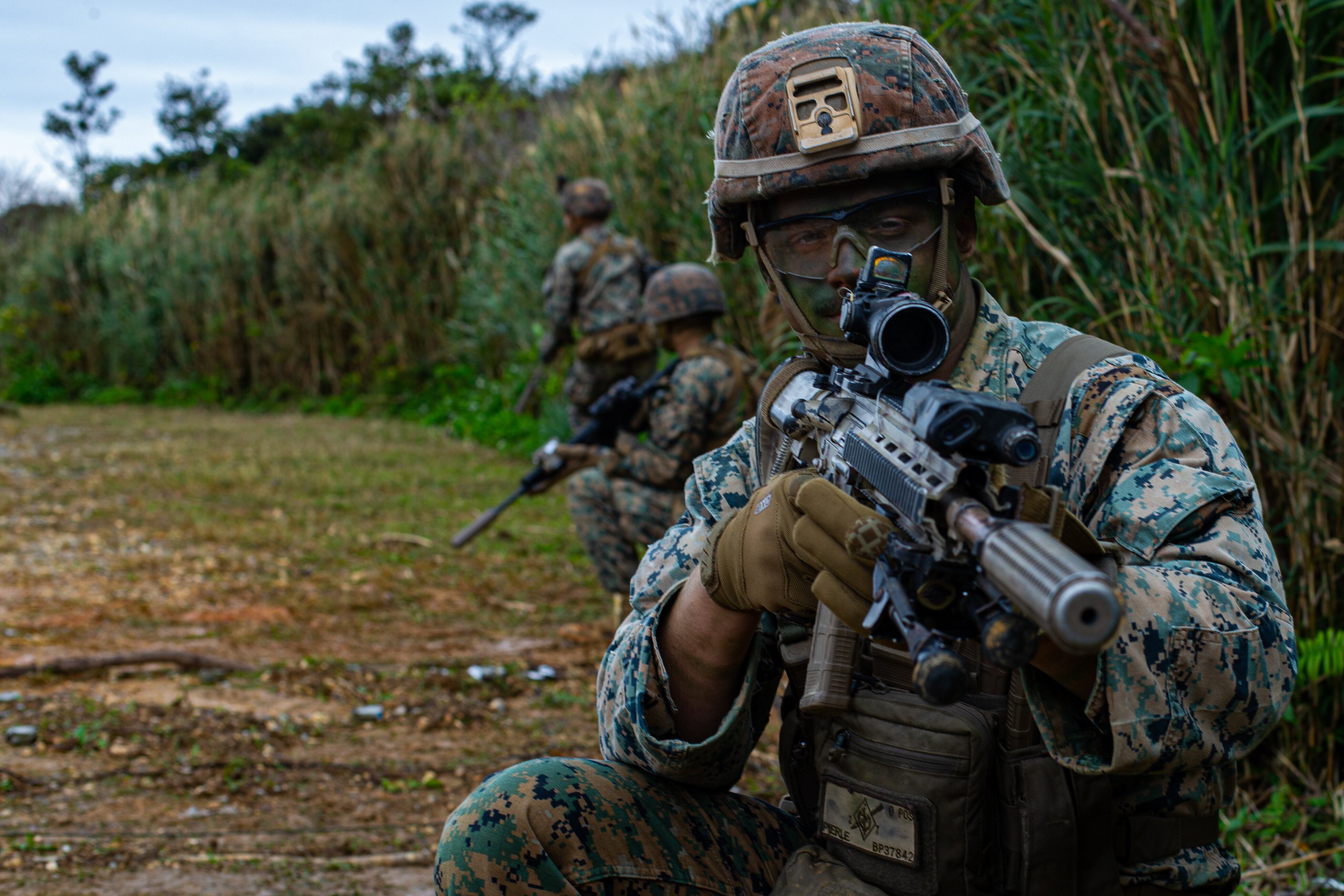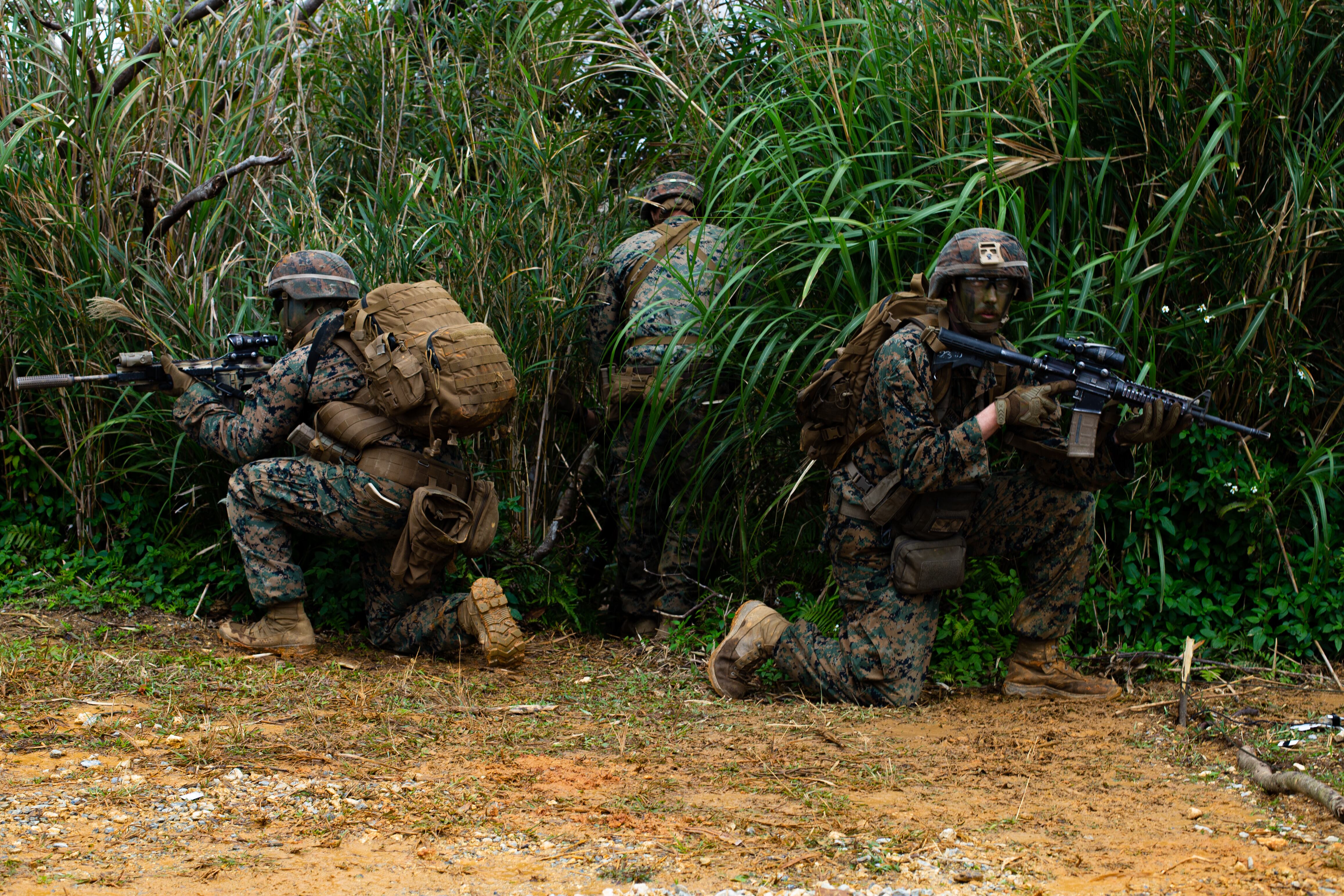Marines with 3rd Marine Division conducts inspections for the squad attack phase of the 3rd Marine Division Squad Competition at the Jungle Warfare Training Center on Camp Gonsalves, Okinawa, Japan, Jan. 6, 2022. (Lance Cpl. Jonathan Willcox/Marine Corps)Marines with 3rd Marine Division build a terrain model for their squad attack during the 3rd Marine Division Squad Competition on Camp Gonsalves, Okinawa, Japan. (Lance Cpl. Jonathan Willcox/Marine Corps)Marines with 3rd Marine Division prepare to step off on patrol during the squad attack portion of the week-long squad competition. (Lance Cpl. Jonathan Willcox/Marine Corps)Marines with 3rd Marine Division run through their plan of attack during a field portion of the week-long squad competition on Camp Gonsalves, Okinawa, Japan. (Lance Cpl. Jonathan Willcox/Marine Corps)Marine Corps Lance Cpl. Alexander Rosadoluciano, a rifleman with 2d Battalion, 8th Marines, applies camouflage paint for the squad attack phase of the 3d Marine Division Squad Competition at the Jungle Warfare Training Center on Camp Gonsalves, Okinawa, Japan, Jan. 6, 2022. (Lance Cpl. Jonathan Willcox/Marine Corps)Leaders finalize their squad patrol and attack during the 3d Marine Division Squad Competition at the Jungle Warfare Training Center on Camp Gonsalves, Okinawa, Japan, Jan. 6, 2022. (Lance Cpl. Jonathan Willcox/Marine Corps)Last instructions before heading into the jungle for Marines with 3rd Marine Division pin the squad attack phase of the week-long squad competition at the Jungle Warfare Training Center on Camp Gonsalves, Okinawa, Japan. (Lance Cpl. Jonathan Willcox/Marine Corps)A Marine readies his weapon for the squad attack phase during the 3rd Marine Division Squad Competition. (Lance Cpl. Jonathan Willcox/Marine Corps)Weapons check for Marines with 3rd Marine Division as they prepare for the squad attack phase of the 3d Marine Division Squad Competition. (Lance Cpl. Jonathan Willcox/Marine Corps)A Marine and sailor with 3rd Marine Division provide security during the squad attack phase of the 3rd Marine Division Squad Competition at the Jungle Warfare Training Center on Camp Gonsalves, Okinawa, Japan, Jan. 6, 2022. (Lance Cpl. Jonathan Willcox/Marine Corps)A Marine with 3rd Marine Division provides security during the squad attack phase of the 3rd Marine Division Squad Competition at the Jungle Warfare Training Center on Camp Gonsalves, Okinawa, Japan, Jan. 6, 2022. (Lance Cpl. Jonathan Willcox/Marine Corps)Marines with 3rd Marine Division assault an objective. (Lance Cpl. Jonathan Willcox/Marine Corps)Marine Corps Lance Cpl. Logan Whitehead, an antitank missile gunner with 3d Light Armored Reconnaissance Battalion, provides security during the squad attack phase of the 3d Marine Division Squad Competition at the Jungle Warfare Training Center on Camp Gonsalves, Okinawa, Japan, Jan. 6, 2022. (Lance Cpl. Jonathan Willcox/Marine Corps)Marines with 3rd Marine Division secure a position during the squad attack phase of the 3rd Marine Division Squad Competition at the Jungle Warfare Training Center on Camp Gonsalves, Okinawa, Japan, Jan. 6, 2022. (Lance Cpl. Jonathan Willcox/Marine Corps)Marine with 3rd Marine Division clears a building during the squad attack phase of the 3rd Marine Division Squad Competition at the Jungle Warfare Training Center on Camp Gonsalves, Okinawa, Japan, Jan. 6, 2022. (Lance Cpl. Jonathan Willcox/Marine Corps)