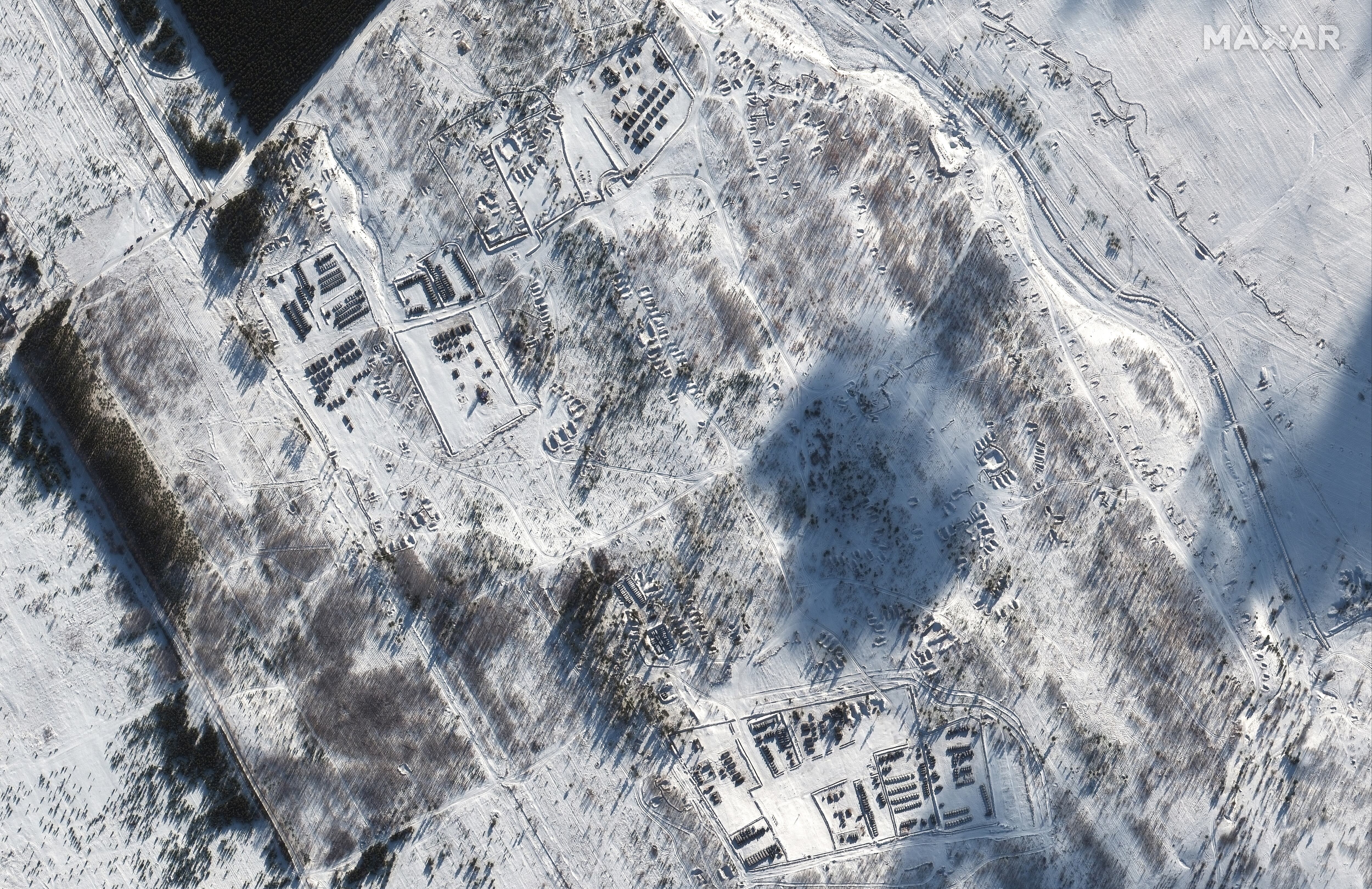 Satellite image provides an overview of deployments in Pogonovo Training Area, Voronezh, Russia, Jan. 16, 2022. (Satellite image ©2022 Maxar Technologies)