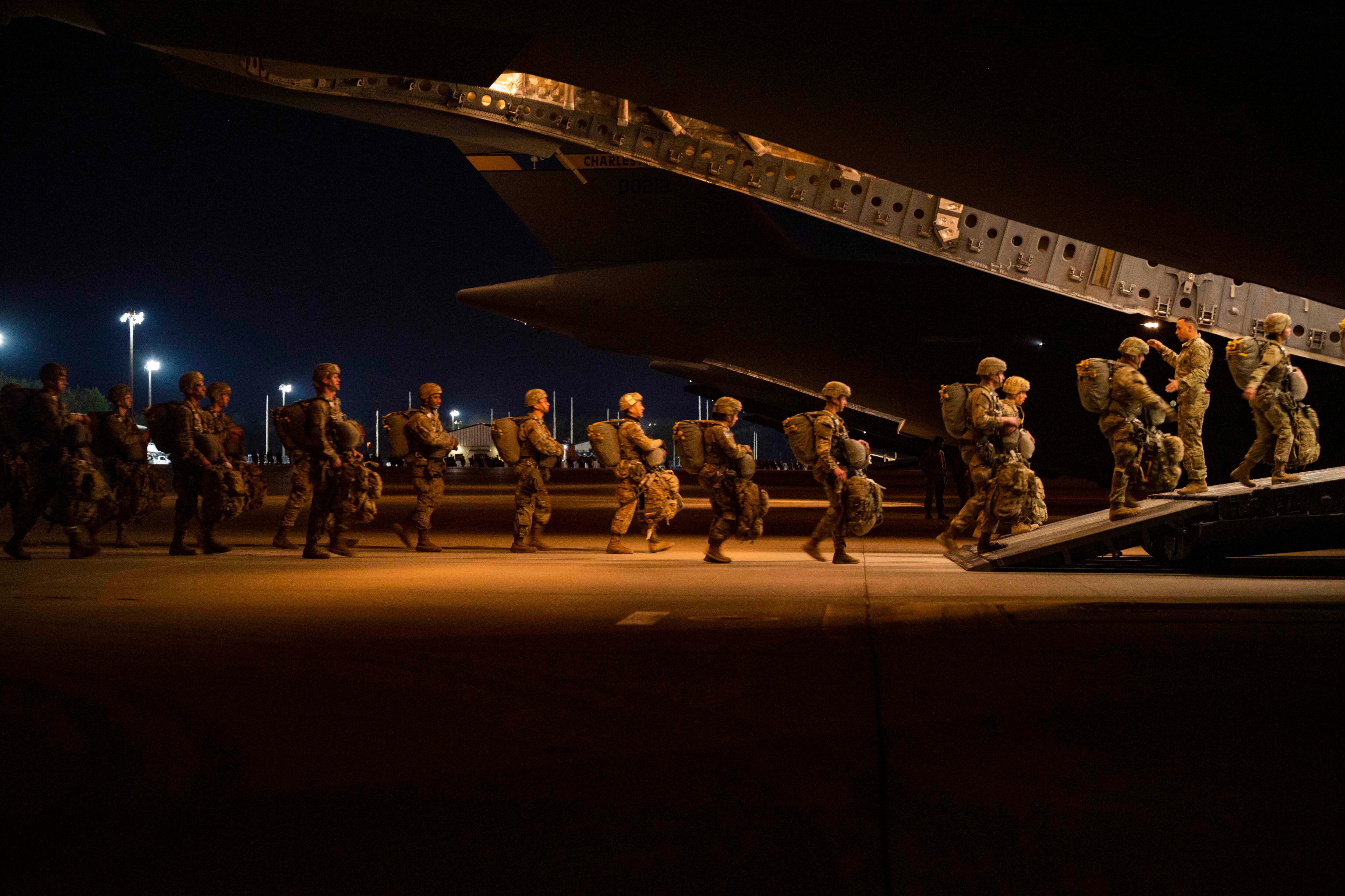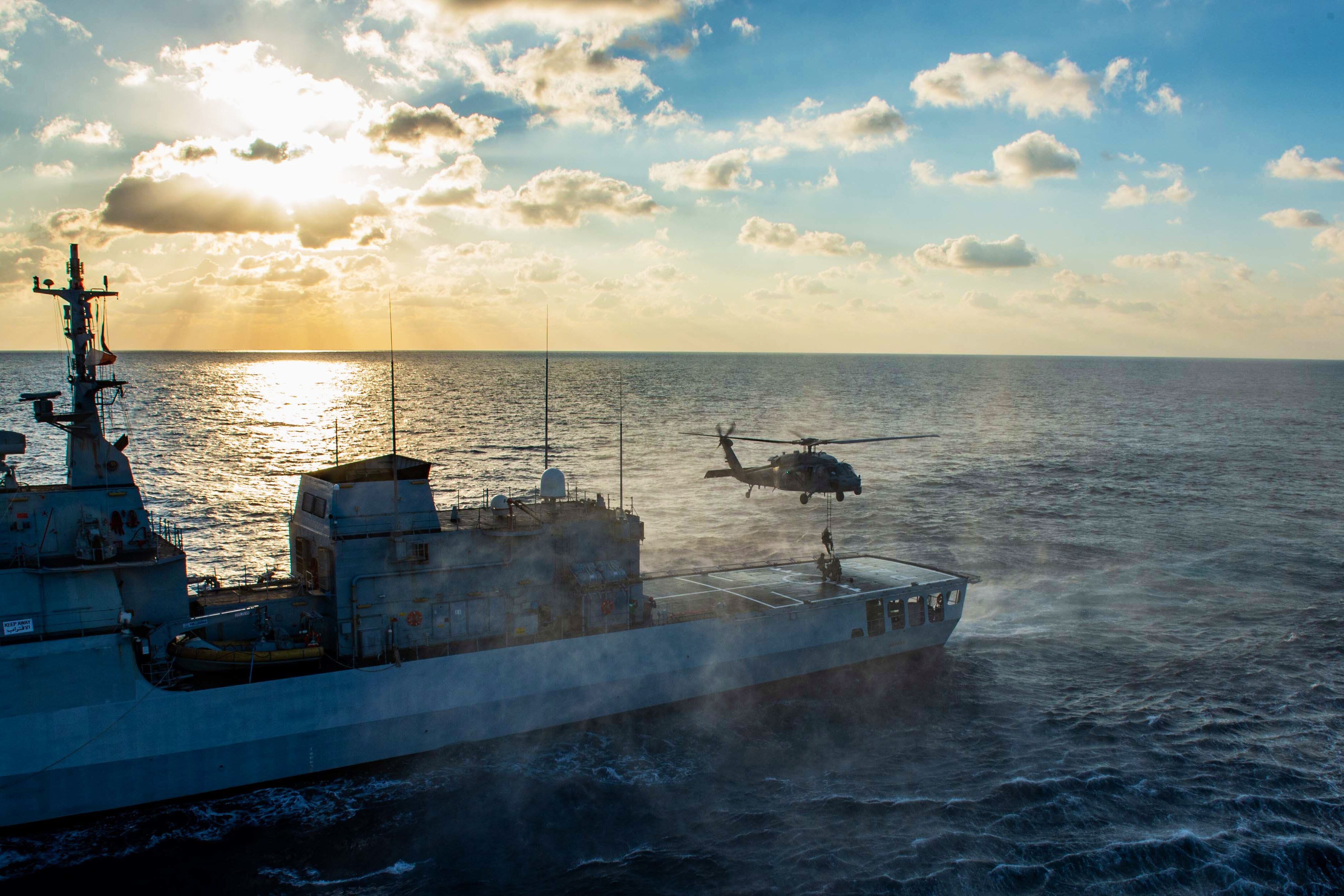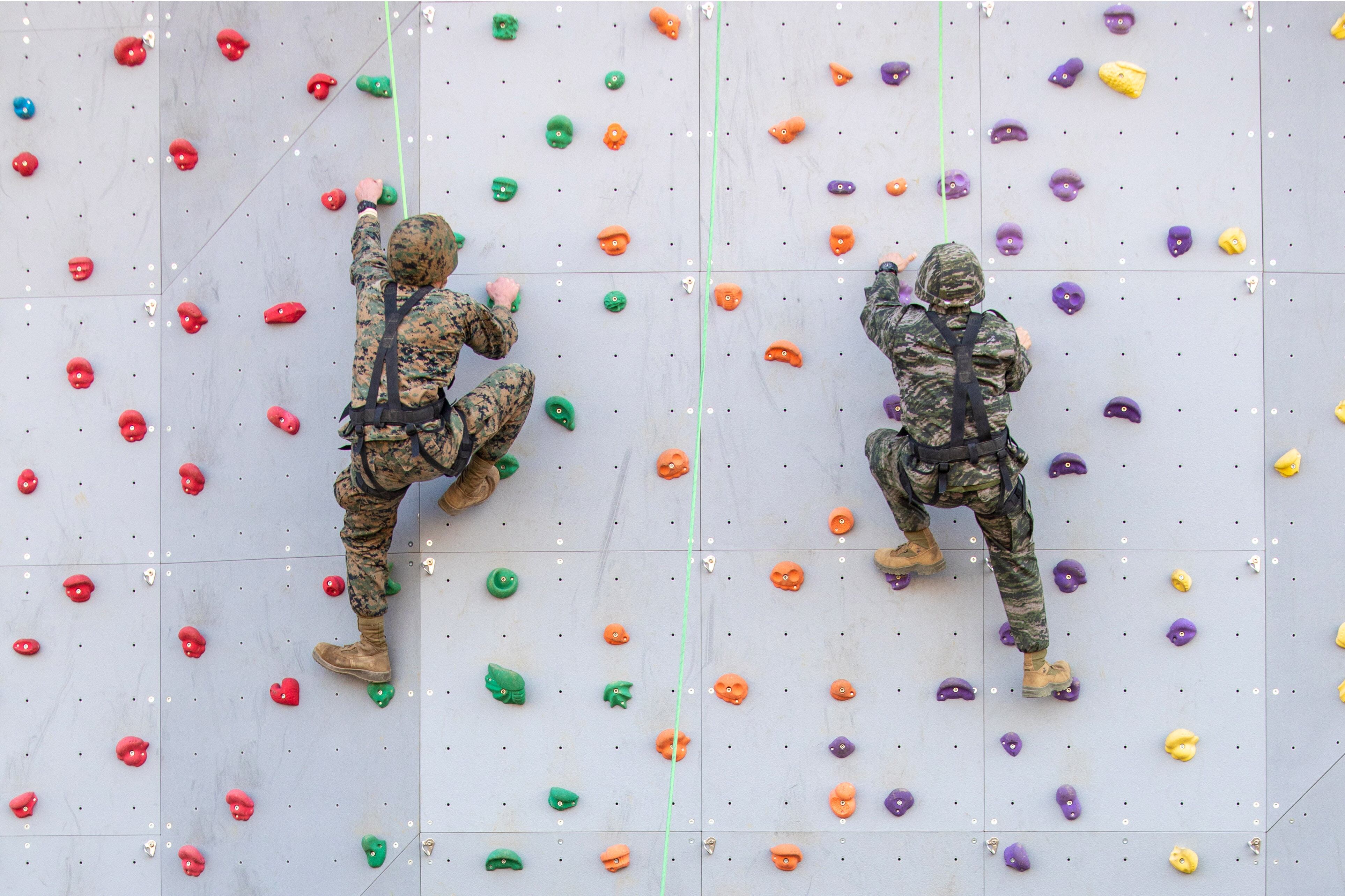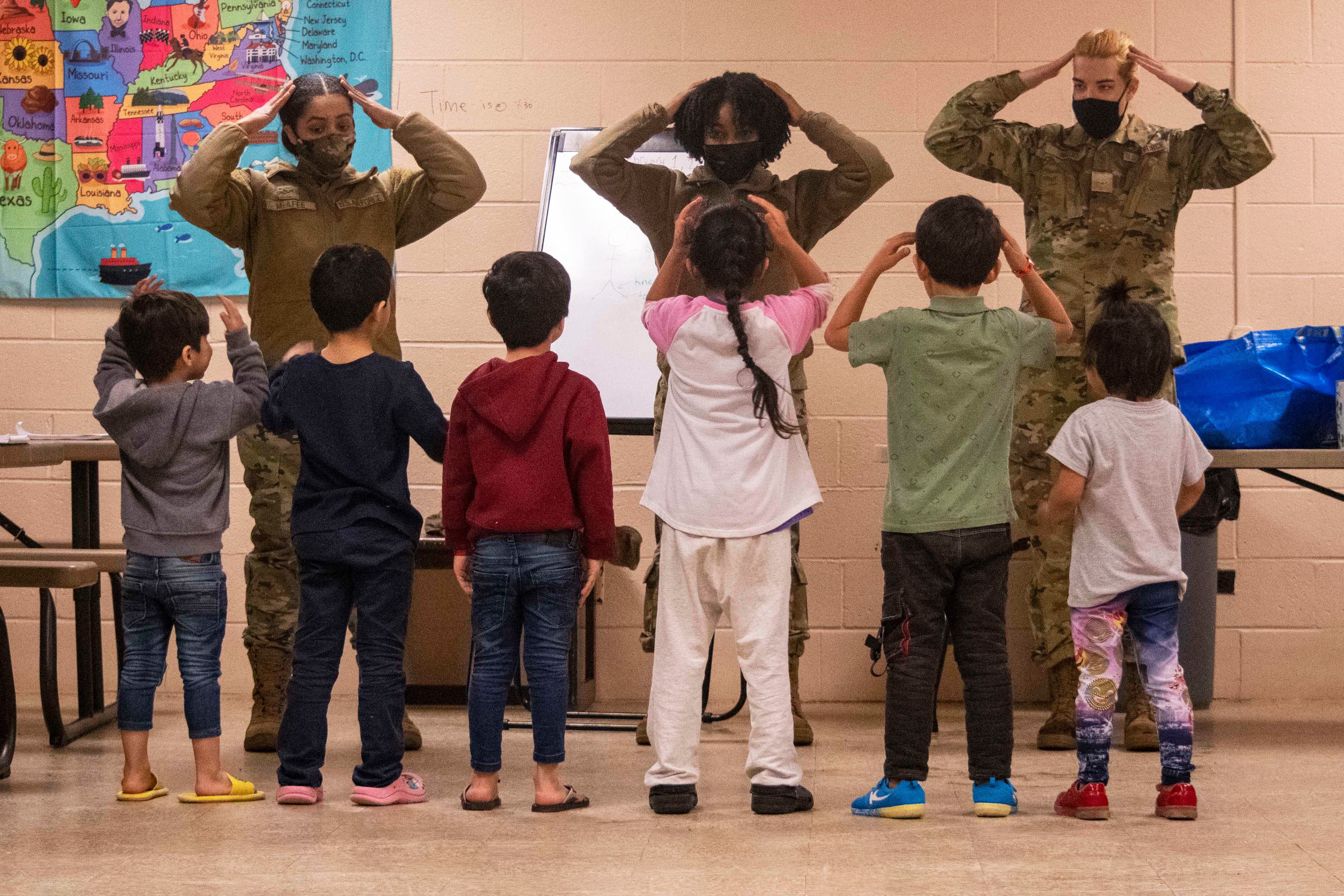 Air Force Lt. Col. Justin "Astro" Elliott, a commander of the Thunderbirds, the Air Force's flight demonstration team, leads a formation of five F-16 Fighting Falcon fighter jets during a maneuver over Fort Huachuca, Ariz., Jan. 28, 2022. (Staff Sgt. Andrew Sarver/Air Force)Marines conduct amphibious operations in the Sulu Sea, Jan. 29, 2022. (Petty Officer 3rd Class Sang Kim/Navy)Army paratroopers assigned to the 82nd Airborne Division, Fort Bragg, North Carolina, board an Air Force C-17 Globemaster III during training at Pope Army Airfield, N.C., Jan. 31, 2022. (Airman 1st Class Charles Casner/Air Force)Sailors fast-rope from a Navy MH-60S Seahawk helicopter onto the Italian Navy patrol vessel Orione during Neptune Strike in the Mediterranean Sea, Jan. 27, 2022. The exercise highlights NATO’s ability to integrate the high-end maritime warfare capabilities of a carrier strike group to support the defense of the alliance. (MCS3 Abbigail Beardsley/Navy)Tyson, a military working dog, participates in water confidence training at Andersen Air Force Base, Guam, January 28, 2022. (Airman 1st Class Breanna Gossett/Air Force)Marines prepare to conduct a sling load operation using a CH-53E Super Stallion helicopter at Schofield Barracks, Hawaii, Jan. 27, 2022. (Cpl. Dalton J. Payne/Marine Corps)The Navy and Coast Guard host an ice dive training course at Camp Ripley, Minn., Feb. 1, 2022. (Anthony Housey/Minnesota National Guard)A soldier with the 81st Readiness Division navigates an obstacle during a squad-based competition at the Fort Jackson Endurance Course in South Carolina, Jan. 29, 2022. (Capt. David Gasperson/Army)A U.S. and South Korean Marine compete in a rock climbing competition in Pohang, South Korea, Jan. 27, 2022. The course aimed to improve readiness with rappelling and rope work while improving interoperability with partners and allies. (Sgt. Ash McLaughlin/Marine Corps)Airmen assigned to Task Force-Liberty sing the “head, shoulders, knees and toes” song with Afghan children in Liberty Village on Joint Base McGuire-Dix-Lakehurst, New Jersey, Feb. 1, 2022. The Department of Defense, through U.S. Northern Command, and in support of the Department of Homeland Security, is providing transportation, temporary housing, medical screening, and general support for at least 11,000 Afghan evacuees at Liberty Village, in permanent or temporary structures, as quickly as possible. (Staff Sgt. Mikaley Kline/Air Force)
