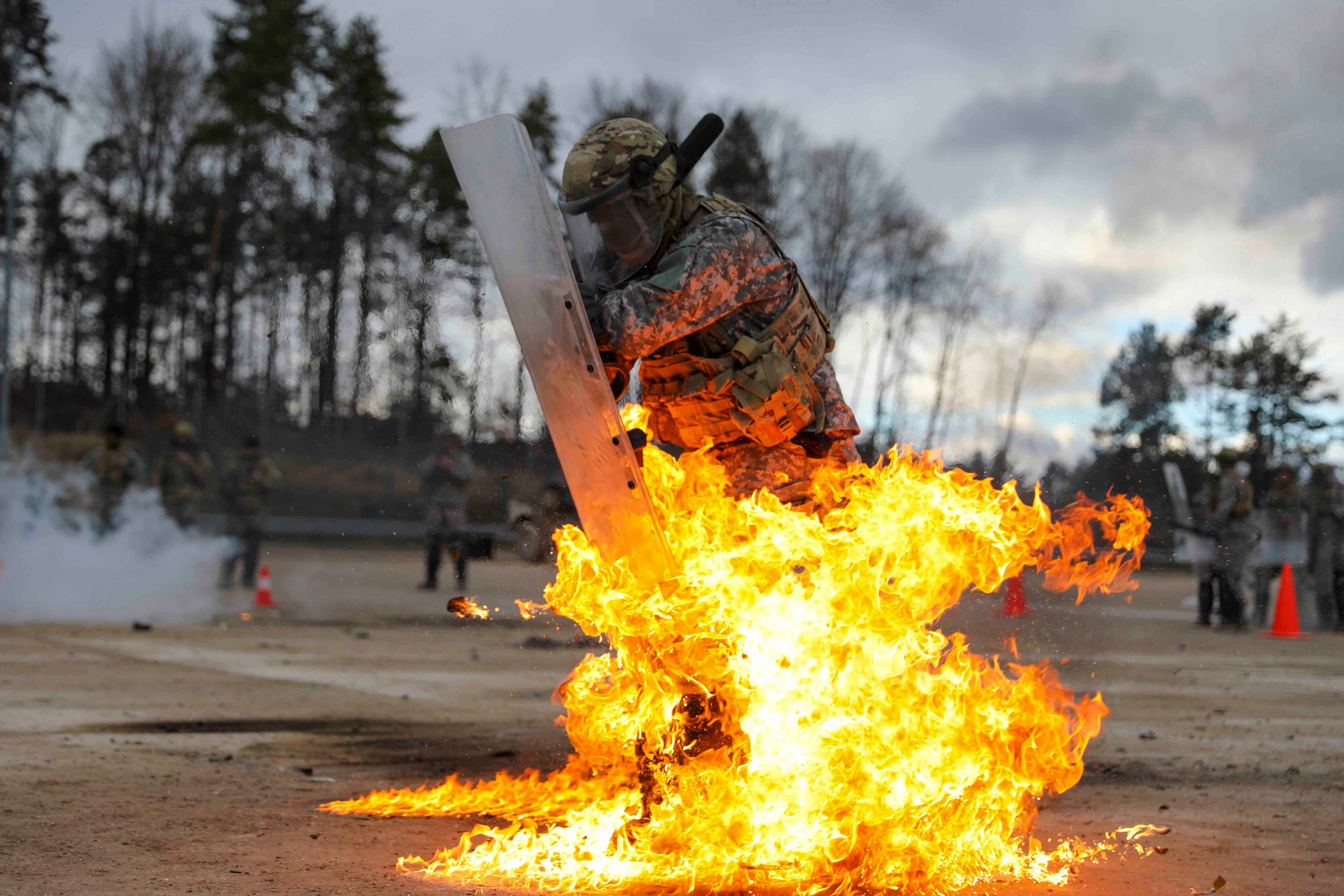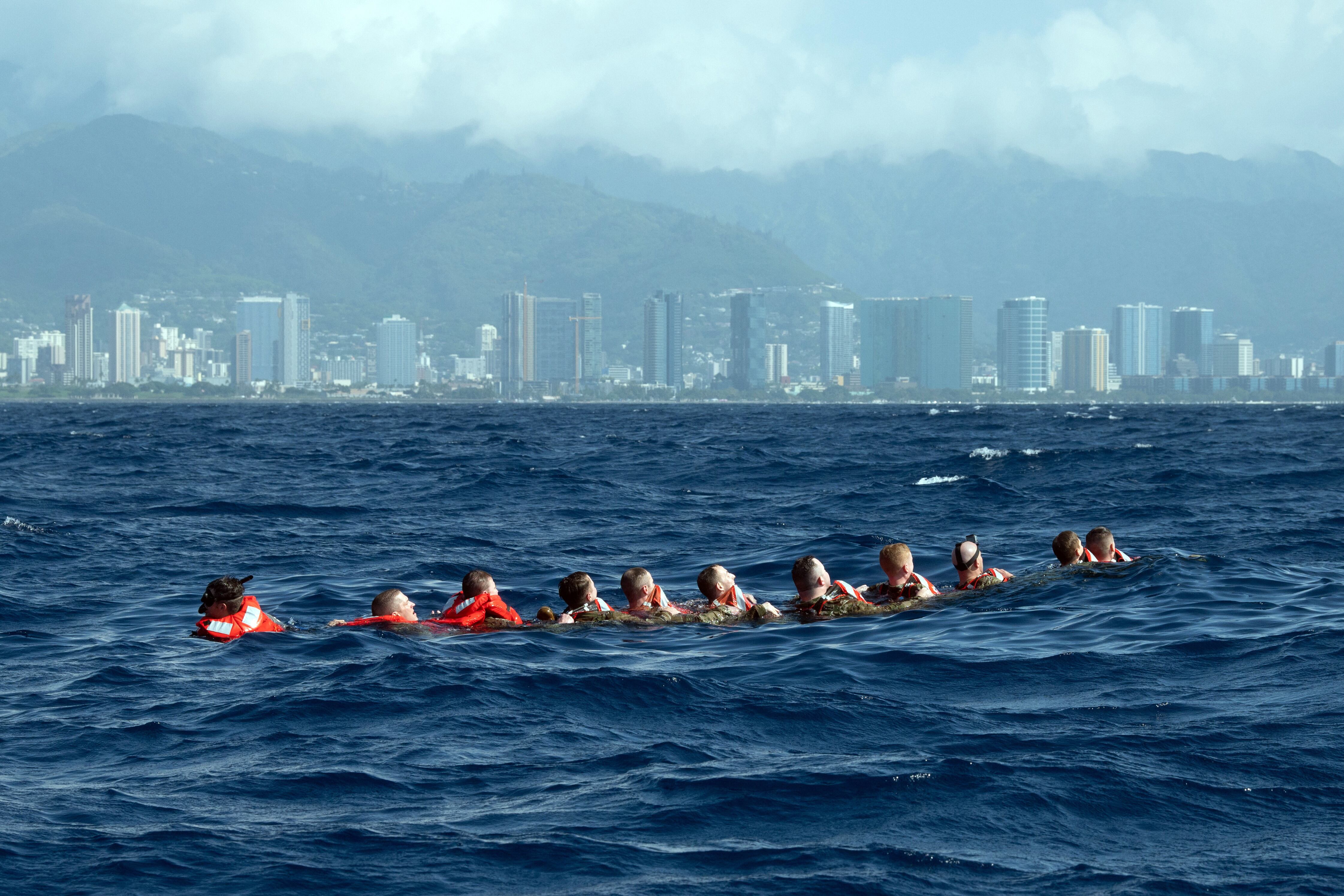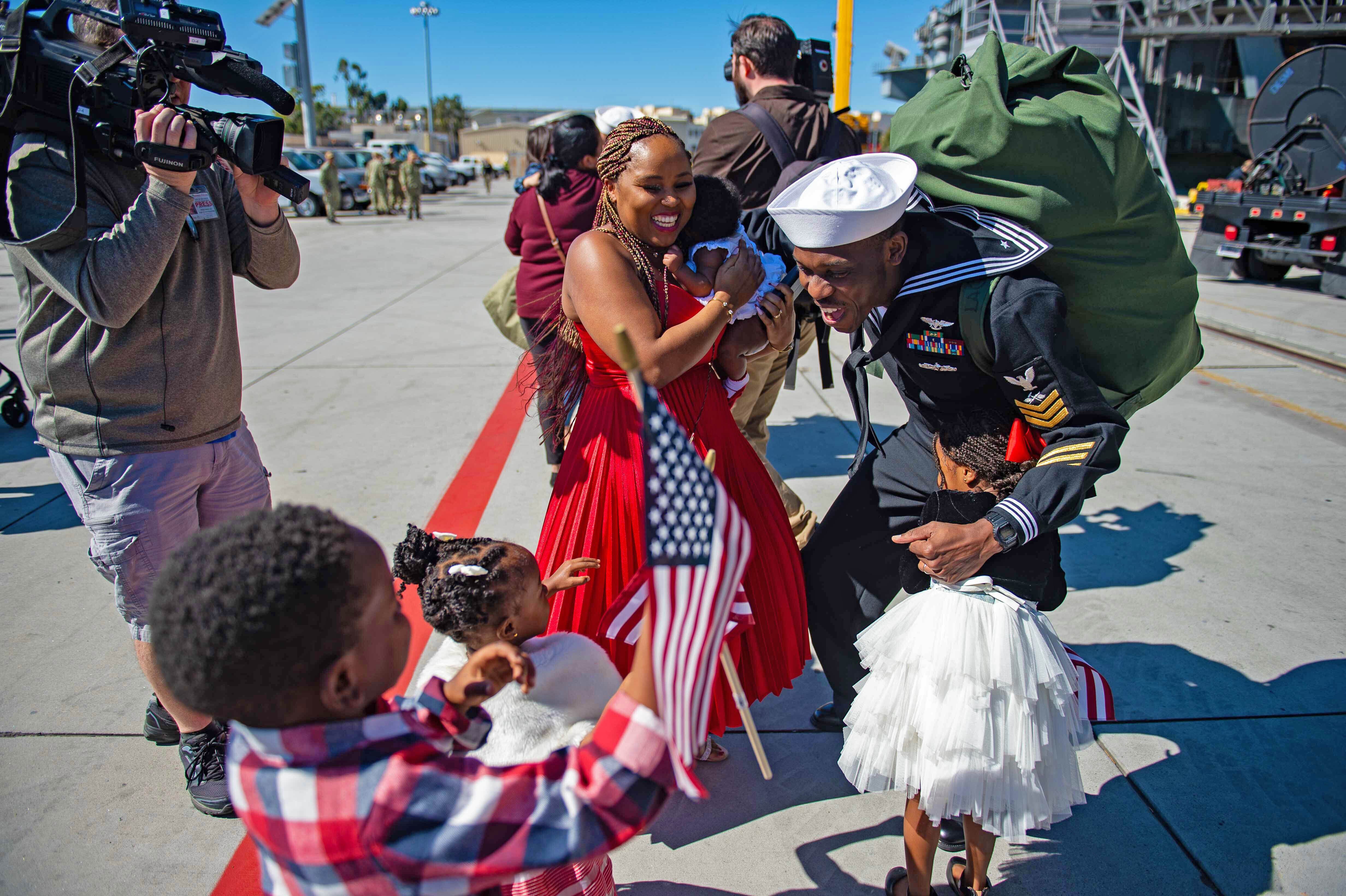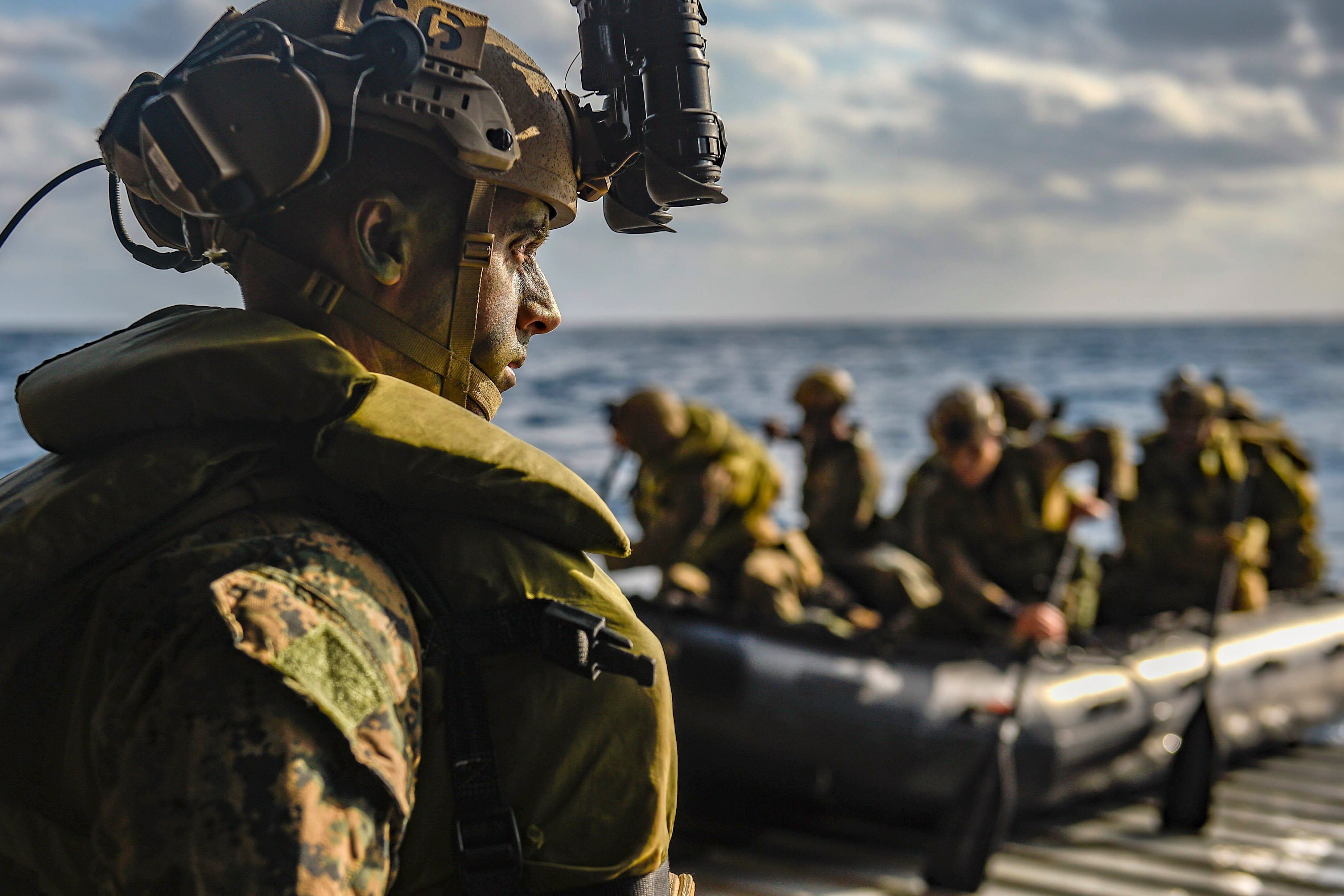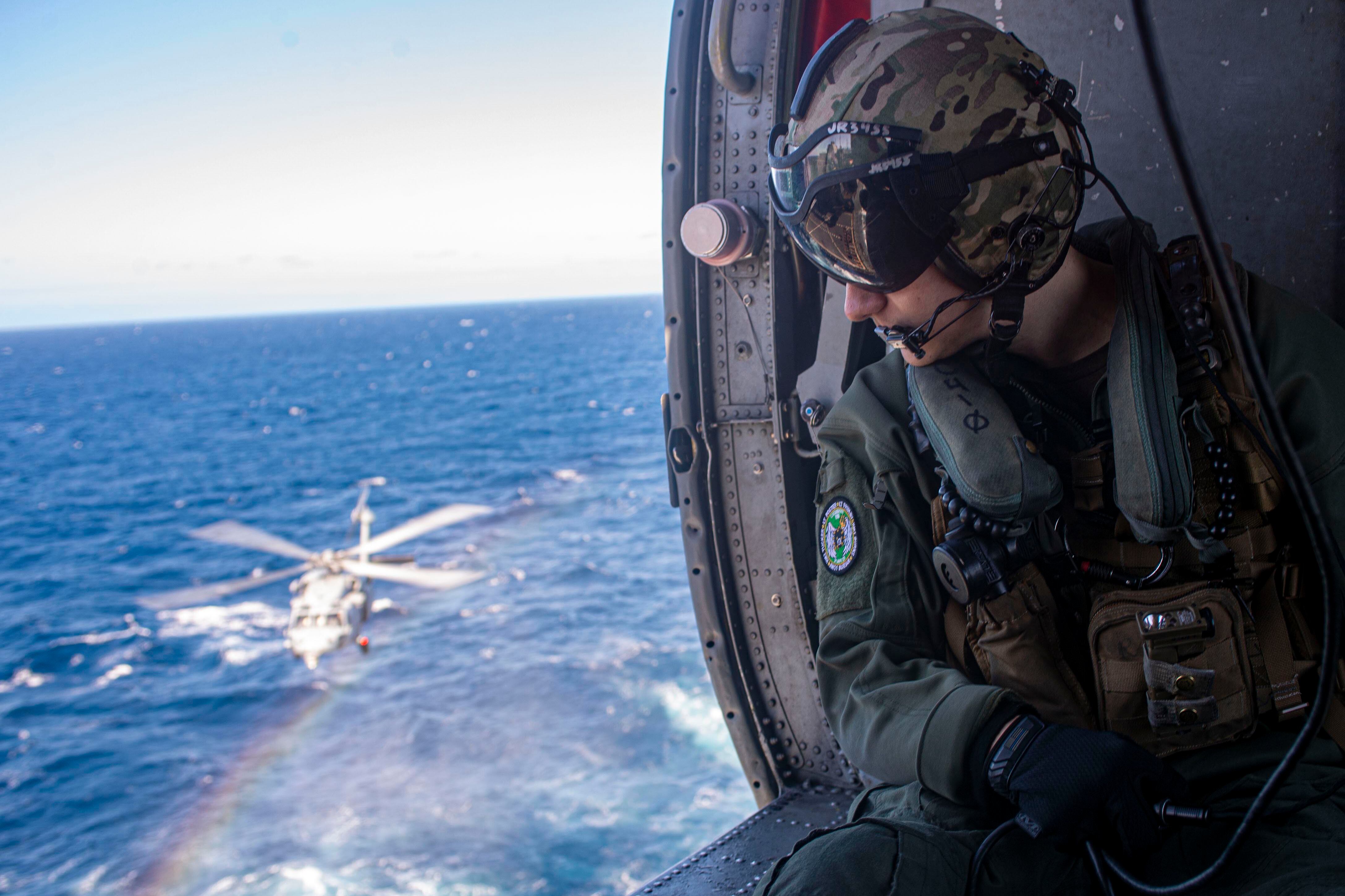A USAF Lockheed Martin F-35 Lightning II causes vapour aka fluffing to bounce off its wings as it flies at 500 knots during a low level training sortie through the Mach Loop in an area of the Snowdonia National Park in Wales, United Kingdom, Feb. 10, 2022 (Thomas Winstone/News Images/Sipa USA)(Sipa via AP Images)Navy Petty Officer 2nd Class Jake Rambow performs lookout duties from inside an MH-60S Knight Hawk helicopter above the Atlantic Ocean, Feb. 4, 2022. (MCS3 Novalee Manzella/Navy)A soldier assigned to Kentucky National Guard’s 1st Battalion, 149th Infantry Brigade, 116th Infantry Brigade Combat Team, 29th Infantry Division, reacts to a Molotov cocktail while undergoing fire phobia training at the Joint Multinational Readiness Center, Hohenfels, Germany, Feb. 11, 2022. Fire phobia training is conducted during mission rehearsal exercises prior to deployment, to prepare and familiarize soldiers in reacting to incendiaries during civil unrest riots. (Sgt. Marla Ogden/Army)Marines conduct combat rubber raiding craft operations from the well deck of the amphibious transport dock ship Green Bay in the Philippine Sea, Feb. 6, 2022. (MCS2 Jonathan D. Berlier/Navy)Airmen assigned to the 115th Fighter Wing Security Forces Squadron in Madison, Wisconsin, participate in water survival training off the coast of Honolulu, Hawaii Jan. 12, 2022. Forming a chain and counting off one-by-one ensured all members were accounted for before they swam together to a nearby life-raft. (Tech. Sgt. Andrea Rhode/Air National Guard)Soldiers fire a cannon during training at Konotop Range, Drawsko Pomorskie, Poland, February. 4, 2022. (Spc. Hedil Hernández/Army)Sailors assigned to the “Golden Swordsmen” of Patrol Squadron 47 work to de-ice a P-8A Poseidon on the flight line at Naval Air Facility Atsugi, Japan, Feb. 12, 2022. (MCS1 Brandon J. Vinson/Navy)Marine Corps Cpl. Adrian Nieves conducts night watch during a joint command and control exercise at Quaid Range, Djibouti, Feb. 8, 2022. (Staff Sergeant Katelynn Moeller/Air Force)Space Force Spc. Brannon Kan assists a student in assembling a model rover during the interactive rover exercise at a school in Aurora, Colo., Feb. 4, 2022. (Airman 1st Class Shaun Combs/Space Force)A sailor reunites with family at Naval Air Station North Island, Feb. 14, 2022, following an eight-month deployment with the Carl Vinson Carrier Strike Group in the Indo-Pacific region. (MCSN Elizabeth Grubbs/Navy)