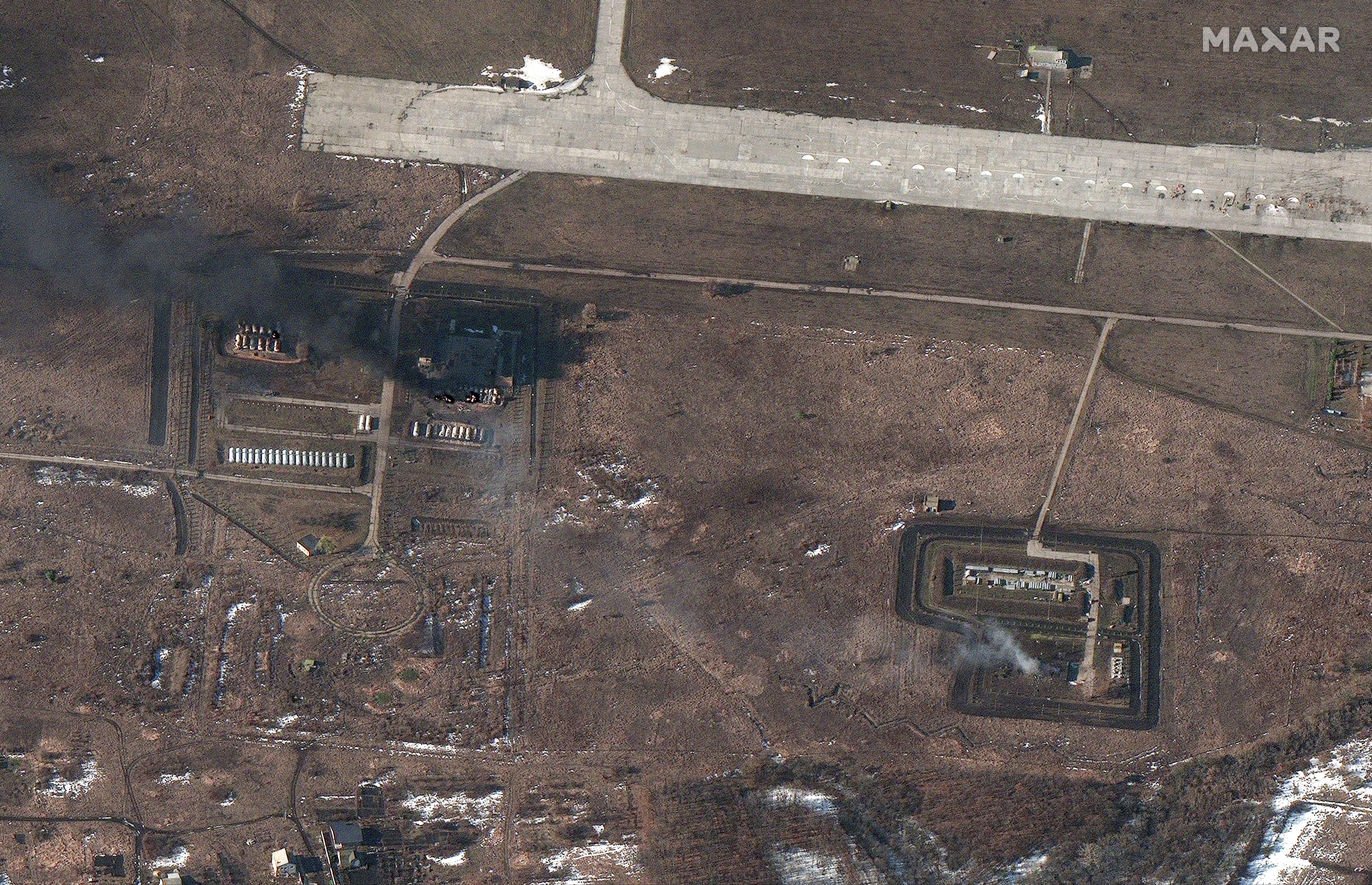 Overview shows Chuhuiv airfield, Ukraine, Feb. 24, 2022 (Satellite image ©2022 Maxar Technologies)