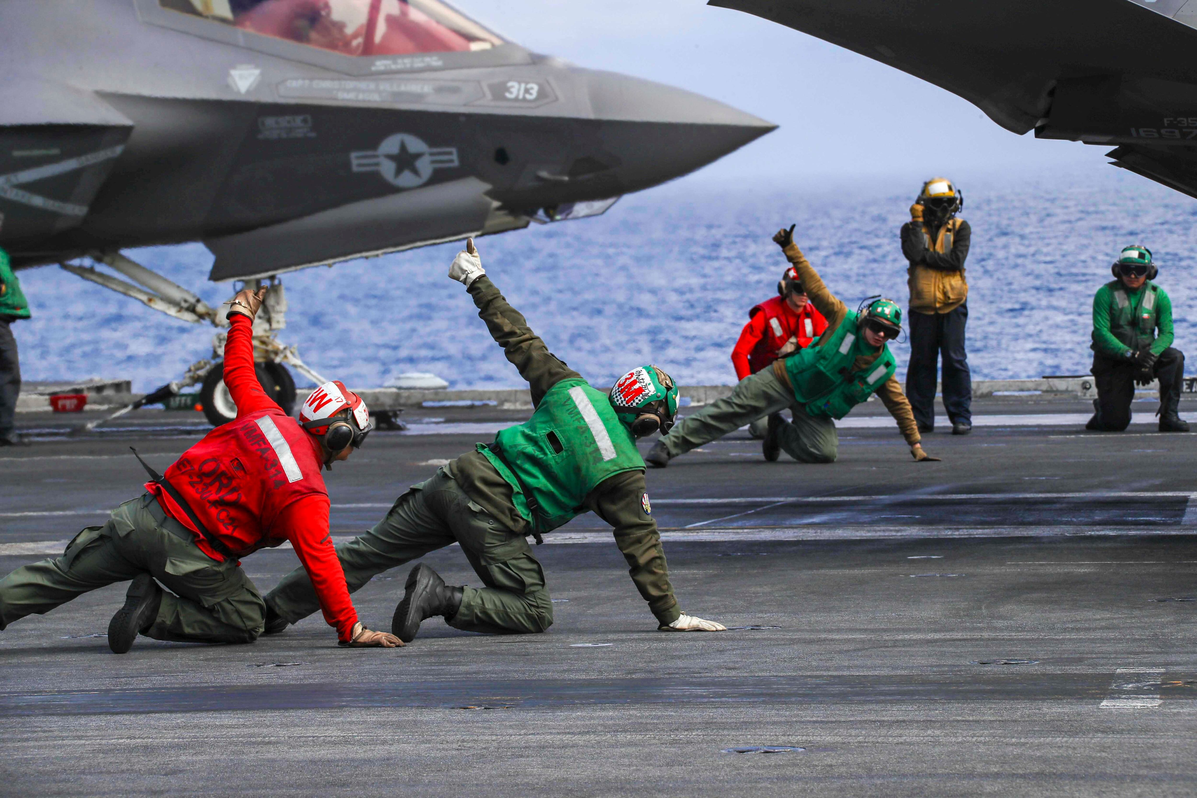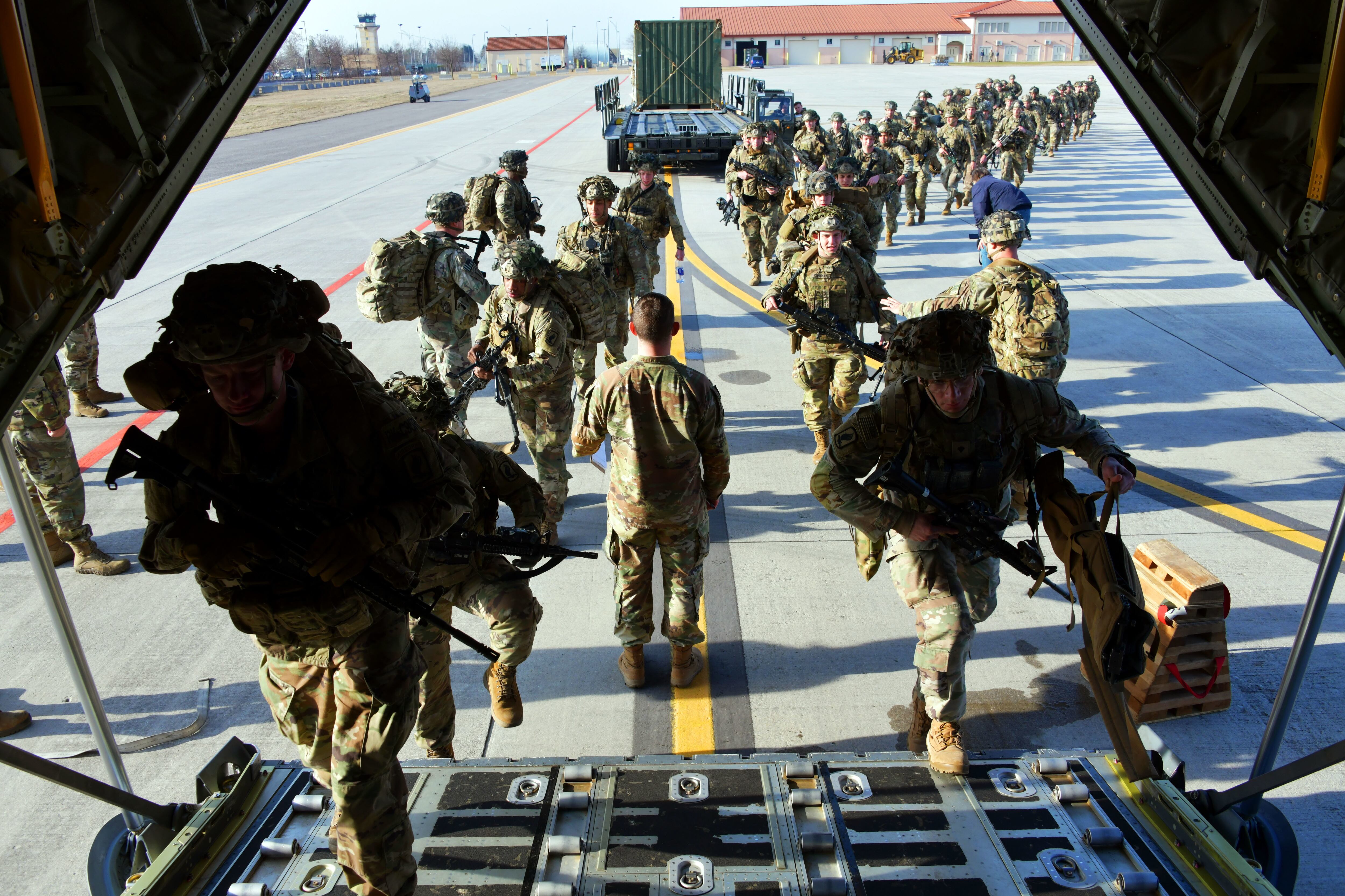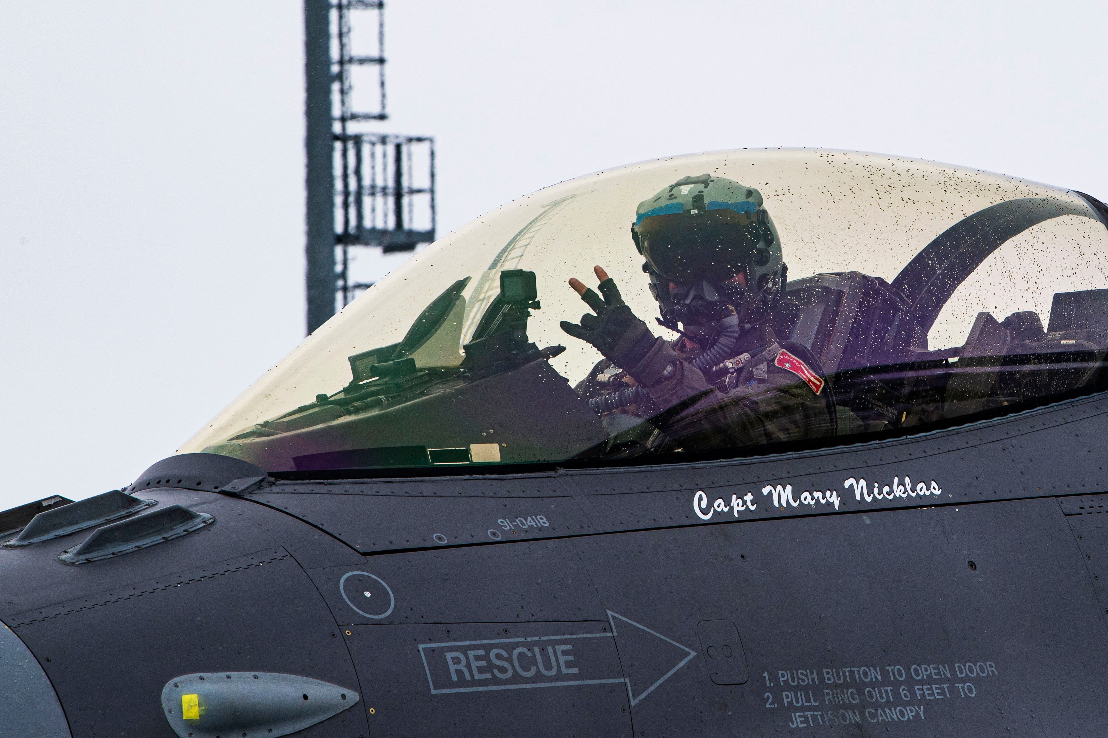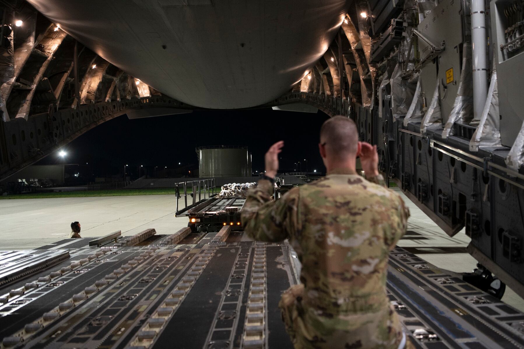 An Air Force F-16 Fighting Falcon pilot from the 480th Expeditionary Fighter Squadron at Spangdahlem Air Base, Germany, prepares to take off at the 86th Air Base, Romania, March 1, 2022. (Senior Airman Ali Stewart/Air Force)Paratroopers from 2nd Battalion, 503rd Parachute Infantry Regiment, 173rd Airborne Brigade, deployed to Latvia, Feb. 23-24, 2022, to demonstrate United States' commitment to our NATO Allies and bolster defensive capabilities. (Graigg Faggionato/Army)Airman 1st Class Chase Smith, 8th Airlift Squadron loadmaster, marshals a K-loader toward a C-17 Globemaster III at Travis Air Force Base, California, Feb. 14, 2022. Airmen are working under the direction of U.S. Transportation Command during the movement of security assistance cargo to Ukraine via commercial cargo aircraft. (Senior Airman Karla Parra/Air Force)Navy Petty Officer 2nd Class Darazhea Bledsoe stands at parade rest during the patrol ship Typhoon’s decommissioning ceremony at Naval Support Activity Bahrain, Feb. 28, 2022. (MCS2 Dawson Roth/Navy)Marines signal an F-35C Lightning II to launch on the flight deck of the aircraft carrier Abraham Lincoln in the Philippine Sea, Feb. 23, 2022. (MCS3 Javier Reyes/Navy)Coast Guard Air Station Barbers Point aircrews conduct flight formations in the soon to be retired HC-130H Hercules airplane over Honolulu, Feb. 17, 2022. (Lt. Cmdr. Scott Handlin/Coast Guard)Airmen observe the landing site from an MC-130J Commando II during a simulated supply drop in Thailand, Feb. 25, 2022, as part of Cobra Gold, an international training exercise. (Staff Sgt. Rito Smith/Air Force)Marines hike to a training area before Cold Response, a readiness and defense exercise, in Setermoen, Norway, Feb. 22, 2022. (Lance Cpl. Jacqueline C. Arre/Marine Corps)A Navy air-cushioned landing craft enters the well deck of the amphibious transport dock ship Anchorage in the Pacific Ocean, Feb. 1, 2022. (MCS2 Hector Carrera/Navy)Members of the Golden Knights, the Army's parachute team, conduct night jumps over Homestead Air Reserve Base, Fla., Feb. 23, 2022, while conducting their annual certification cycle for the upcoming show season. (Sgt. Mark Pierce/Army)
