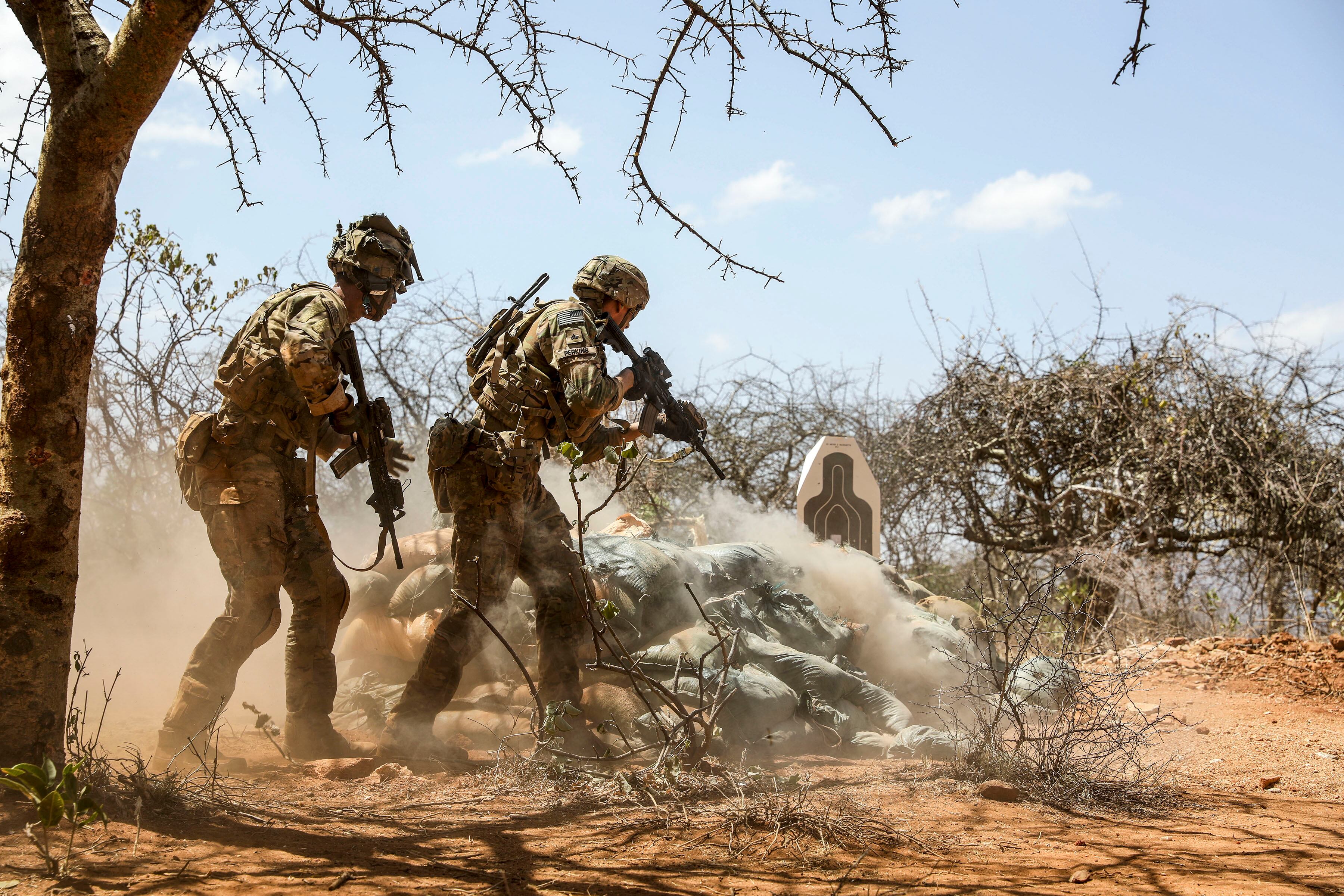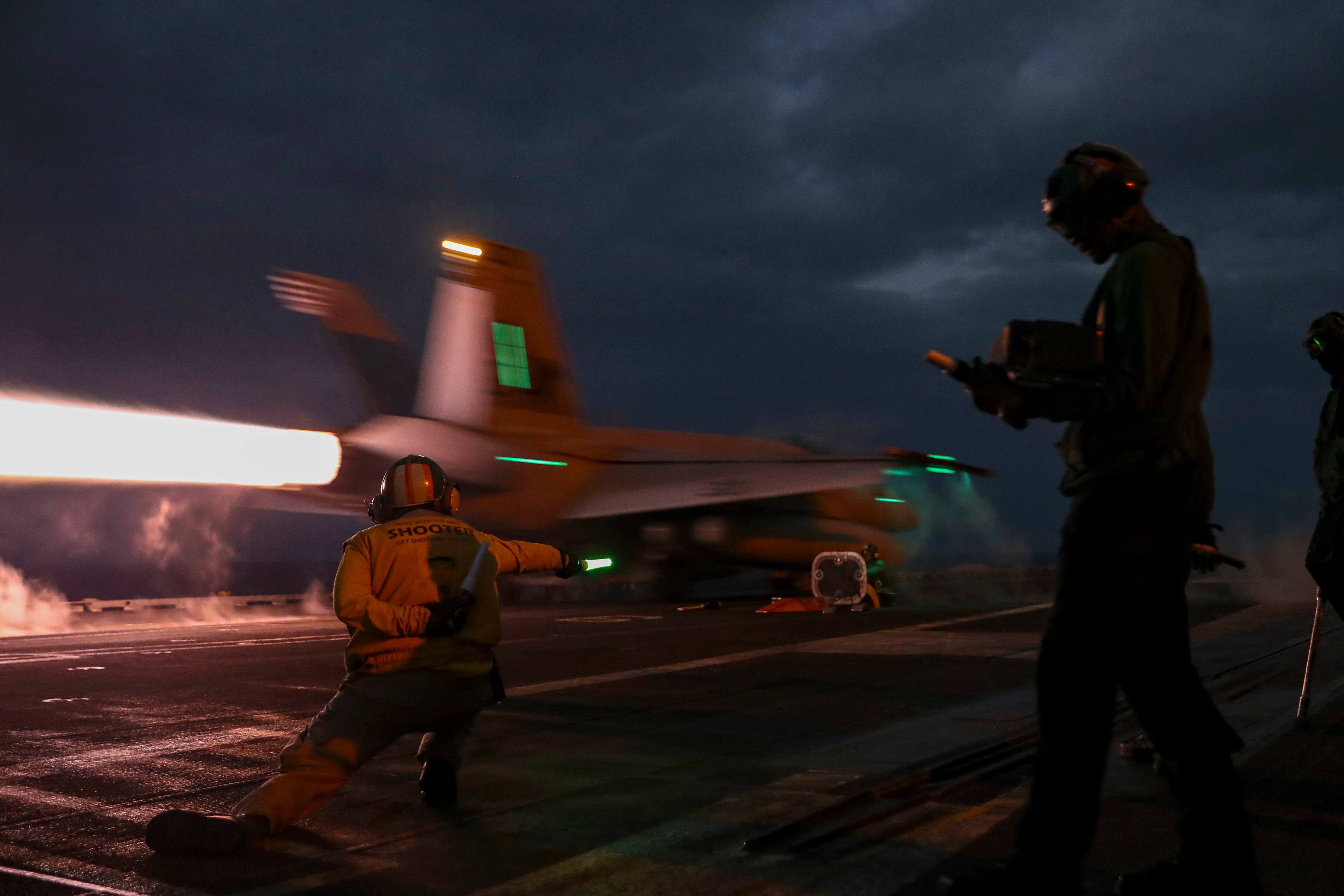 A soldier assigned to the 2nd Cavalry Regiment walks through smoke during a training exercise at Military Training Area Lest, Slovakia, March 8, 2022. The exercise, which includes participation from 13 NATO allied and partner nations, is designed to show NATO's collective capabilities to operate under austere conditions and demonstrate collective strength. (Staff Sgt. Jose H. Rodriguez/Army)An Air Force B-52H Stratofortress assigned to the 69th Bomb Squadron at RAF Fairford, England, flies over the Alpine Mountains, March 7, 2022. (Airman 1st Class Zachary Wright/Air Force)Soldiers stage their gear for departure prior to deployment from Fort Knox, Ky., to Germany, March 7, 2022. The troops are heading for Germany where they will support Army forces in Europe. (Renee Rhodes/Army)Air Force Staff Sgt. Zachary Smith refuels an HH-60G Pave Hawk assigned to the 56th Rescue Squadron in Romania, March, 8, 2022. (Senior Airman Noah Sudolcan/Air Force)Marines with 1st Battalion, 3rd Marines, 3rd Marine Division, conduct urban breaching training during a demolition range at Camp Hansen, Okinawa, Japan, March 10, 2022. (Sgt. Micha Pierce/Marine Corps)Navy Petty Officer 1st Class Genedonabelle Hernando operates a patrol boat during training in Long Beach, Calif., March 9, 2022. (Chief Petty Officer Nelson Doromal Jr./Navy)Soldiers with 1st Battalion, 503rd Infantry Regiment, 173rd Airborne Brigade, conduct a live fire training event during an exercise in Kenya, March 9, 2022. (Sgt. N.W. Huertas/Army)Marine Corps drill masters inspect a platoon during a close order drill practice at Marine Corps Recruit Depot, San Diego, March 1, 2022. (Cpl. Grace J. Kindred/Marine Corps)Lt. Isay Rapoport directs an F/A-18E Super Hornet, assigned to the "Tophatters" of Strike Fighter Squadron (VFA) 14, on the flight deck of the Nimitz-class aircraft carrier Abraham Lincoln in the Philippine Sea, March 13, 2022. (MCS3 Javier Reyes/Navy)An Air Force F-22 Raptor pilot assigned to the 380th Air Expeditionary Wing, flies over Southwest Asia, March 9, 2022. (Staff Sgt. Stefan Alvarez/Air Force)